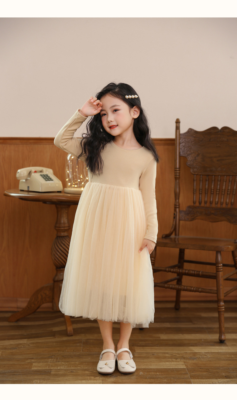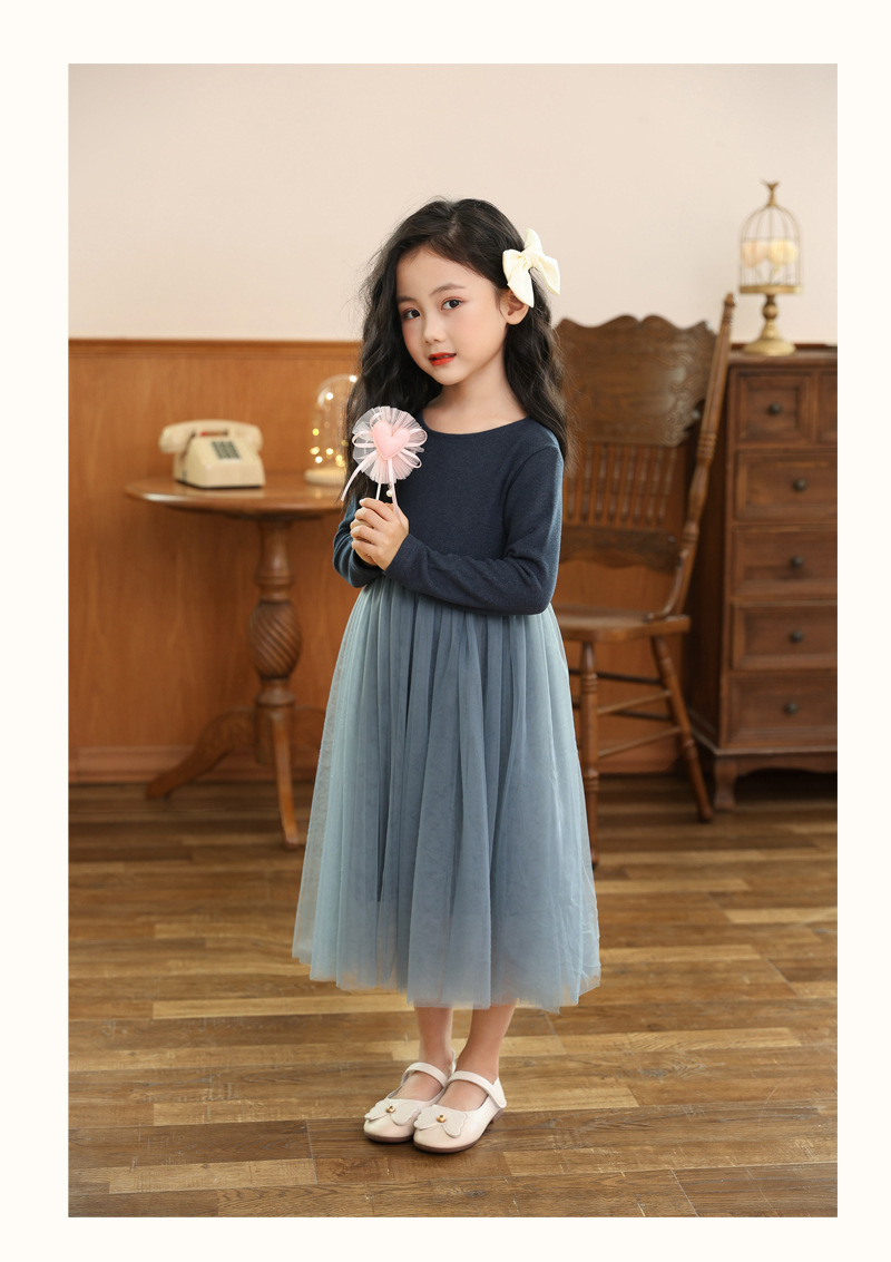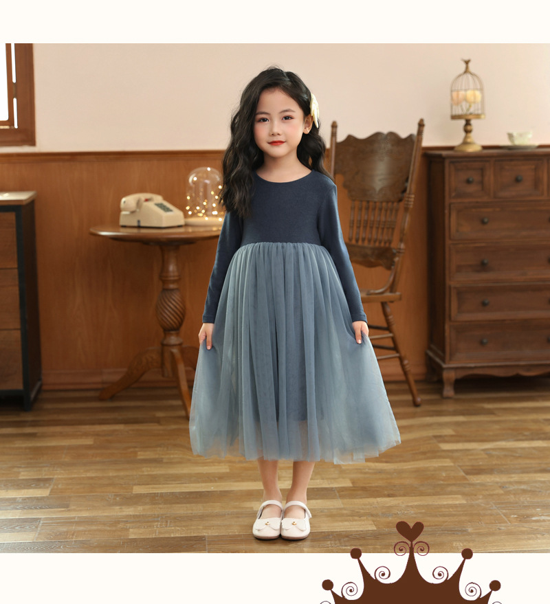여자 가을과 겨울 원피스 2023 한국 스타일 새로운 어린이 서양 스타일 공주 원피스 중간과 큰 어린이의 우아한 메쉬 원피스스토어 가기