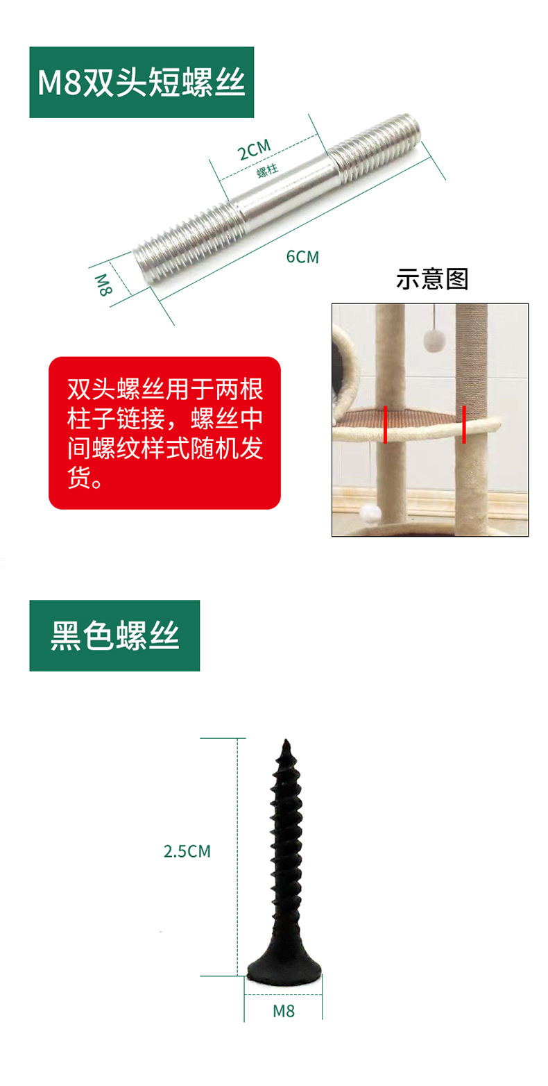 DIY 자체 제작 고양이 등반 프레임 하드웨어 액세서리 고양이 발톱 칼럼 나사 렌치 육각형 소켓 나사 연장 커넥터