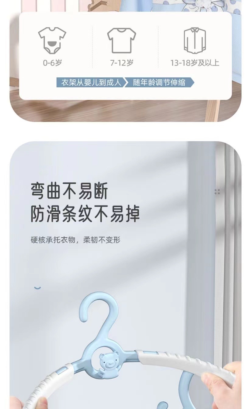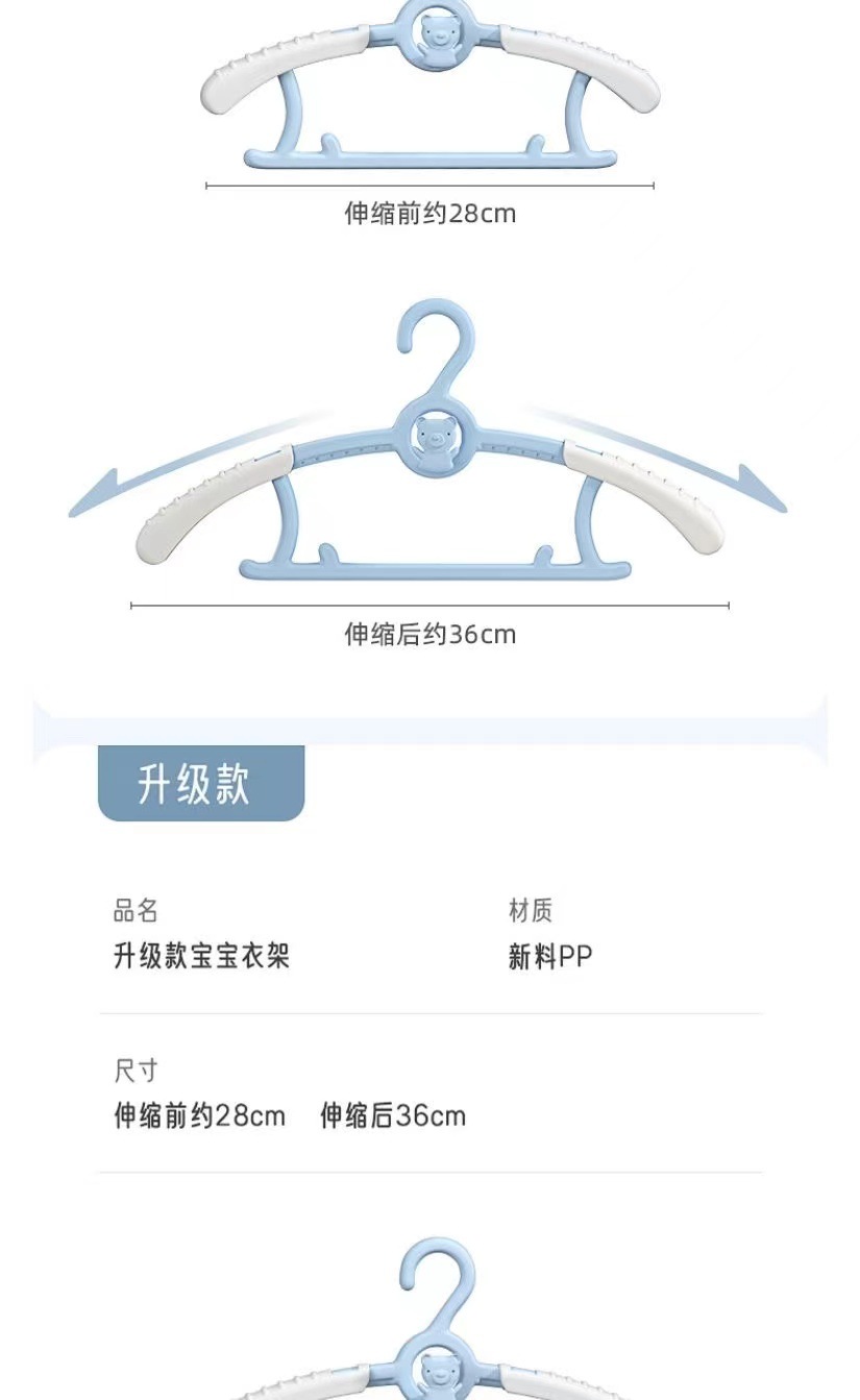 공장 도매 플라스틱 아동복 행거 텔레스코픽 옷 걸이 신생아 미끄럼 방지 옷 걸이 가정용 옷 걸이 유물스토어 가기