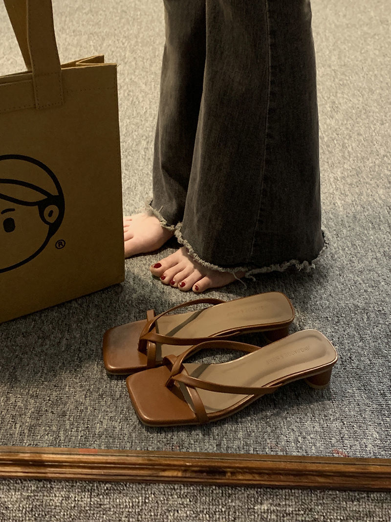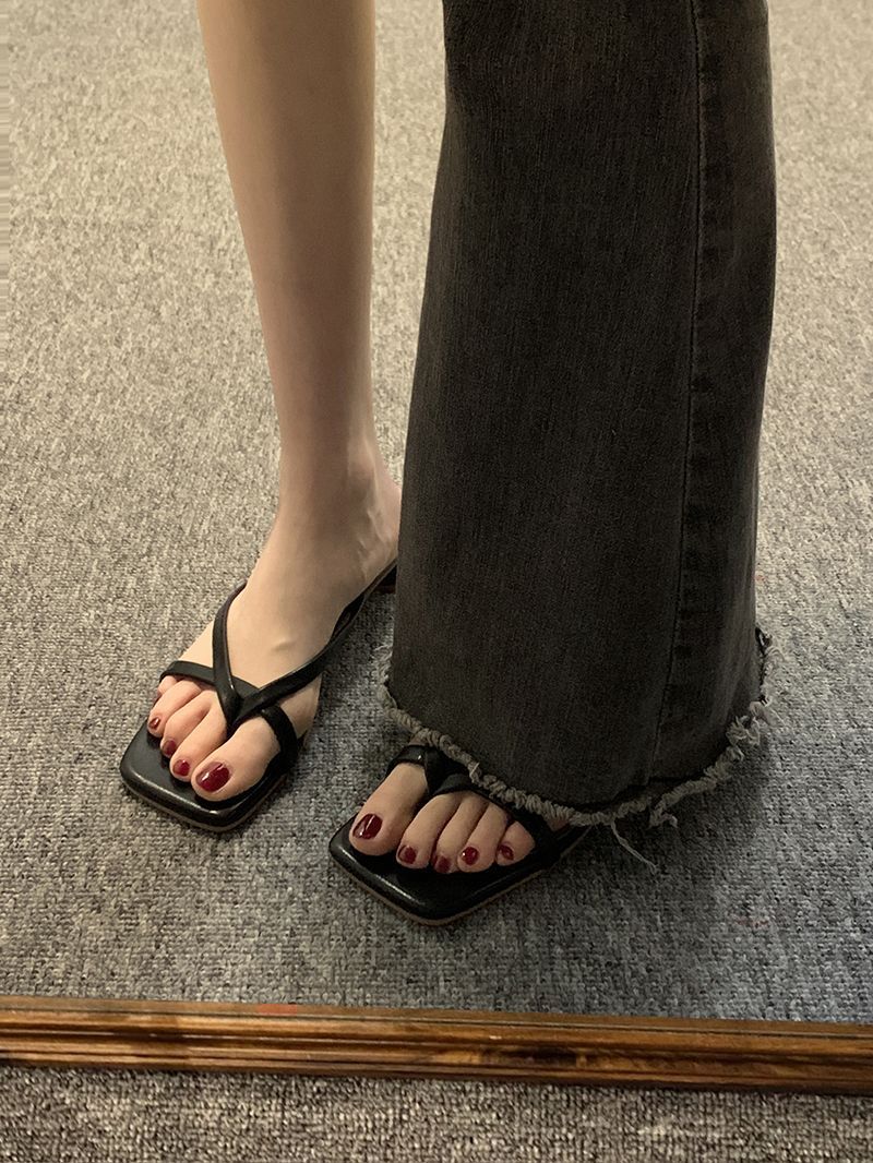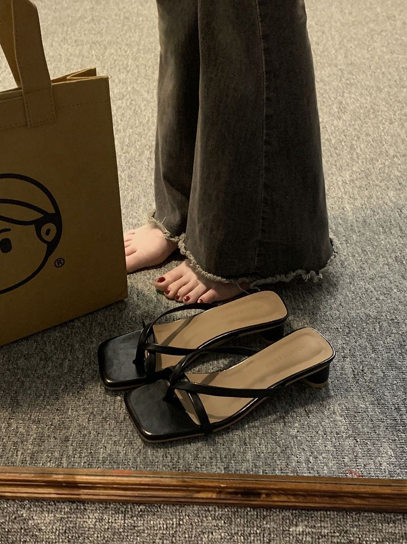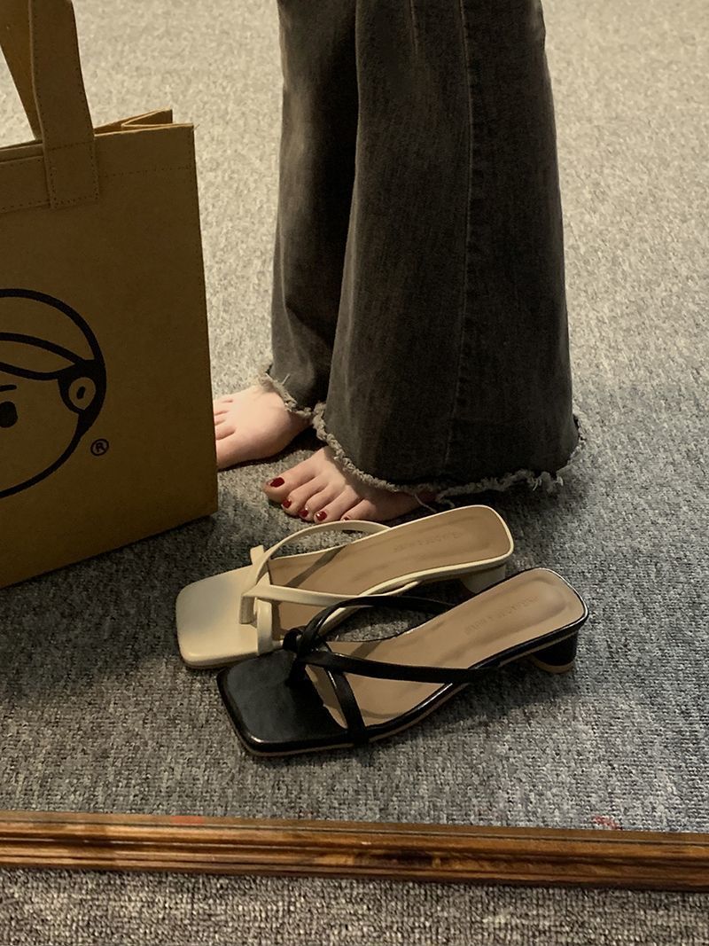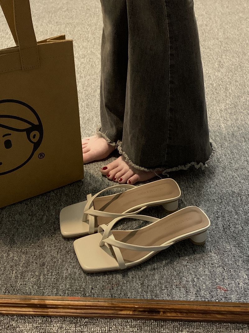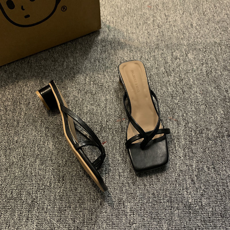 인터넷 연예인 슬리퍼 여성용 겉옷 2023 봄 새로운 유행 모든 경기 작은 두꺼운 굽 복고풍 플립 플롭