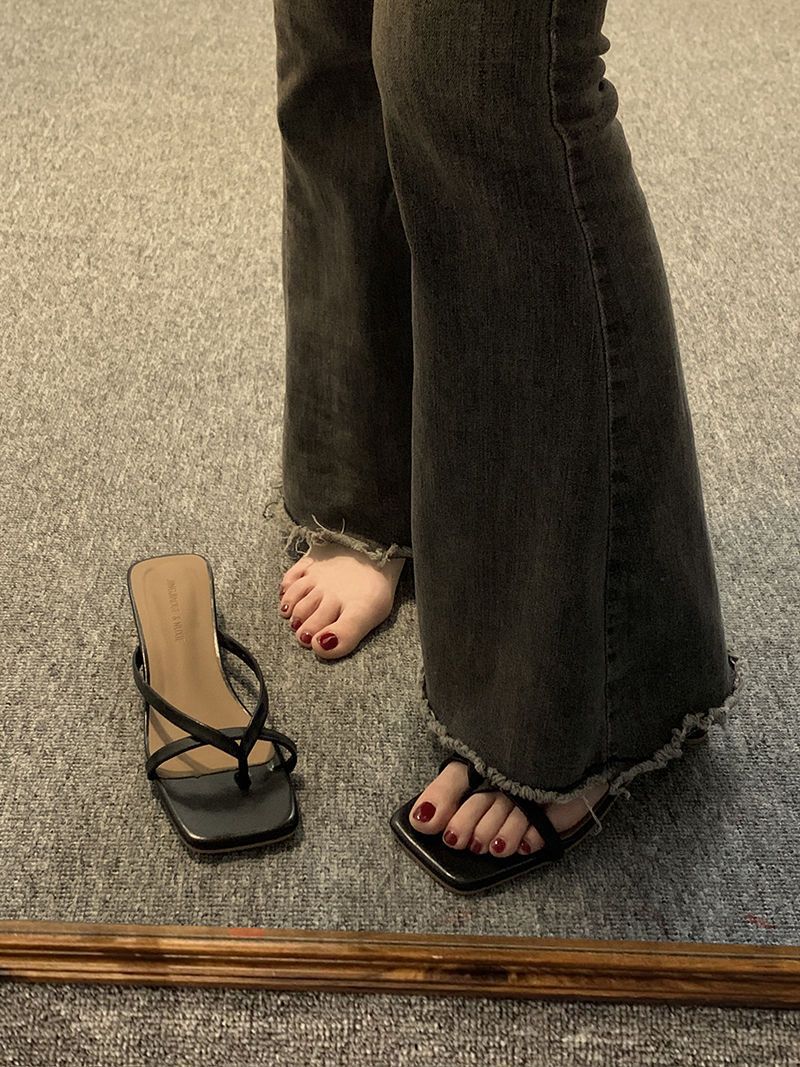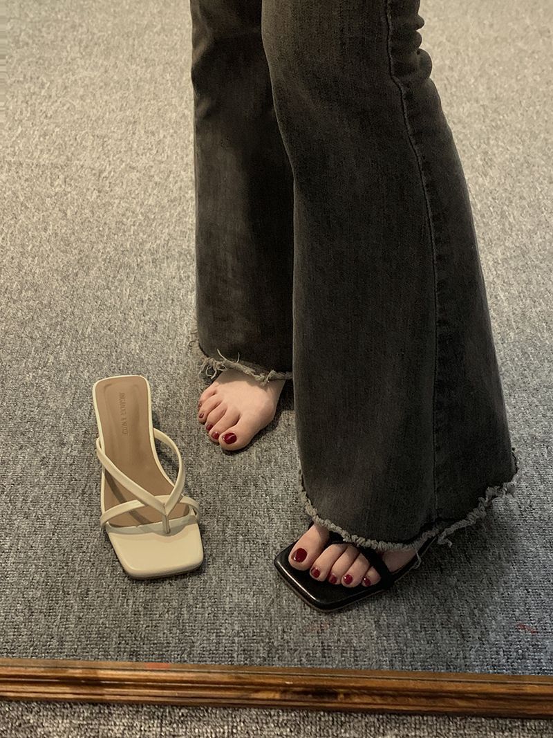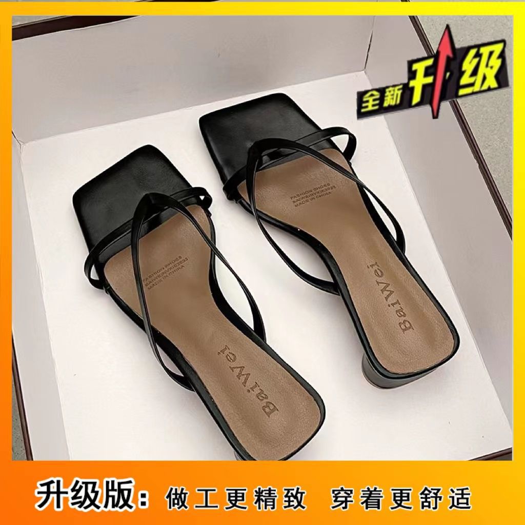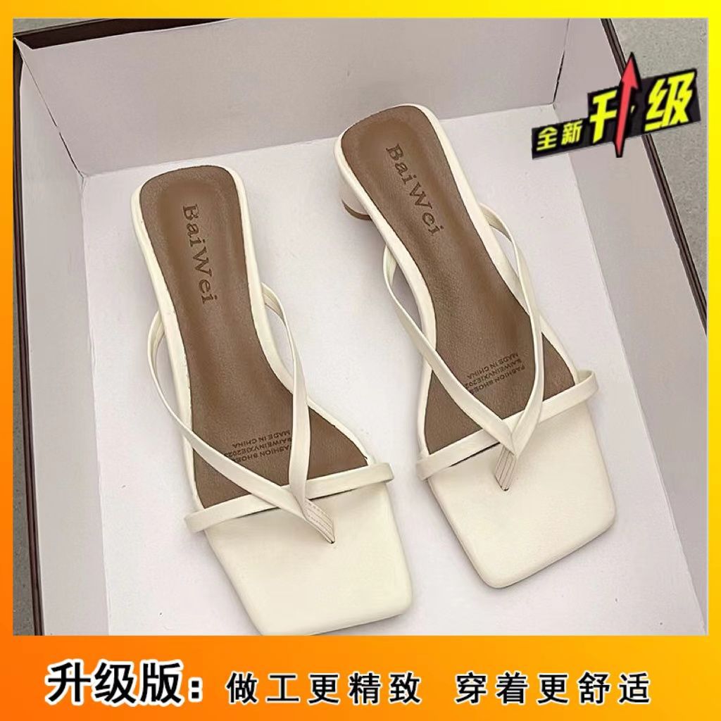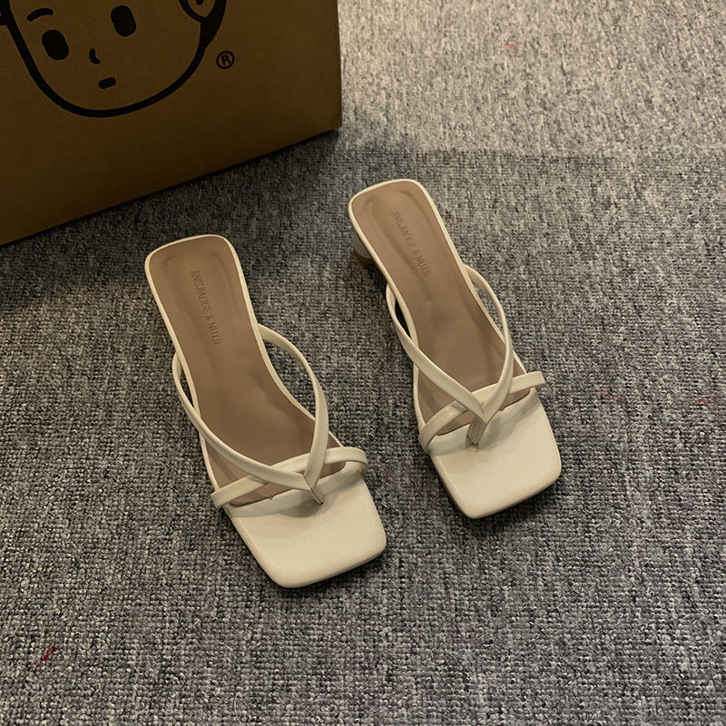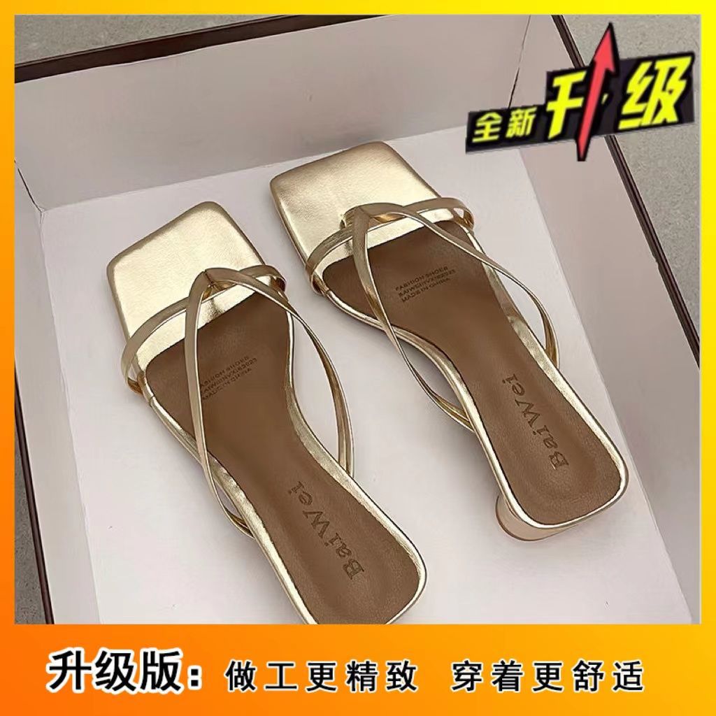 인터넷 연예인 슬리퍼 여성용 겉옷 2023 봄 새로운 유행 모든 경기 작은 두꺼운 굽 복고풍 플립 플롭