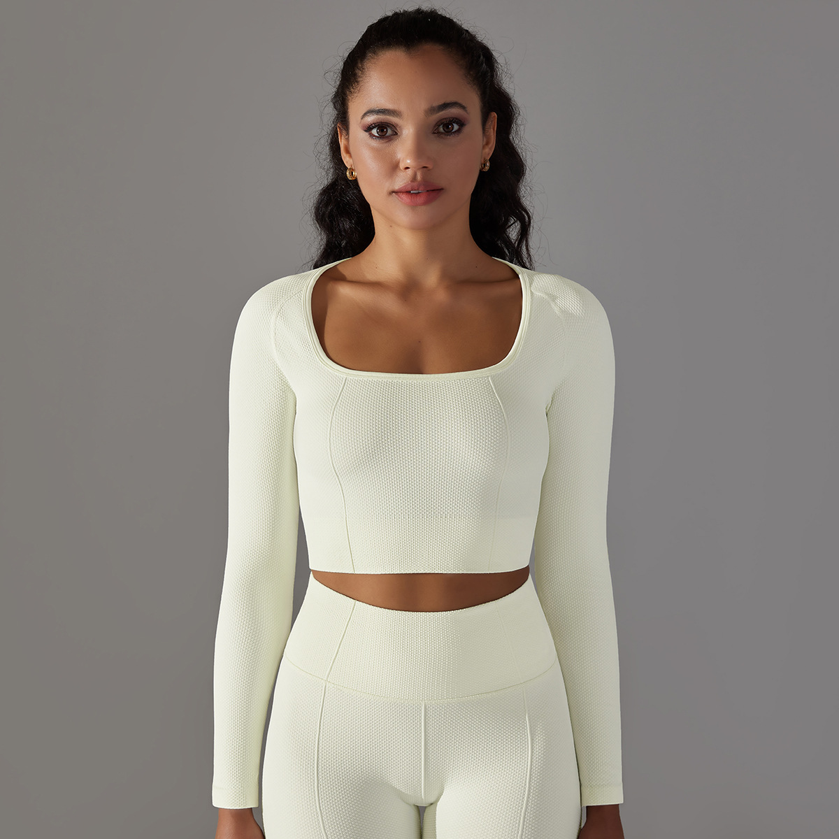유럽과 미국의 원활한 니트 골프 점 자카드 높은 허리 엉덩이 타이트 요가 바지 달리기 피트니스 세트