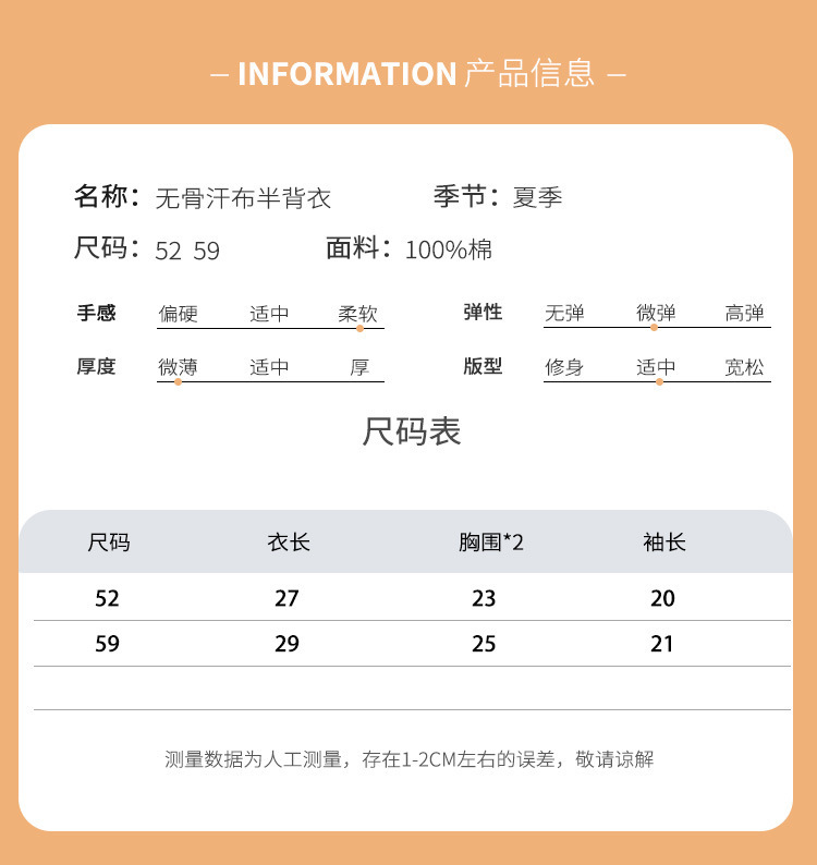 Y2302 유아 및 어린 이용 뼈없는 하프 백 의류 유아 용 여름 얇은 순면 탑 신생아 스님 옷스토어 가기