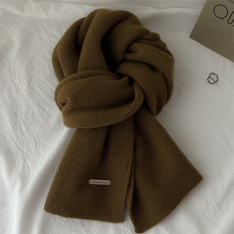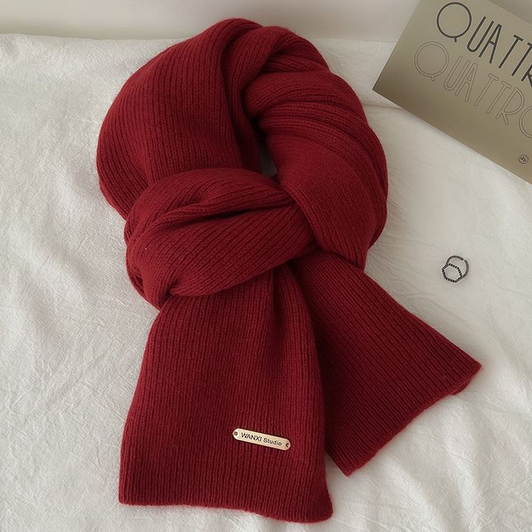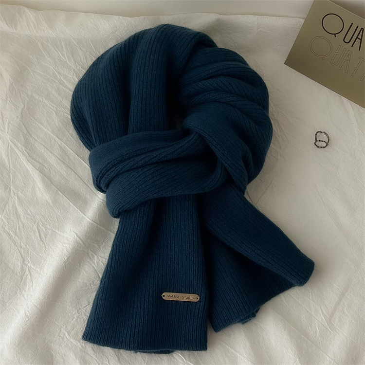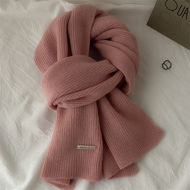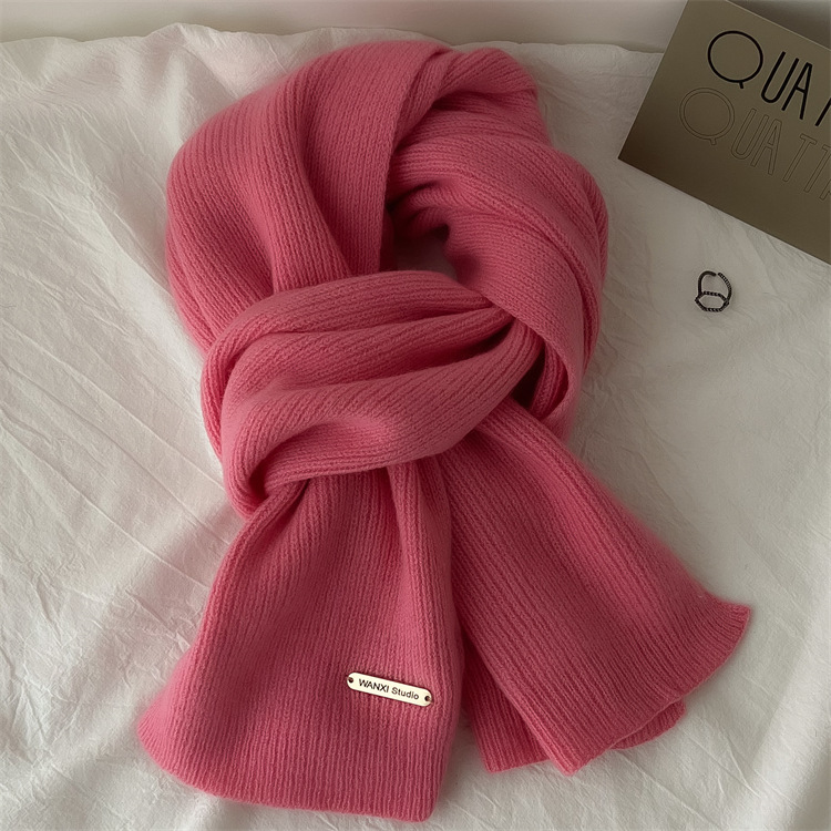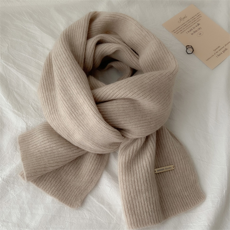 100 호주 양모 니트 캐시미어 스카프 여성의 2023 년 새로운 올 매치 솔리드 컬러 스카프 소년을위한 겨울 선물