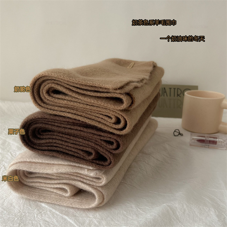 100 호주 양모 니트 캐시미어 스카프 여성의 2023 년 새로운 올 매치 솔리드 컬러 스카프 소년을위한 겨울 선물스토어 가기