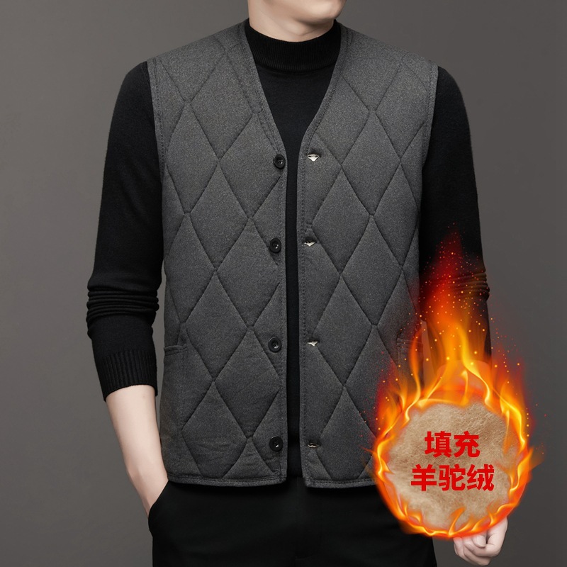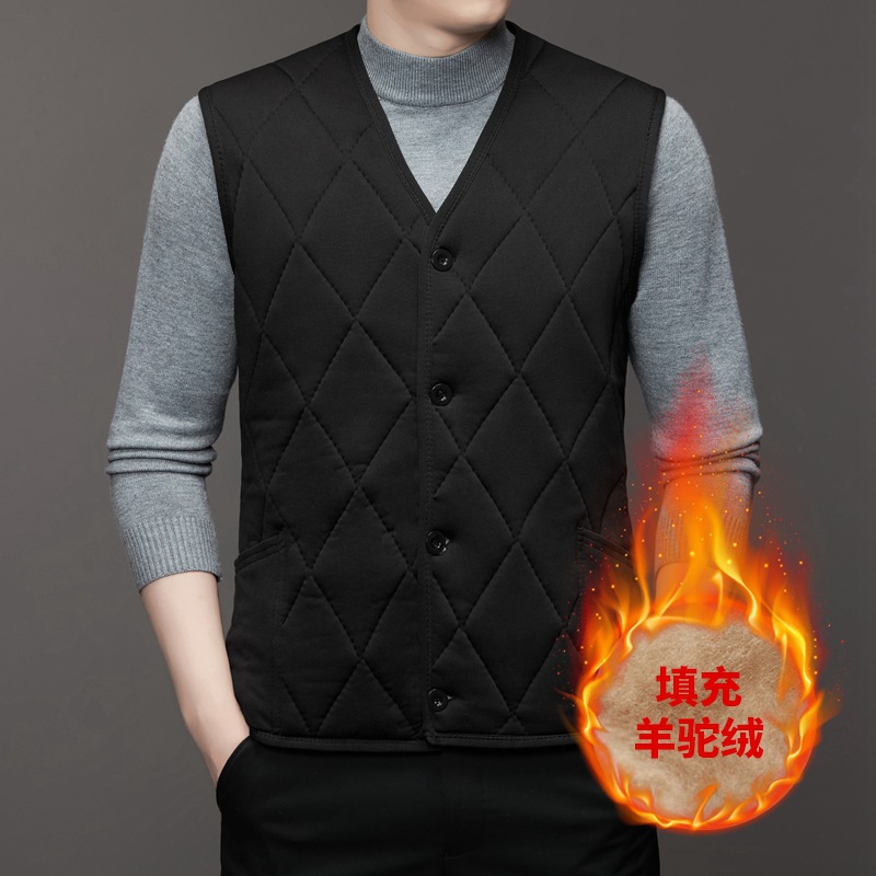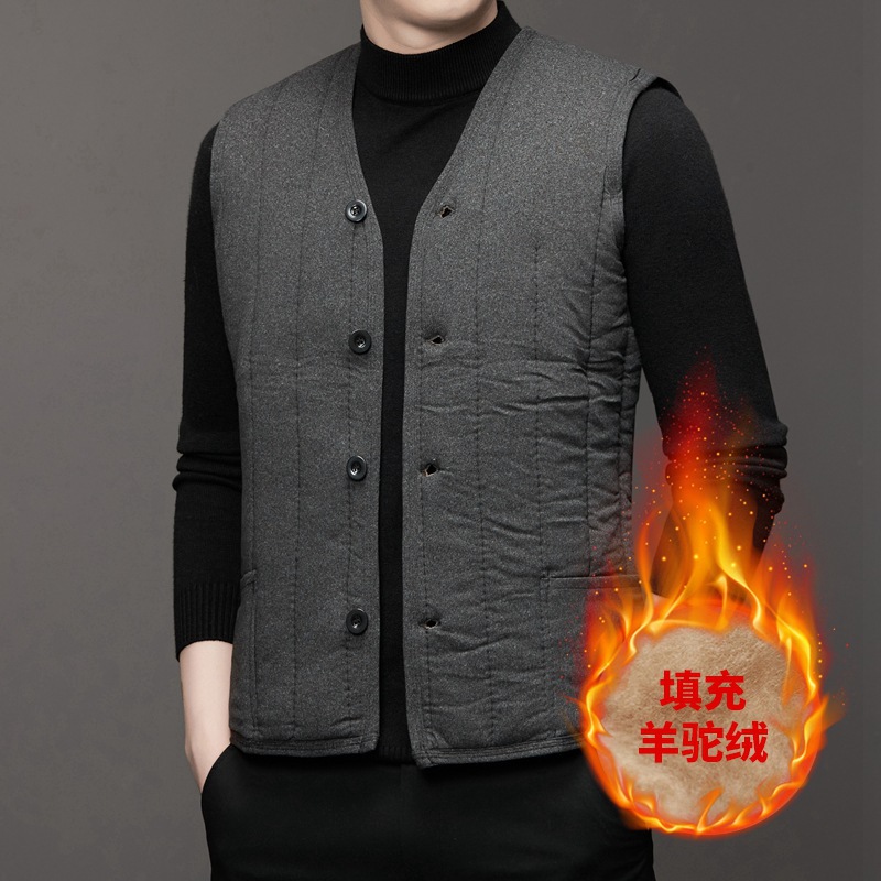 Manzbo 가을 겨울 새로운 중년 및 노인 면화 조끼 두꺼운 남성 조끼 조끼 대형 방풍 및 따뜻한스토어 가기