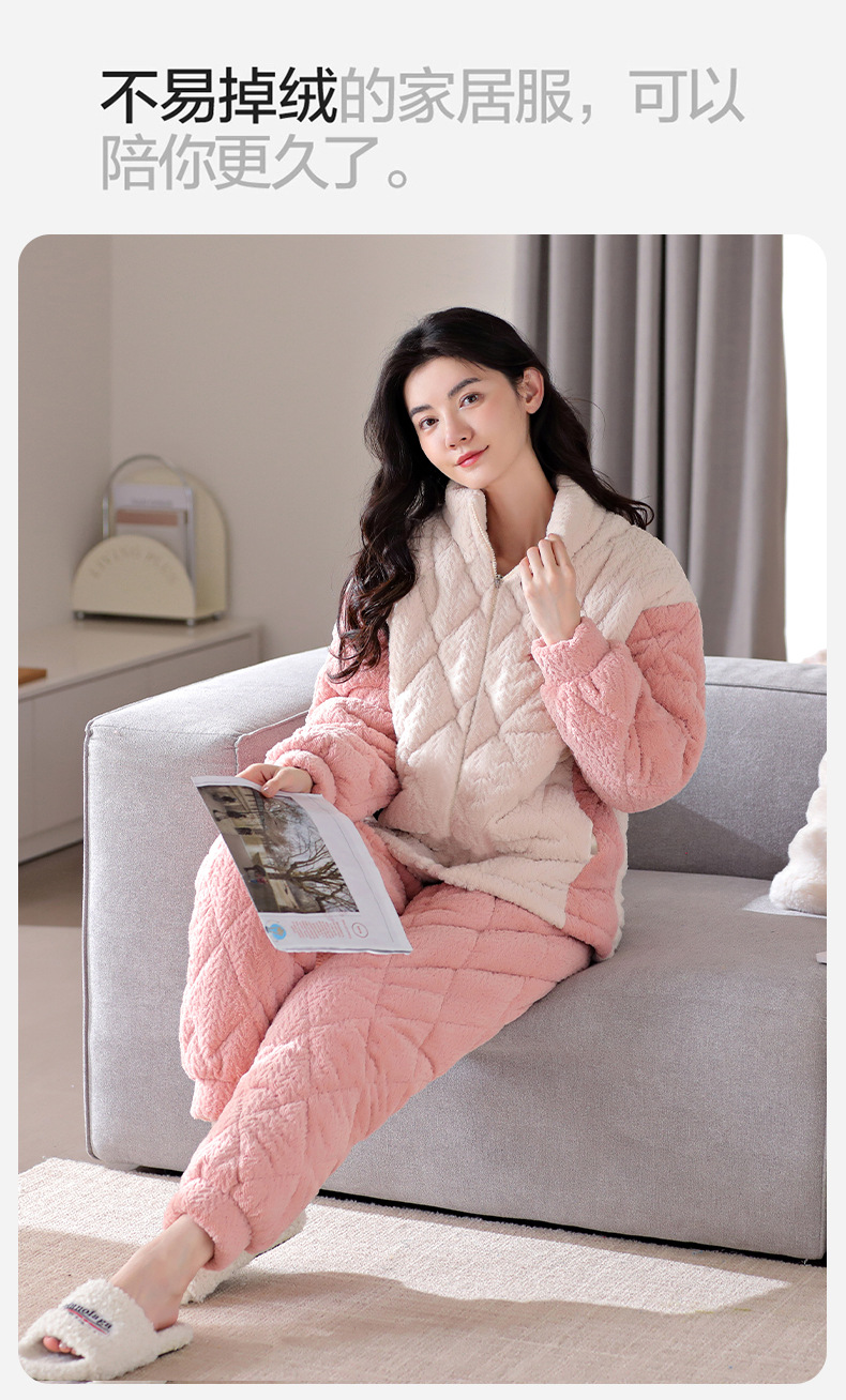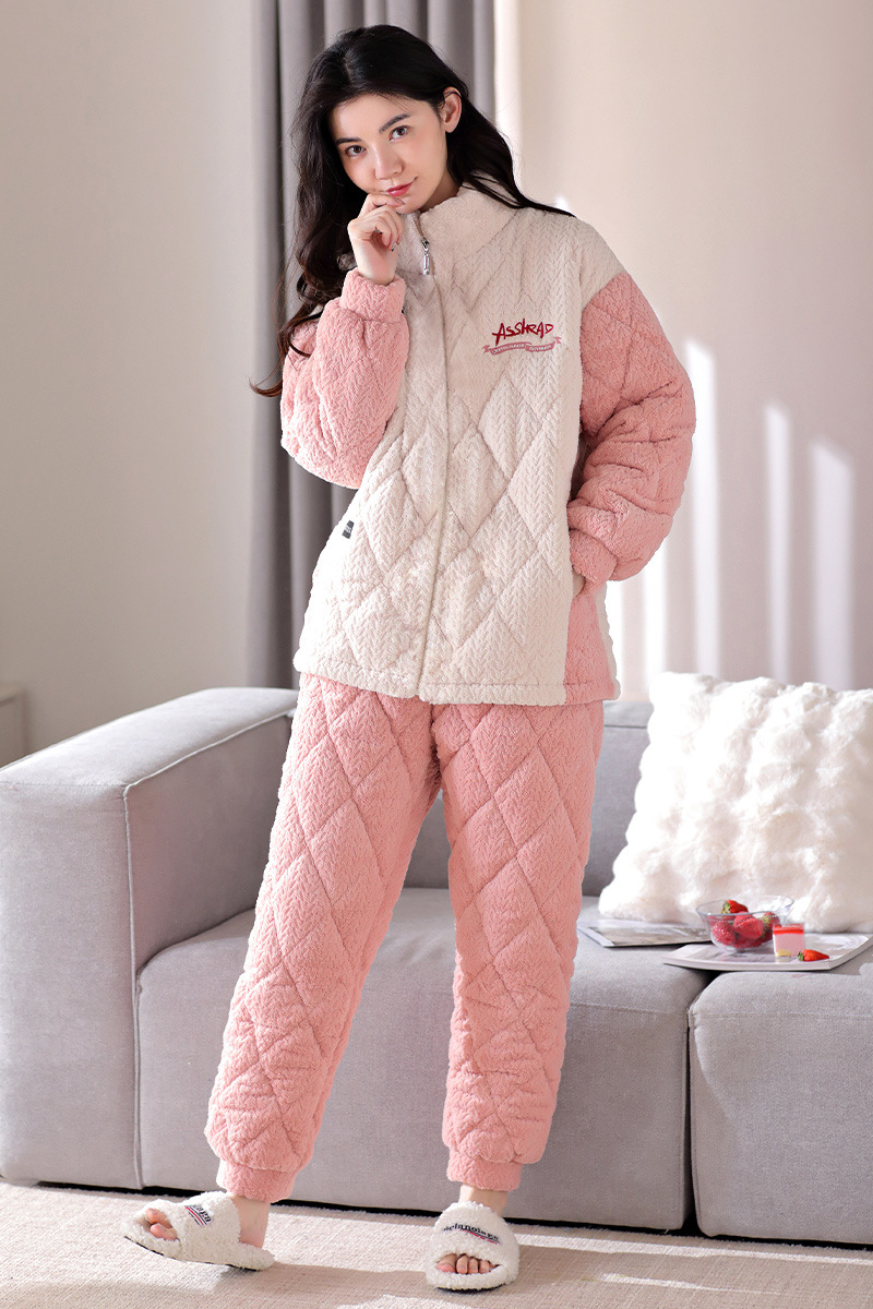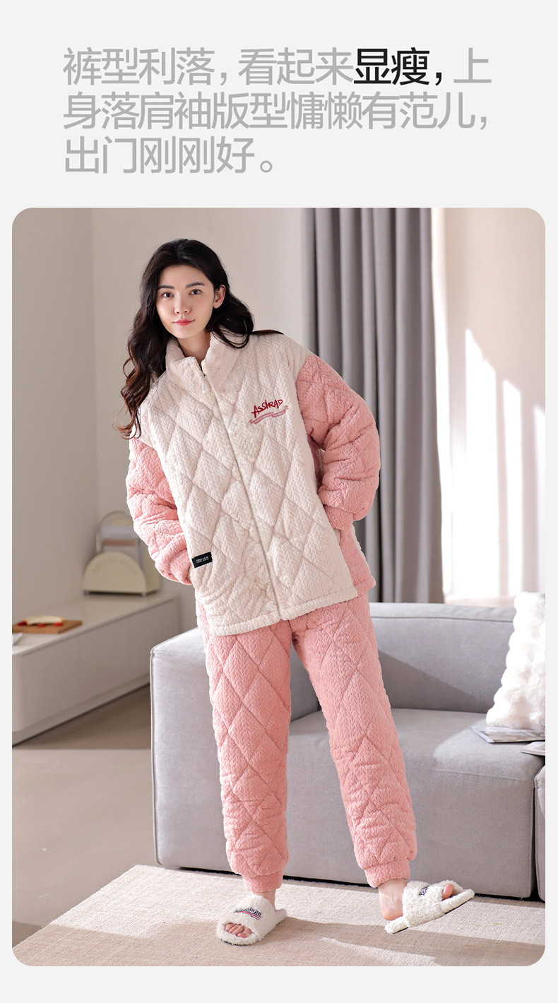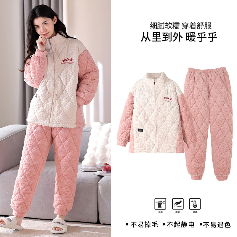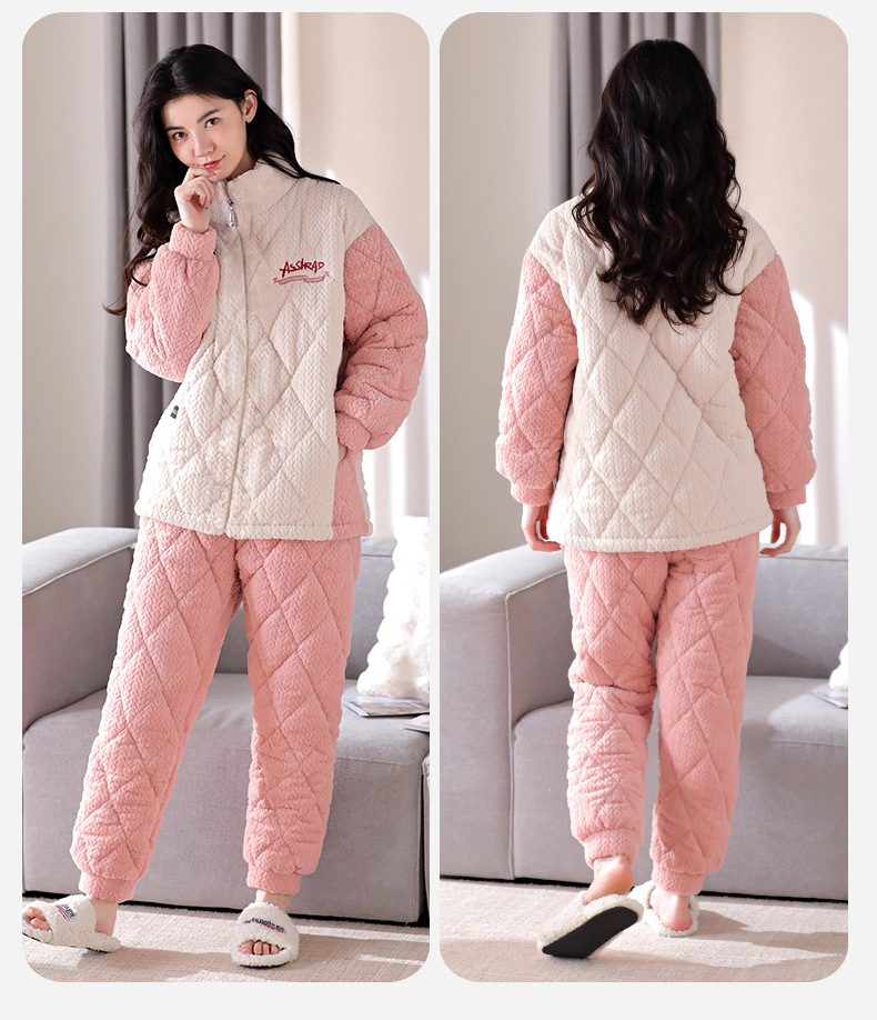 겨울 새로운 여성의 잠옷 가디건 3 층 퀼트 밀크 벨벳 따뜻한 두꺼운 겉옷 캐주얼 홈 세트