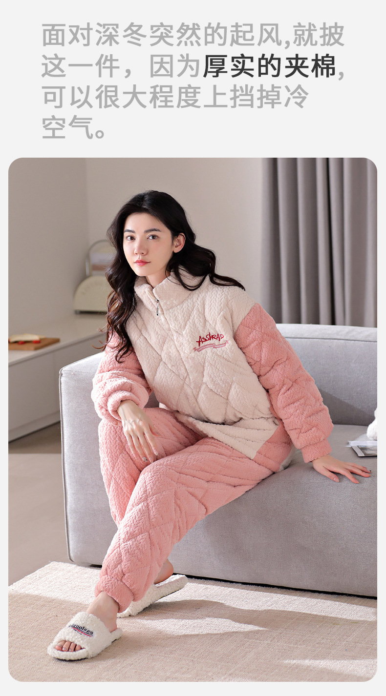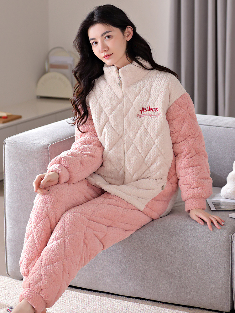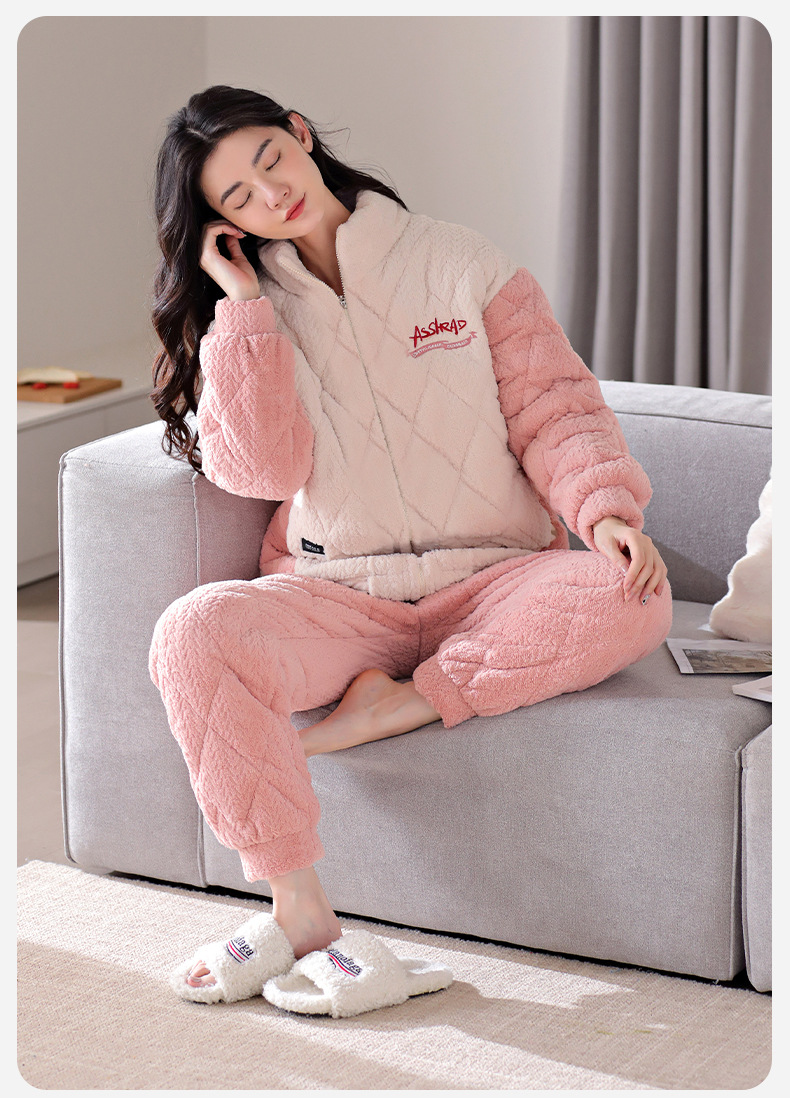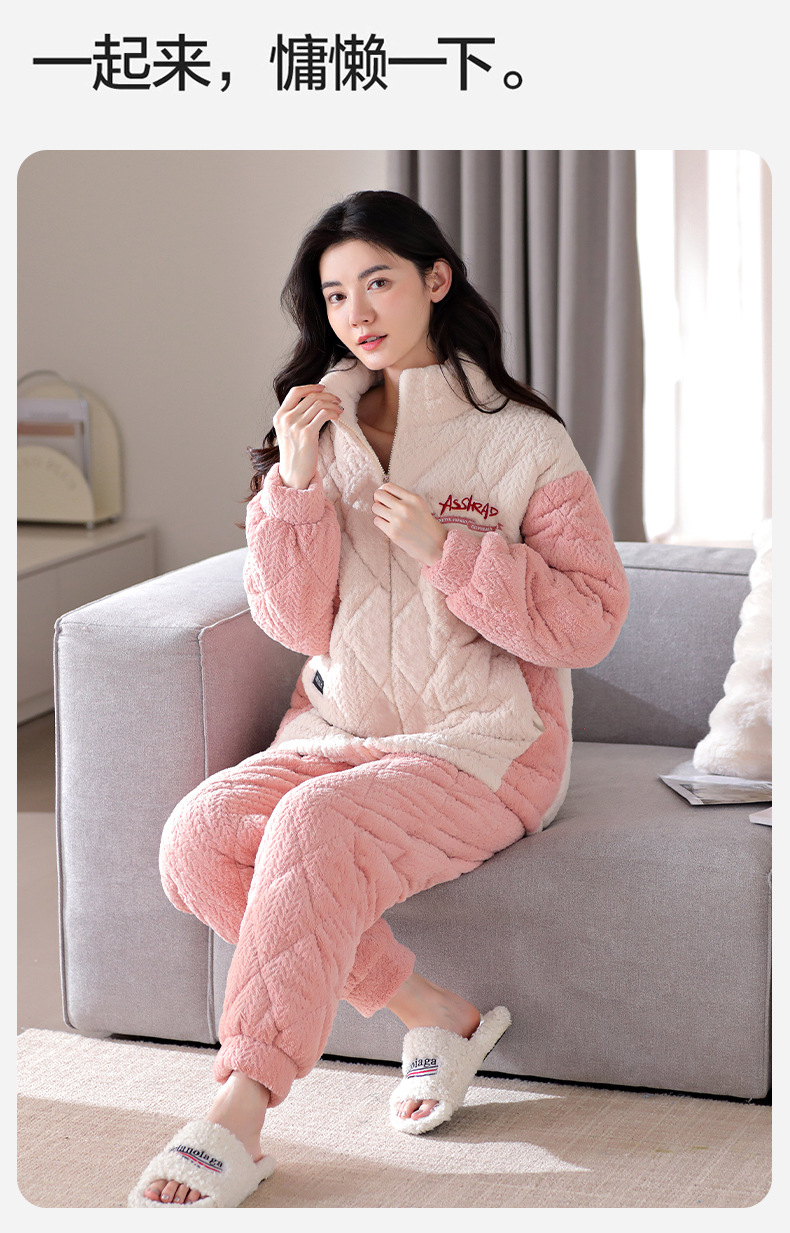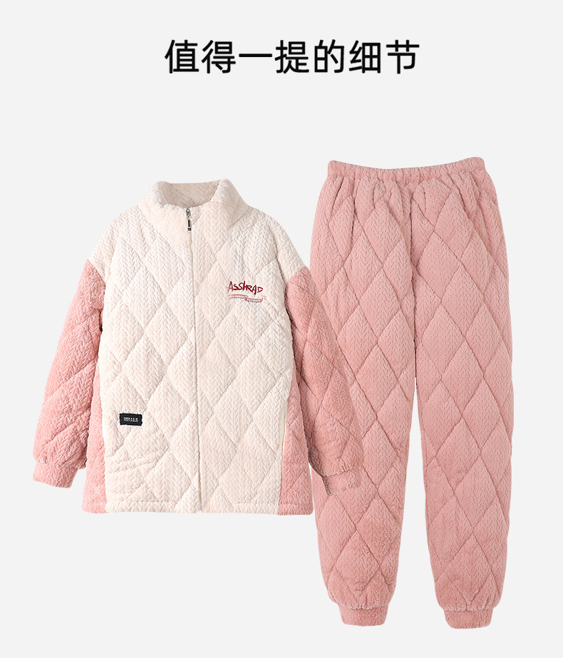 겨울 새로운 여성의 잠옷 가디건 3 층 퀼트 밀크 벨벳 따뜻한 두꺼운 겉옷 캐주얼 홈 세트