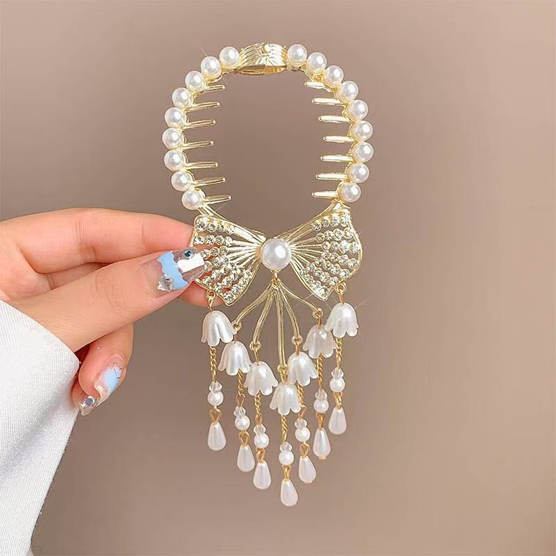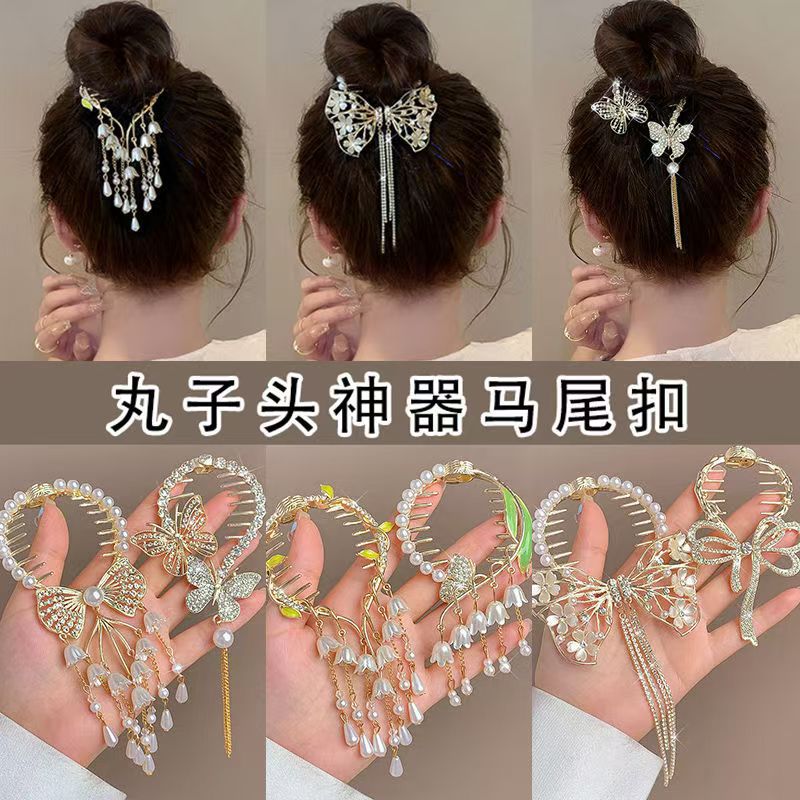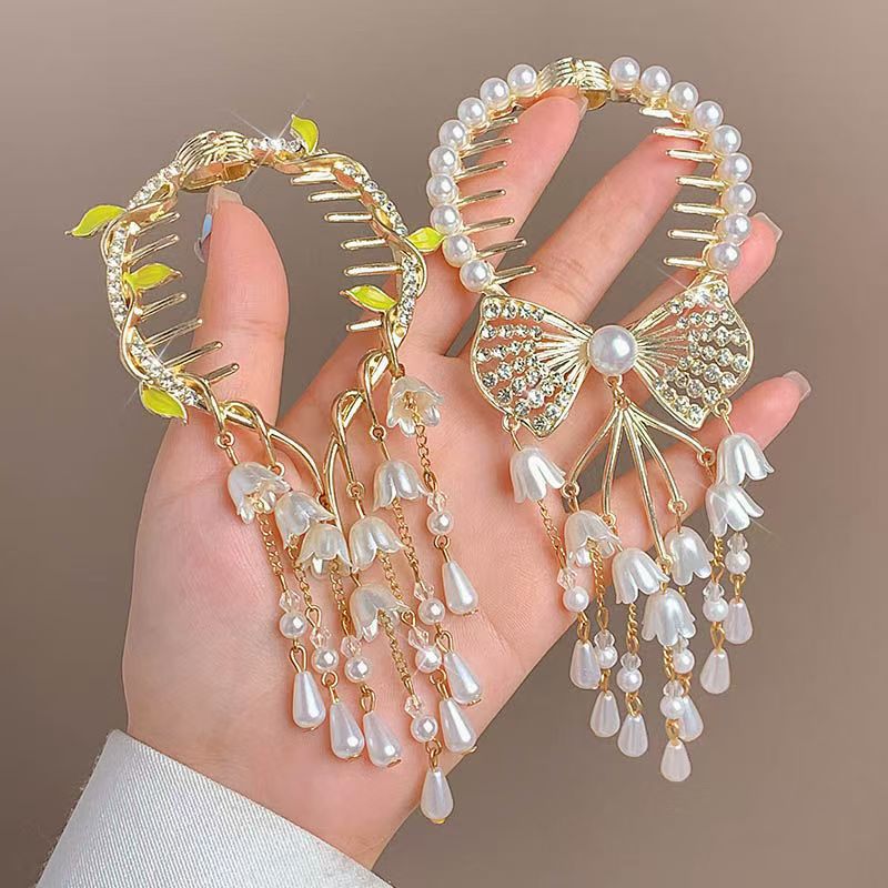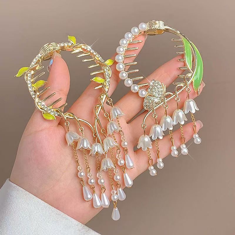 골동품 난초 술 헤어 클립 볼 헤어 액세서리 여성용 하이 엔드 센스 로즈 헤어 버클 우아한 반 묶인 헤어 그랩 클립