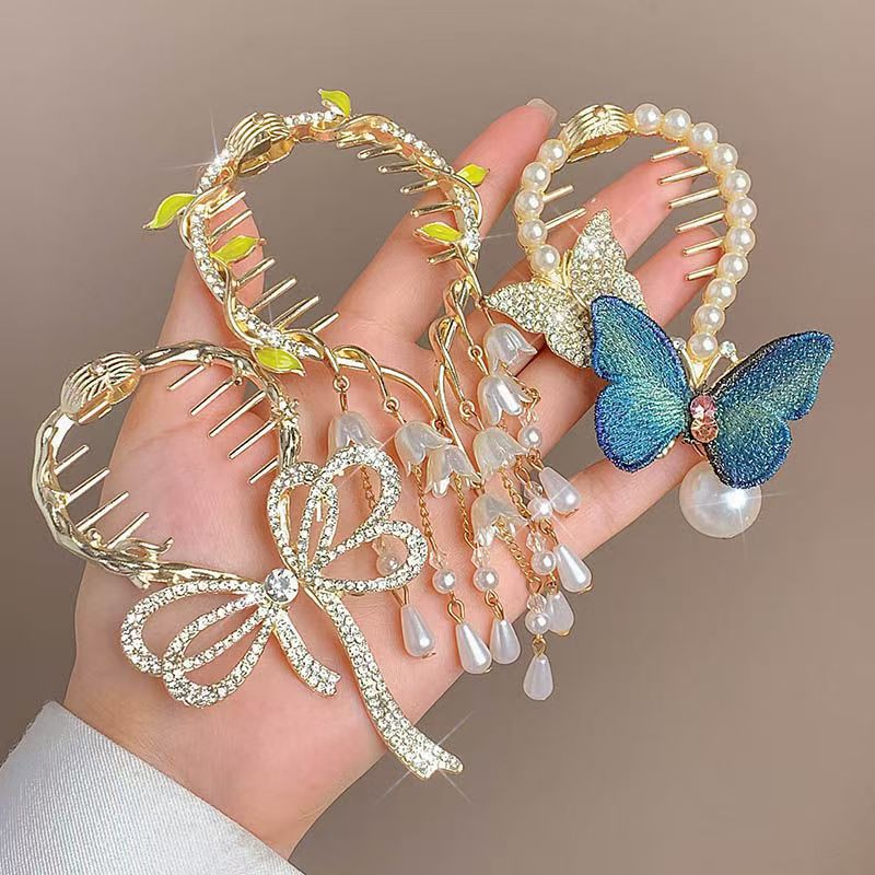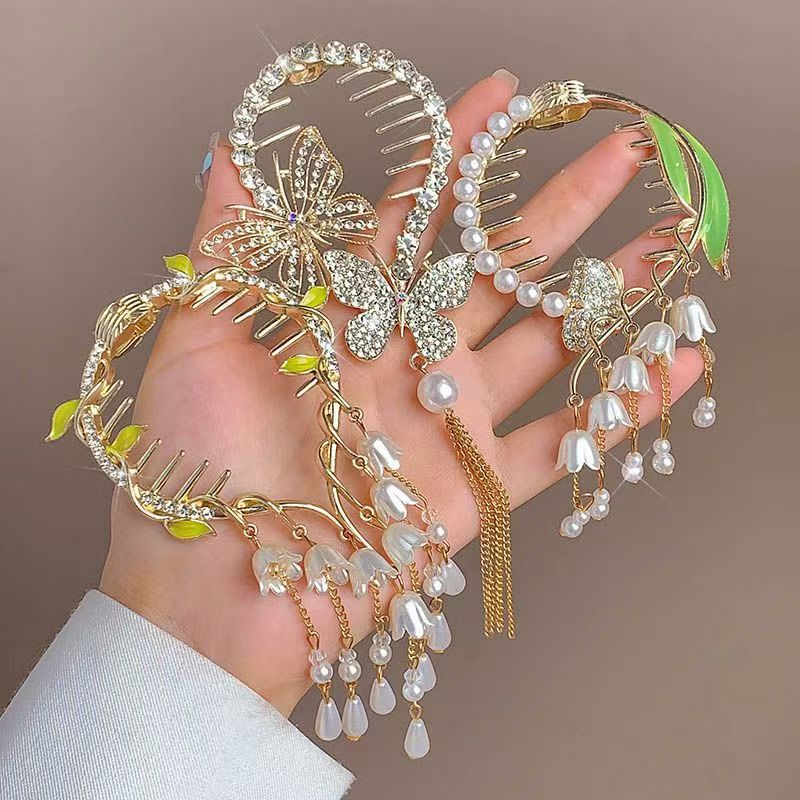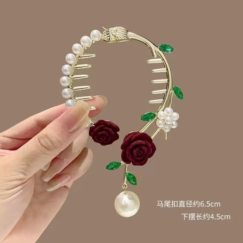골동품 난초 술 헤어 클립 볼 헤어 액세서리 여성용 하이 엔드 센스 로즈 헤어 버클 우아한 반 묶인 헤어 그랩 클립스토어 가기