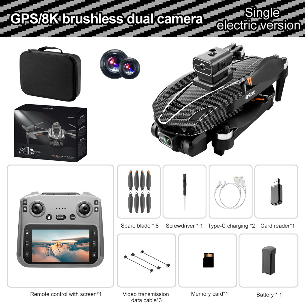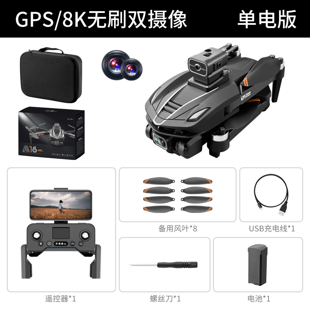 국경 간 신제품 A16 GPS 드론 반환 브러시리스 광학 흐름 항공 사진 쿼드콥터 원격 제어 항공기 V168