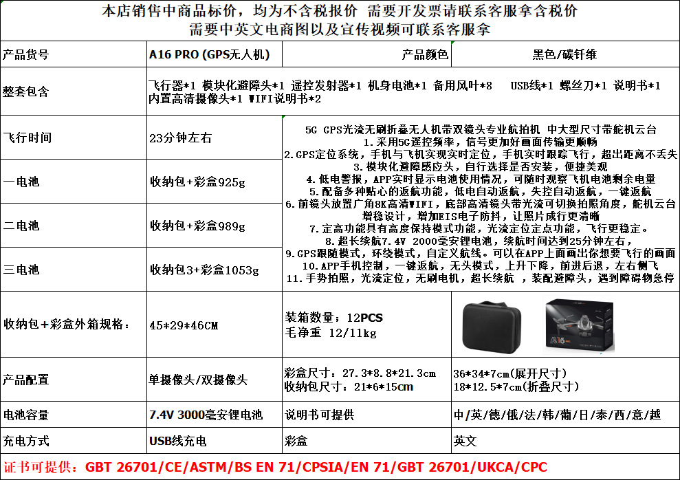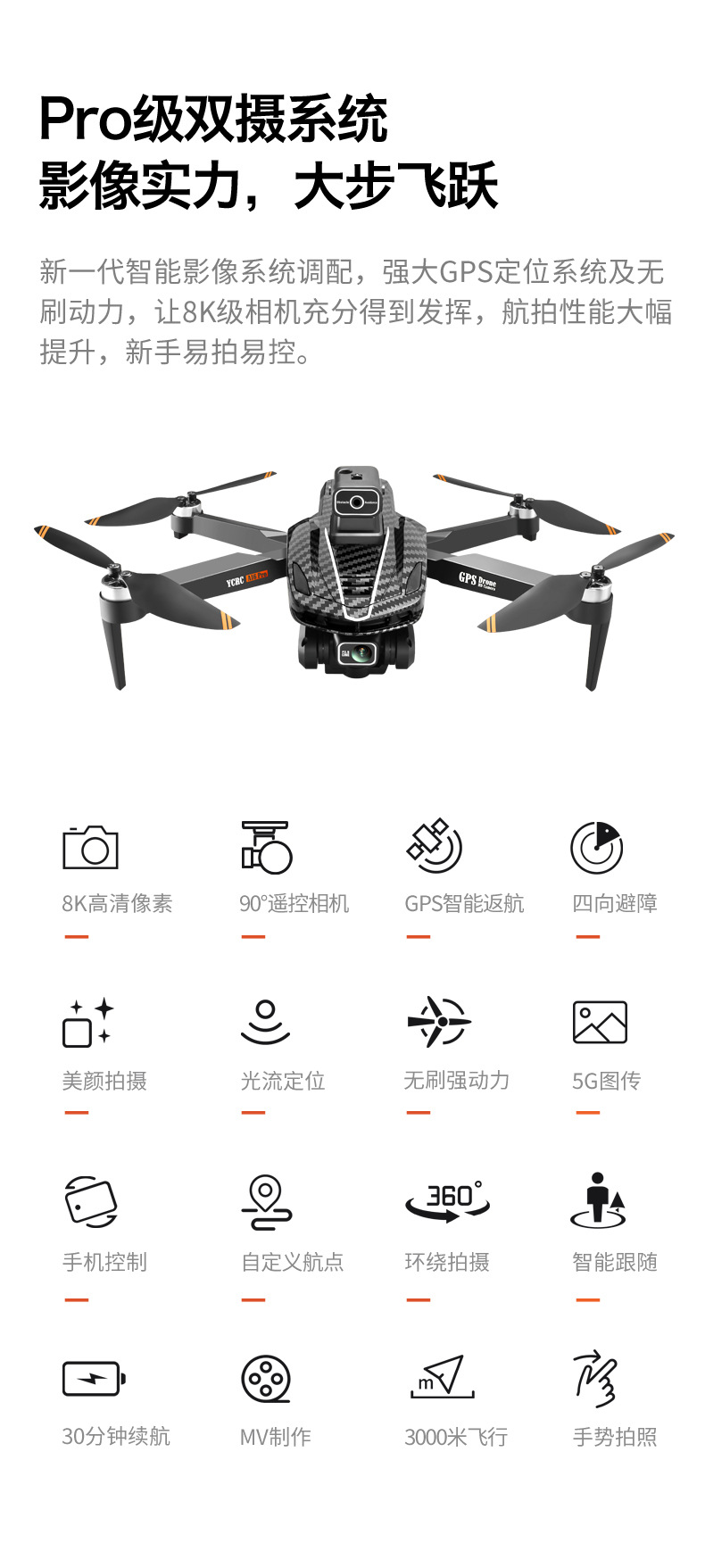 • 카본 브레이징 블랙 (GPS 포지셔닝 브러시리스 모터 광학 흐름 장애물 회피 전기 조정 더블 카메라)