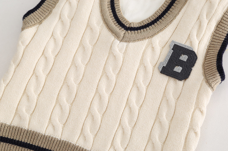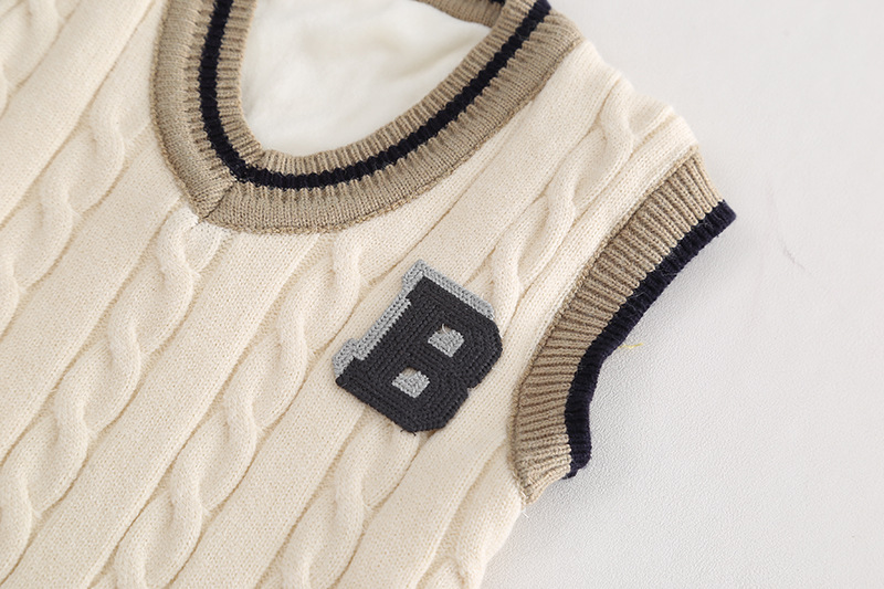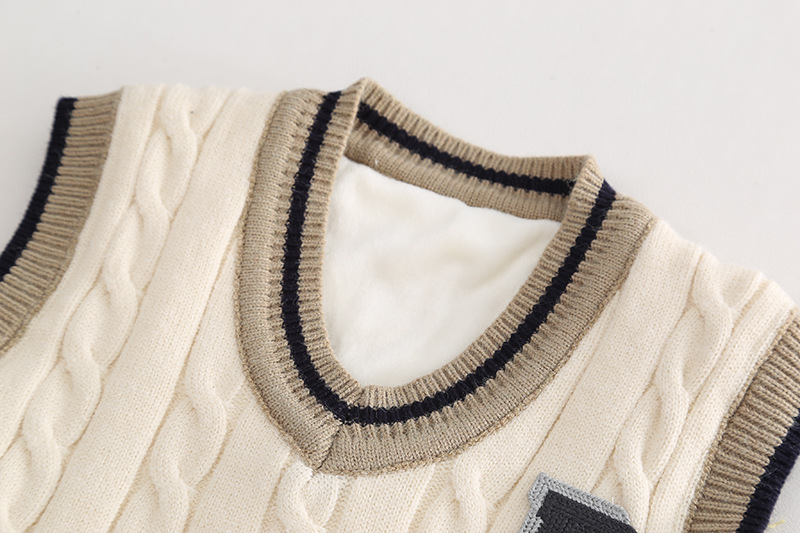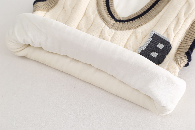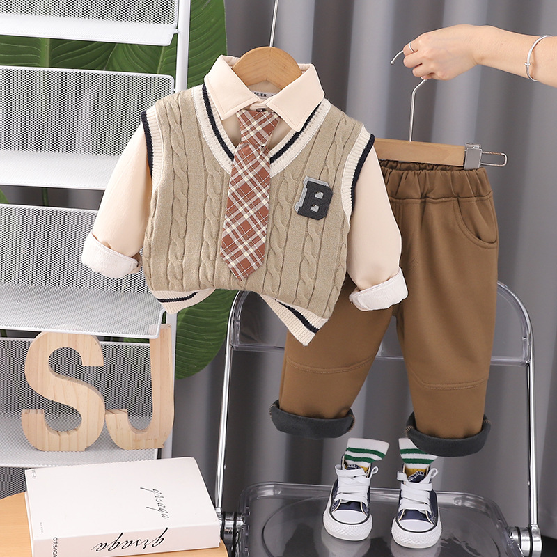 어린 소년의 대학 스타일 넥타이 겨울 2023 가을과 겨울 새로운 어린이 기모 스웨터 조끼 3 피스 어린이 세트스토어 가기