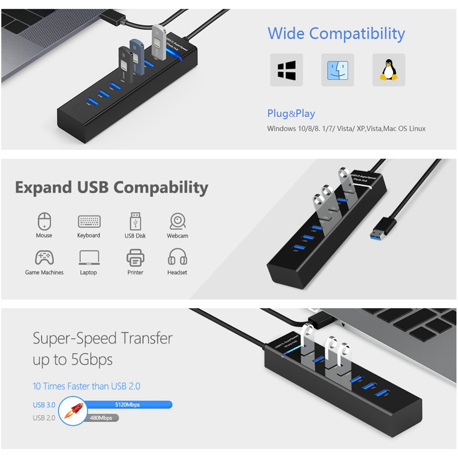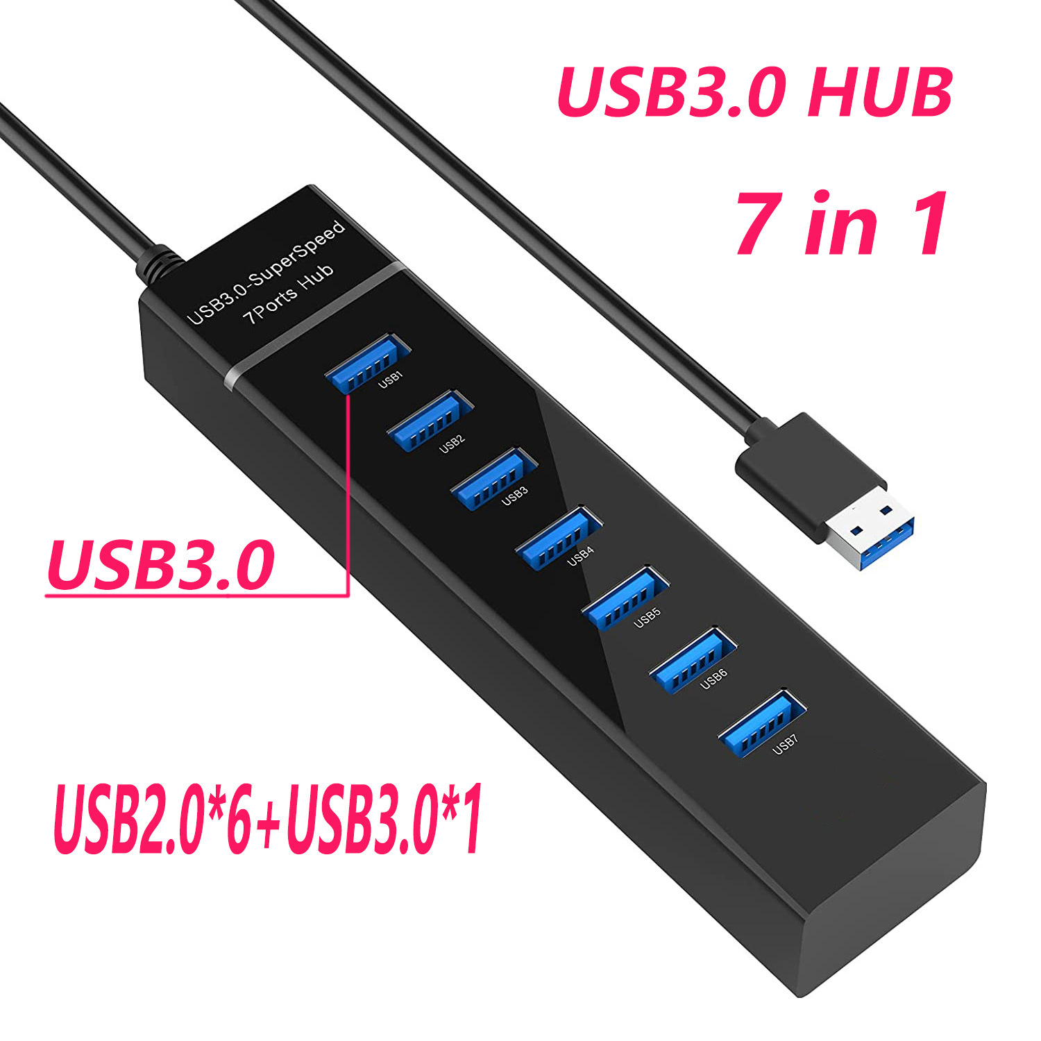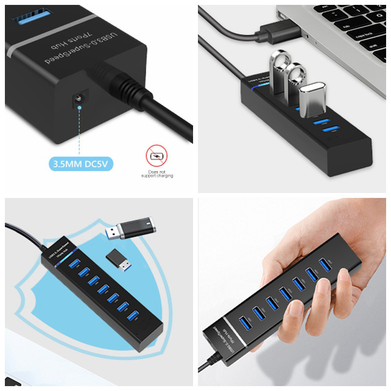 소스 제조 업체 7 라이트 바 USB 허브 스플리터 2.0USB 허브 3.0 USB 익스텐더를 드래그