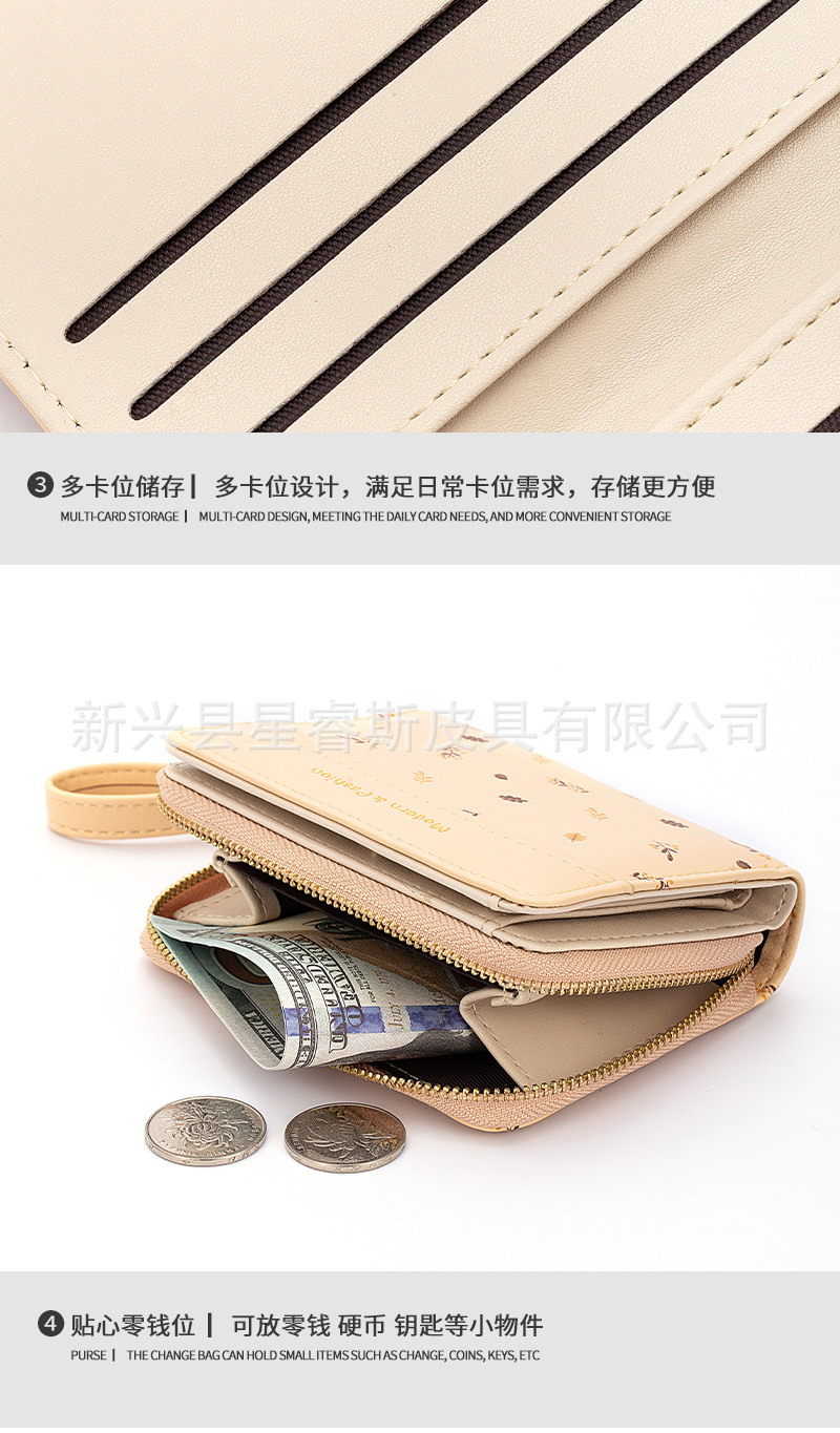 2024 크로스보더 신상 따뜻하고 예술적인 여성용 지갑, 짧은 스타일의 여성용 카드 홀더, 지퍼 동전 지갑, 학생용 지갑스토어 가기