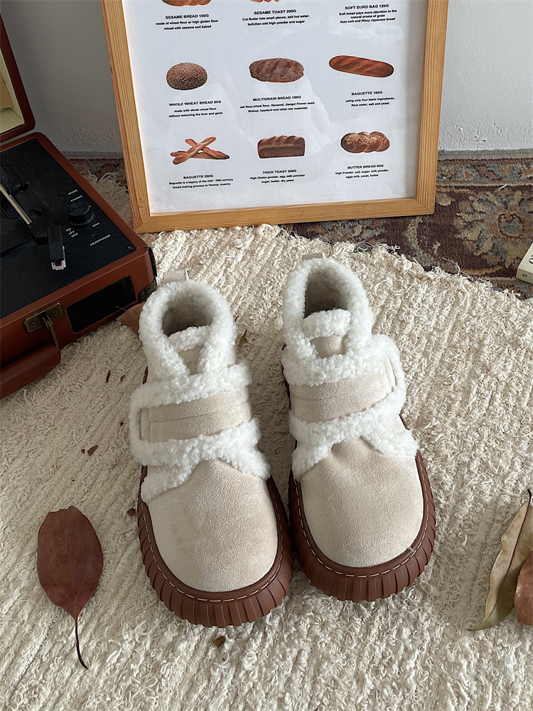 여자의 두꺼운 밑창 유행 모든 경기 캐주얼 동북 스노우 부츠 겨울 2023 기모 두꺼운 벨크로 푹신한 면 신발스토어 가기