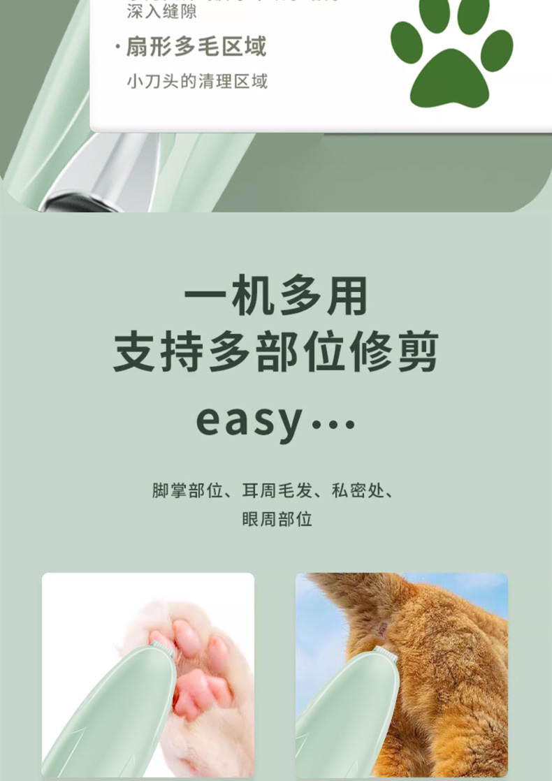 고양이와 강아지 발털 손질기, 플라스틱 애완동물 전기 이발기, 고양이 발바닥 털 제거 도구, 무소음 제모기