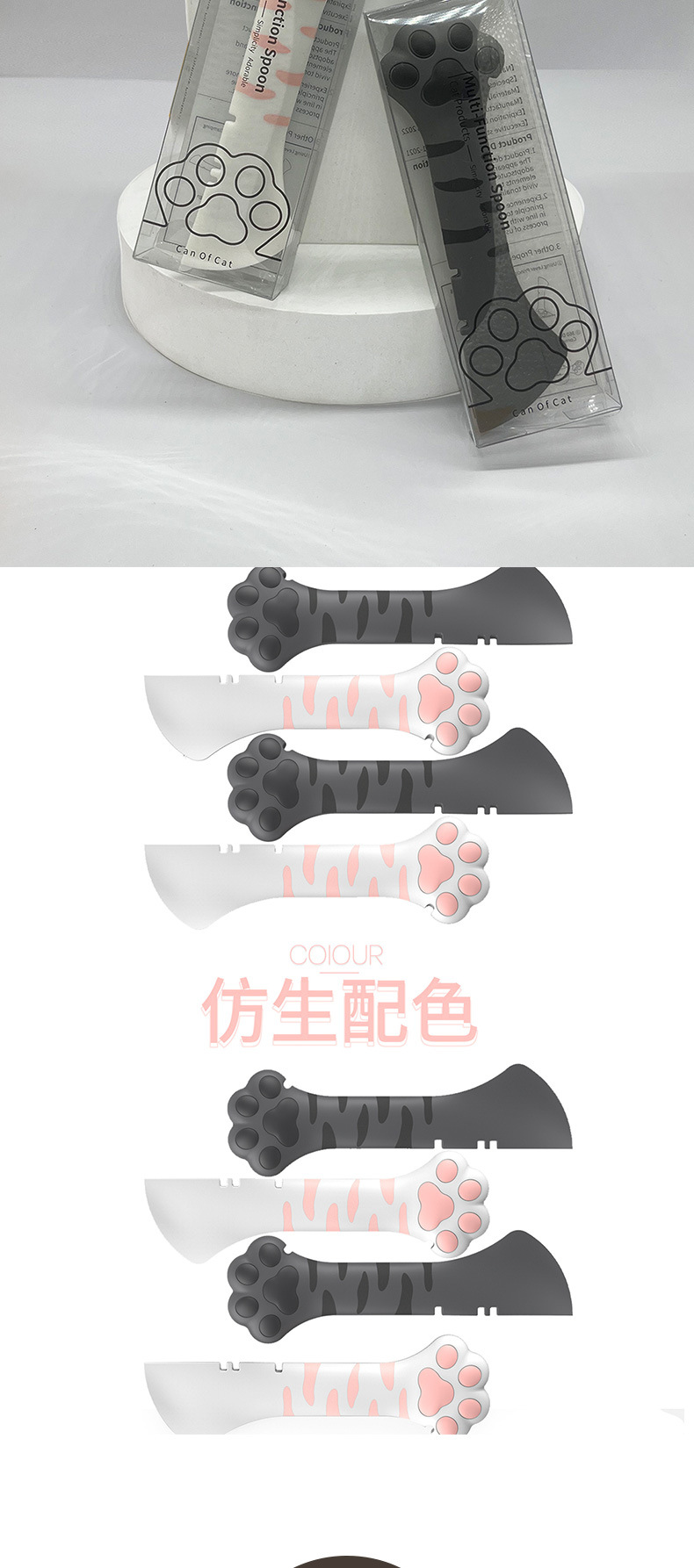 애완 동물 캔 오프너 스푼 2-in -1 고양이 캔 실리콘 스푼 스푼 고양이 삽 젖은 음식 피더 크로스 테두리스토어 가기
