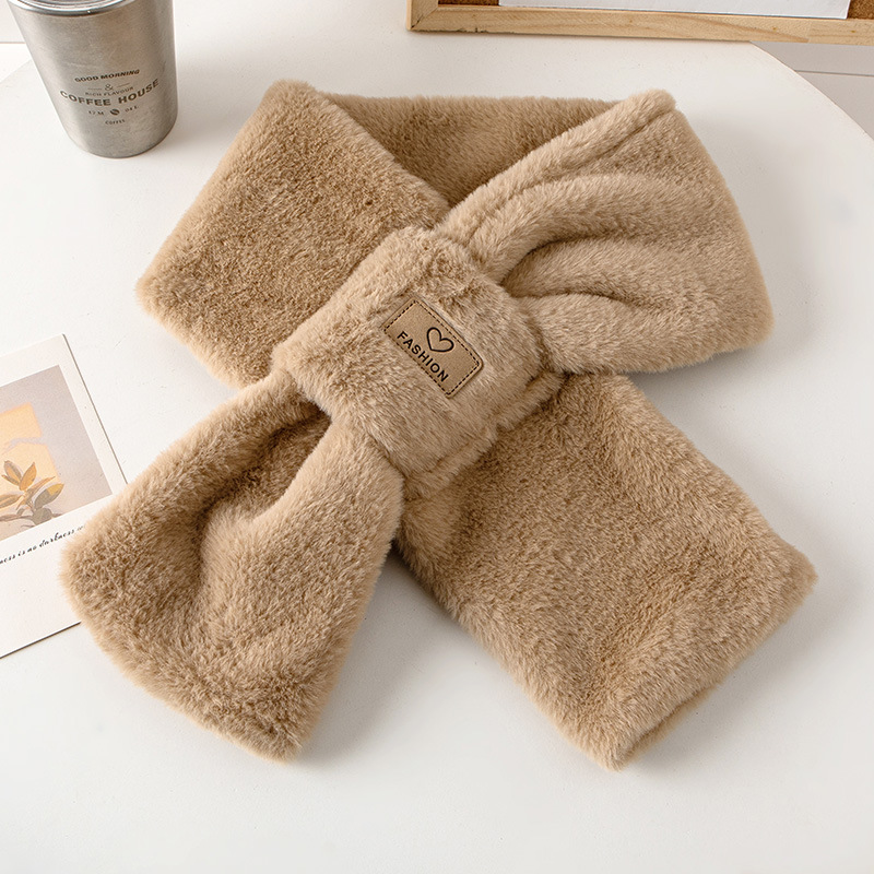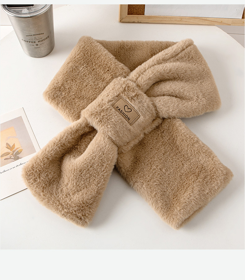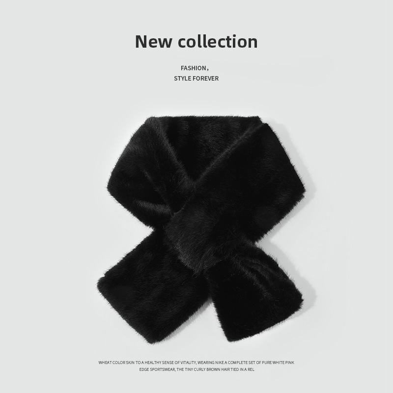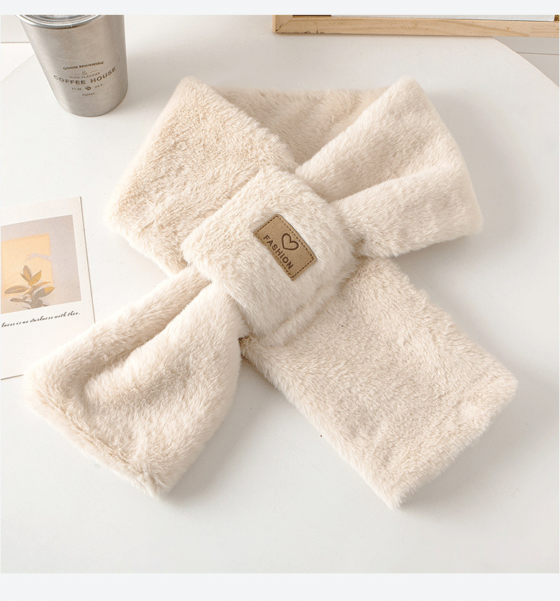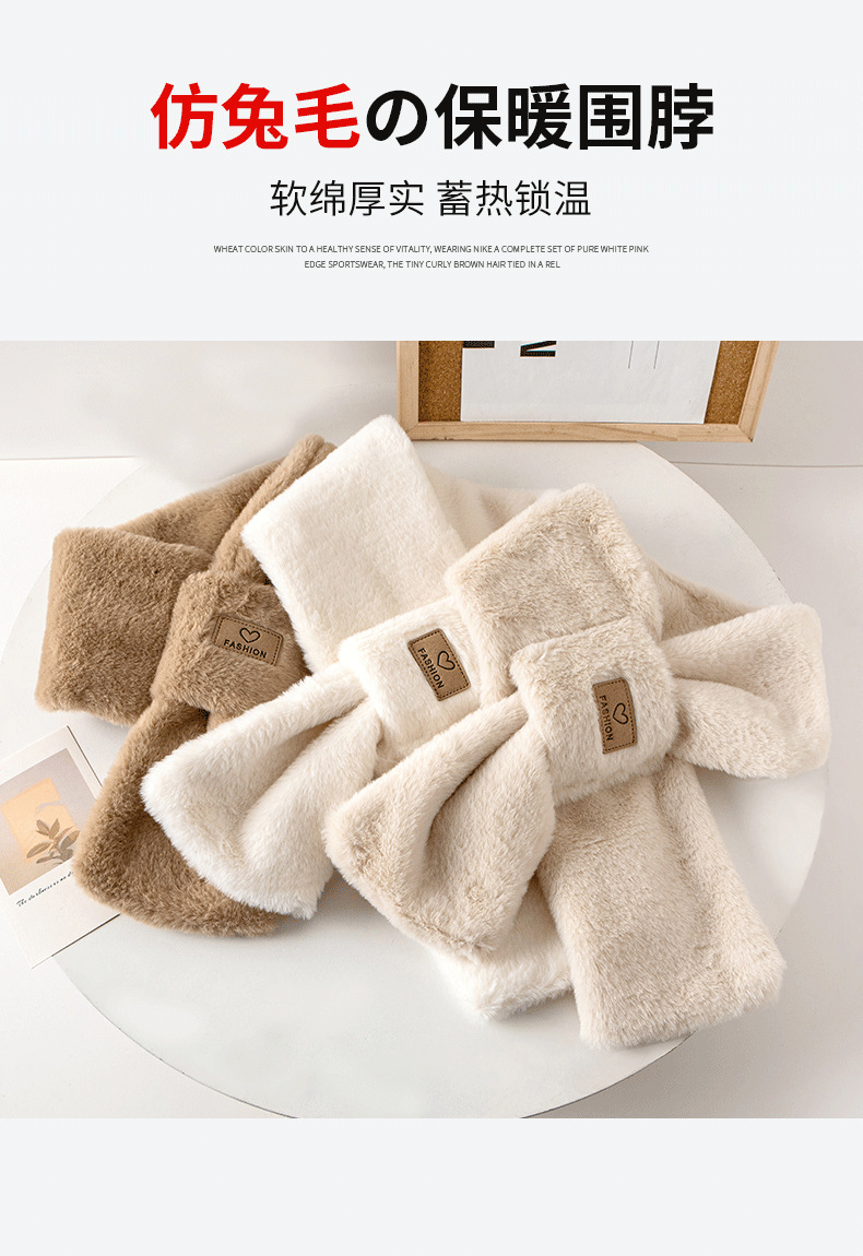 겨울용 플러시 보온 방한 부드럽고 편안한 목 보호대 한국 스타일 고급스러운 다용도 두꺼운 크로스 디자인 인조 토끼털 스카프