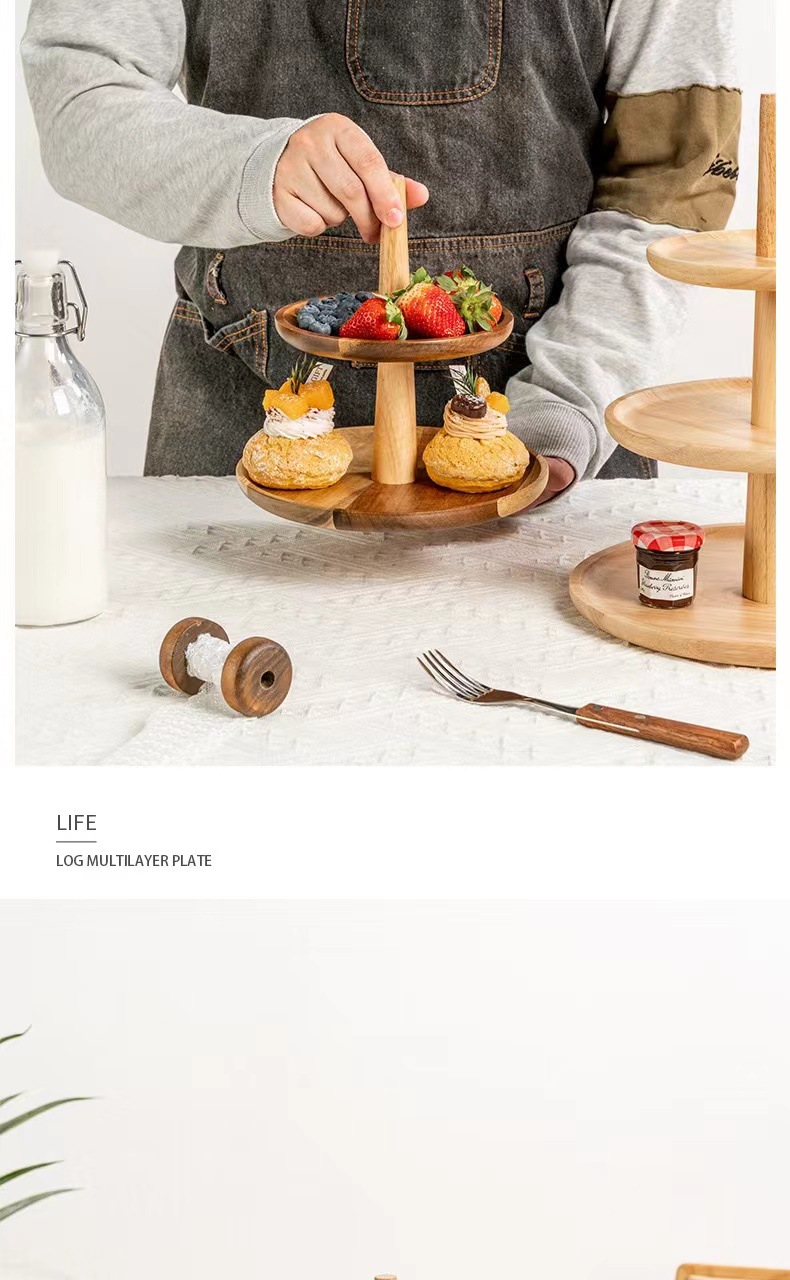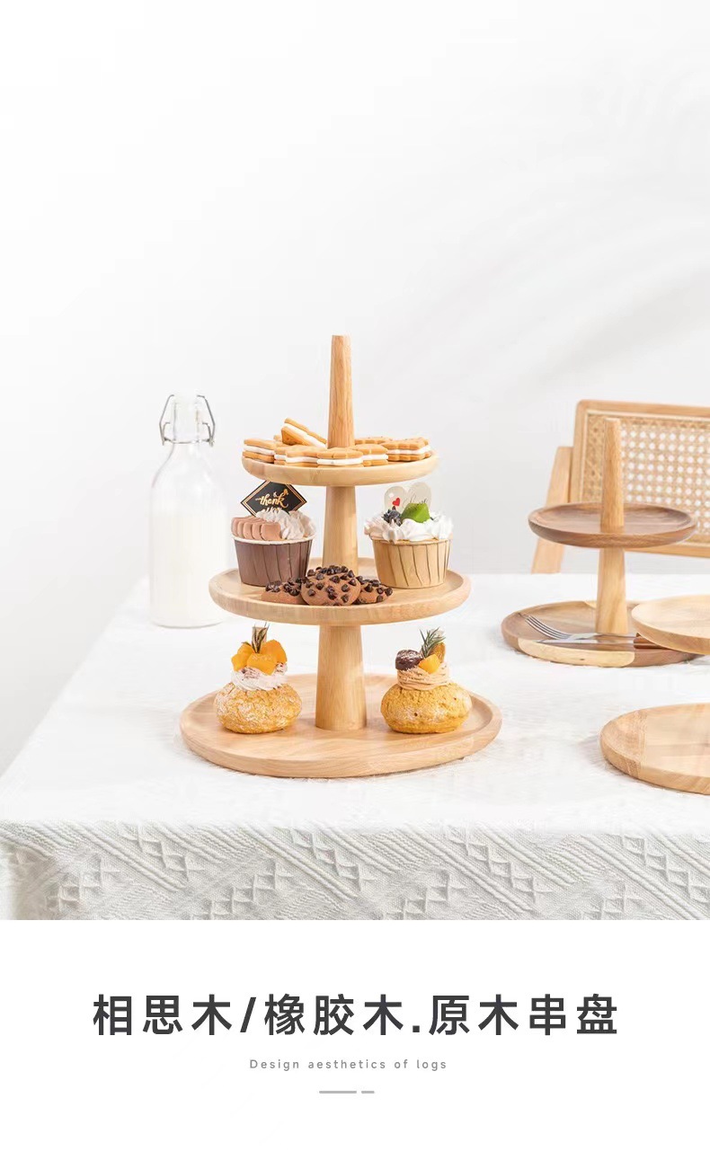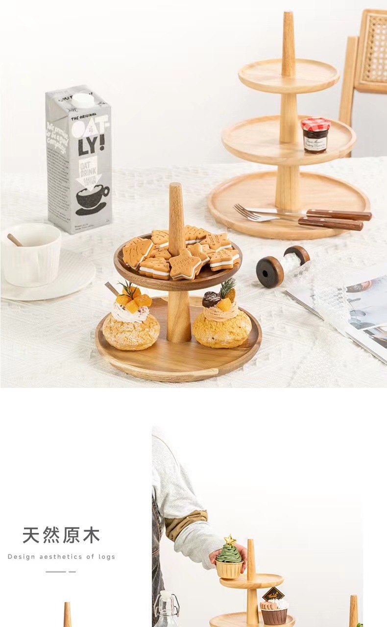 일본식 케이크 랙 3 층 과일 케이크 플레이트 홈 거실 창조적 인 3 층 트레이 디저트 테이블 단단한 나무 디스플레이 랙