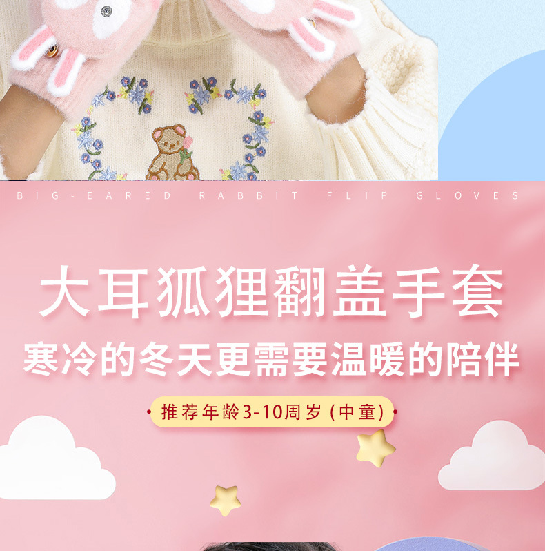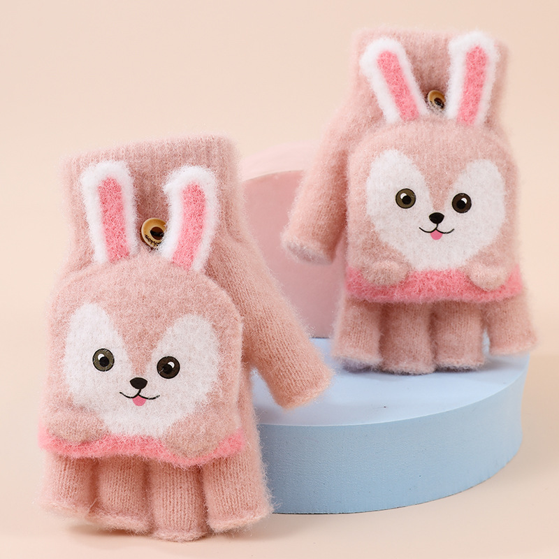 어린이 봉제 장갑 어린 소녀의 귀여운 토끼 두꺼운 따뜻한 플립 핑거 하프 핑거 코트 큰 어린이를위한 방풍스토어 가기
