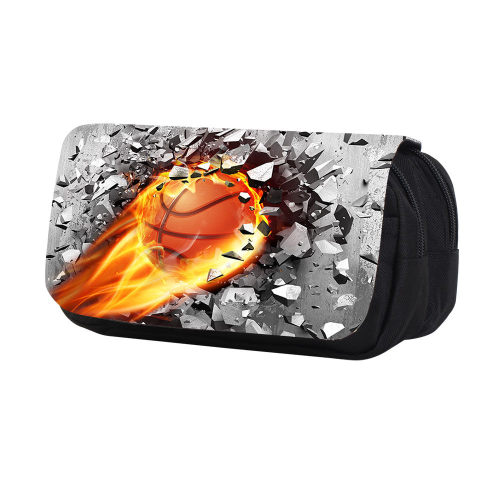 스포츠 불꽃 농구 디지털 인쇄 더블 레이어 지퍼 플립 연필 케이스 학생 대용량 연필 가방 화장품 가방