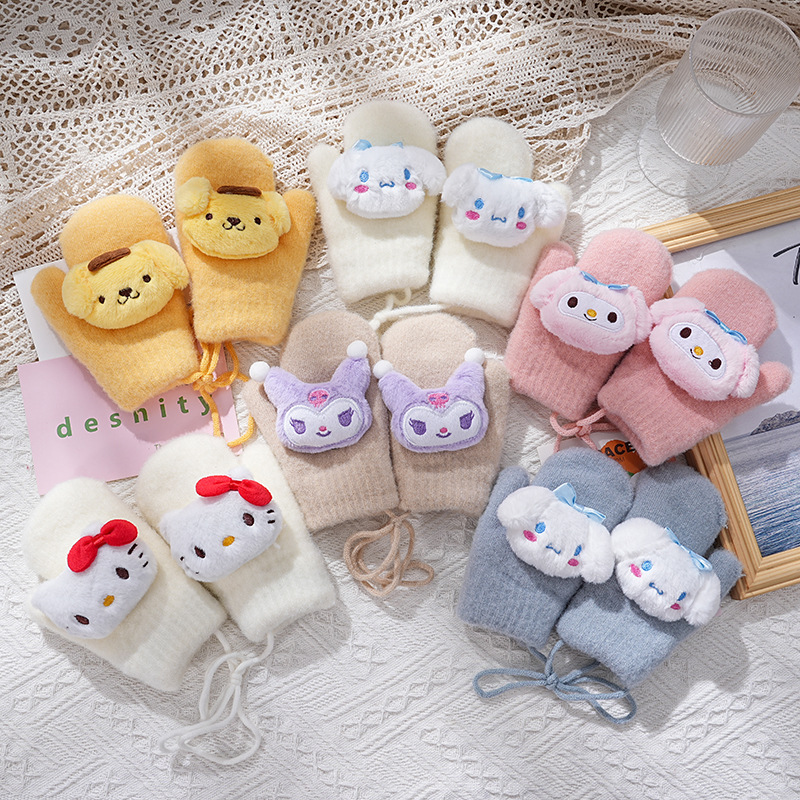 3-8 세 겨울 어린이 장갑 소녀 소년 학생 니트 귀여운 만화 산리오 아기 차가운 따뜻한스토어 가기
