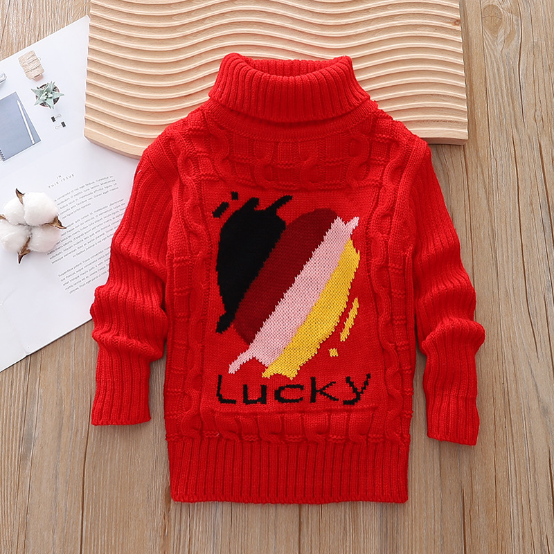 대외 무역 폭발 어린이 스웨터 터틀넥 스웨터 소년과 소녀 가을과 겨울 사랑 풀오버 긴 소매 바닥 셔츠 어린이 의류스토어 가기