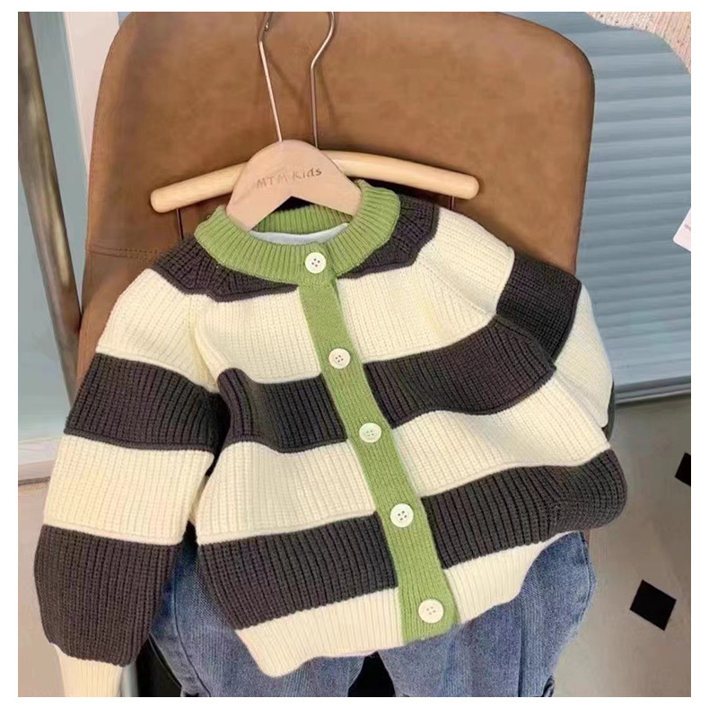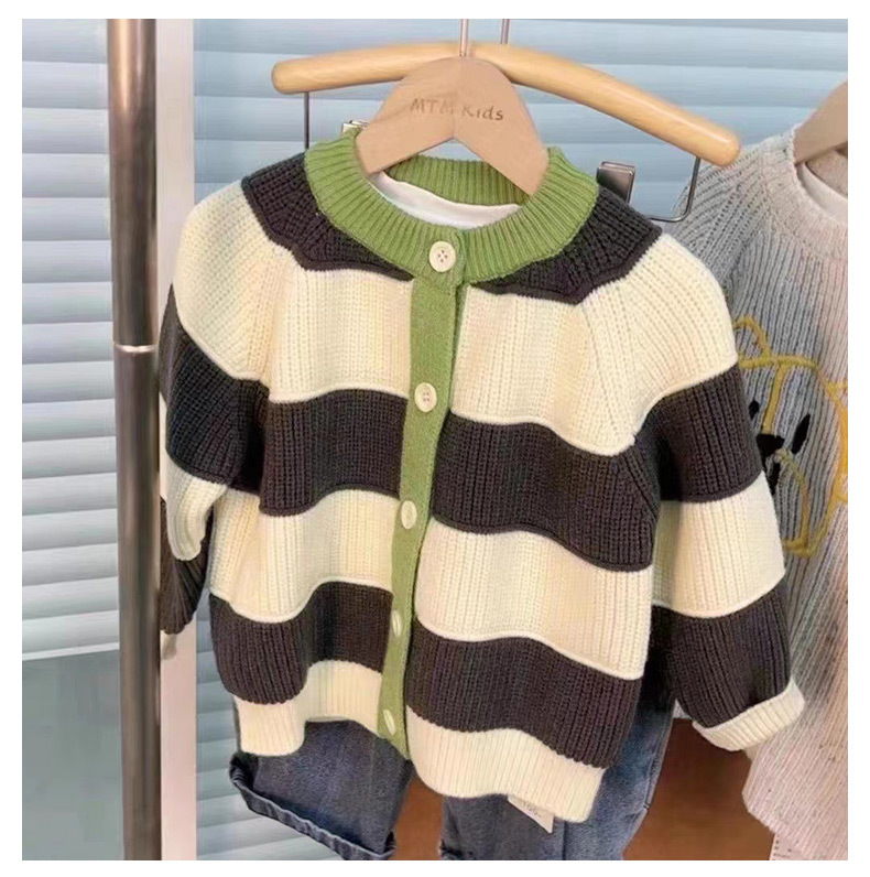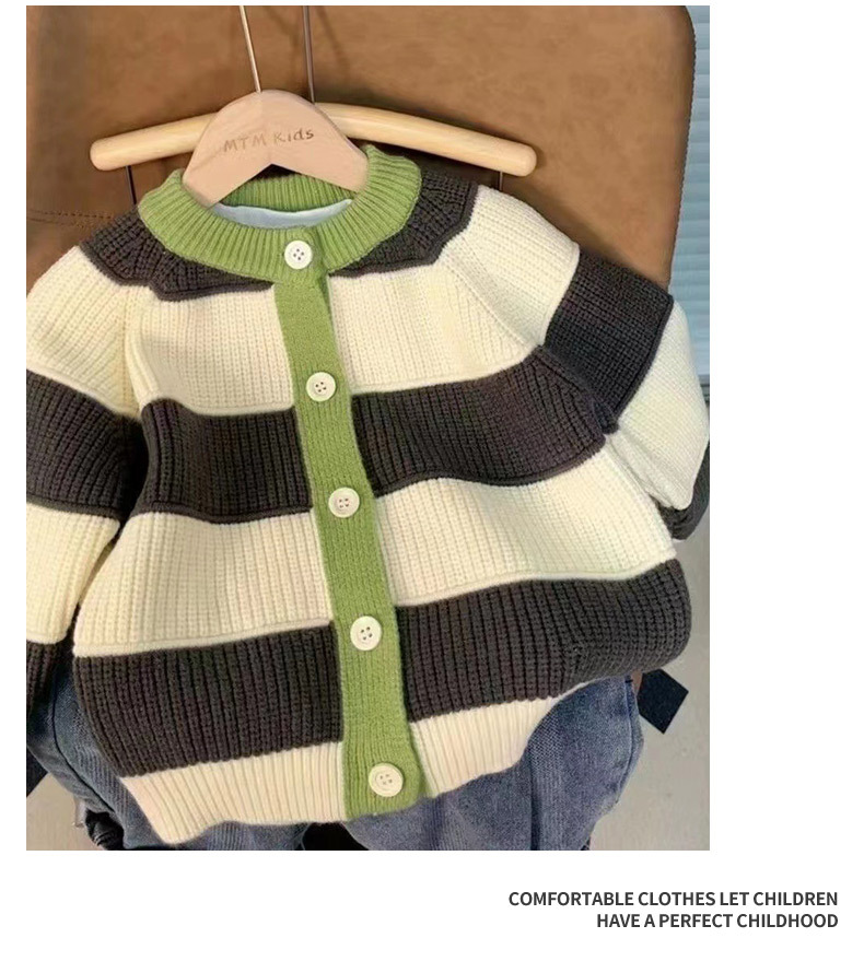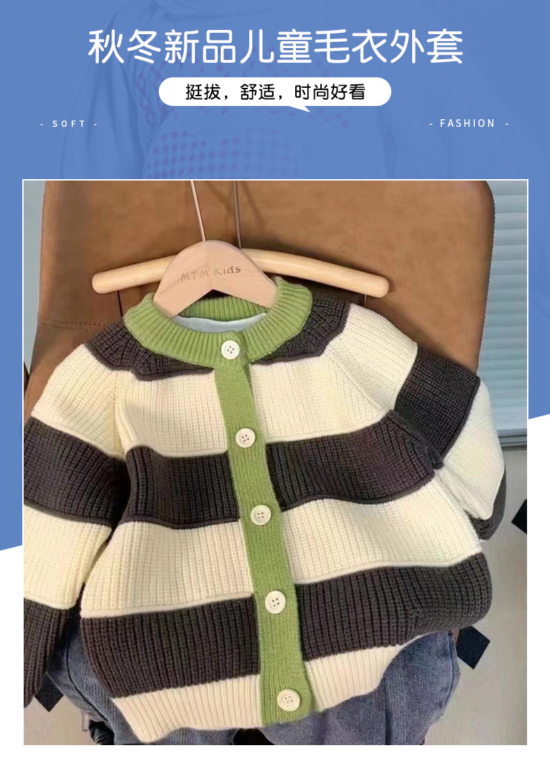 2023 가을과 겨울 새로운 어린이 스웨터 코트 카디건 봄과 가을 줄무늬 유행 아기 컬러 매칭 가을 유행스토어 가기