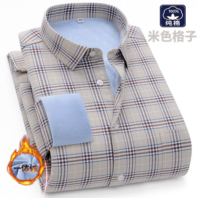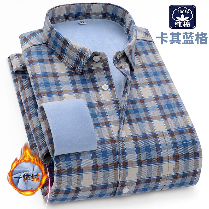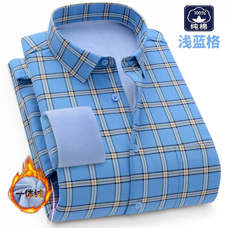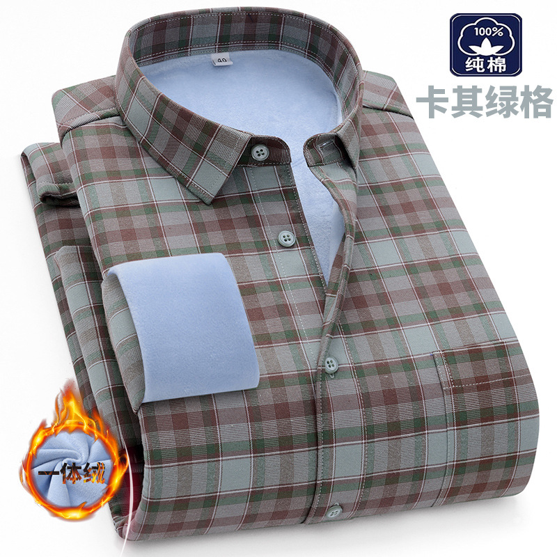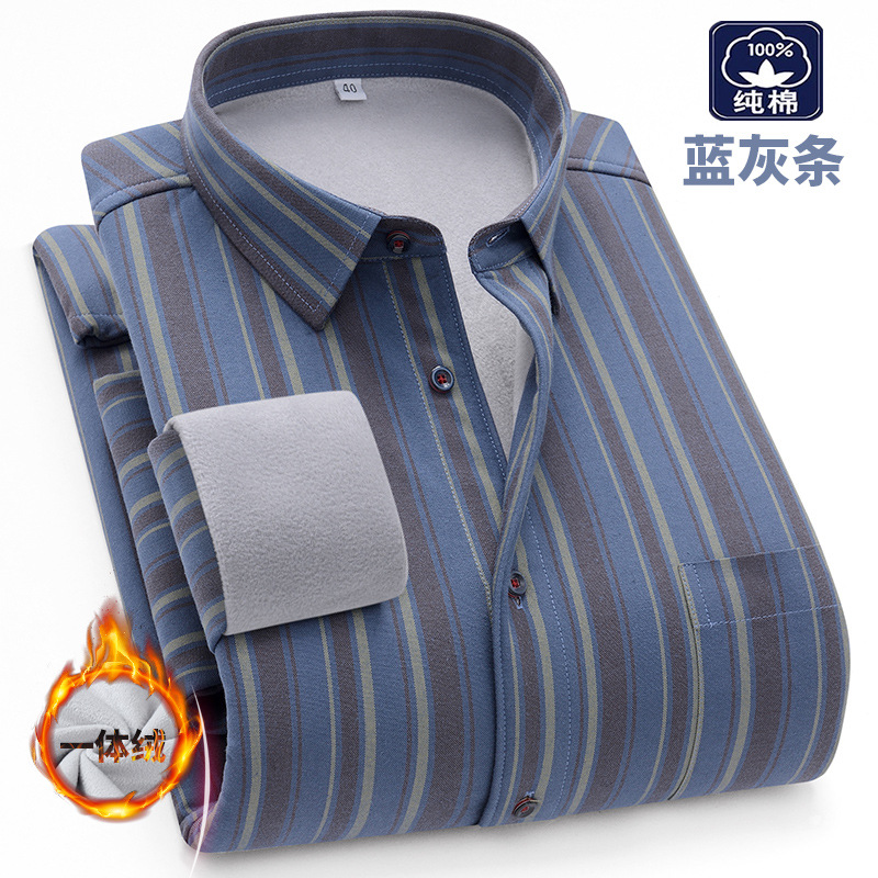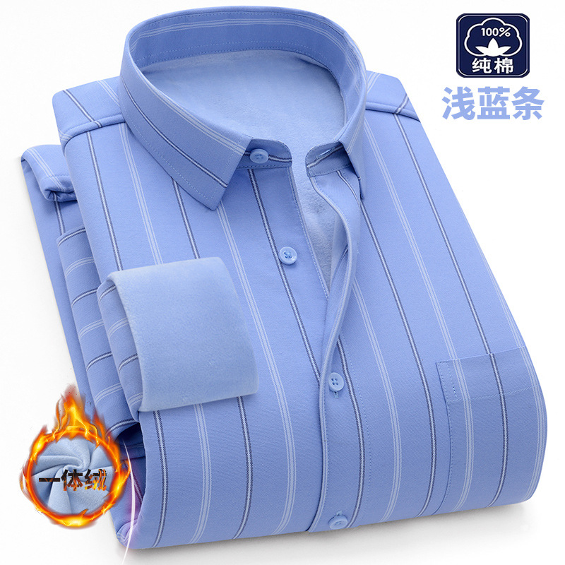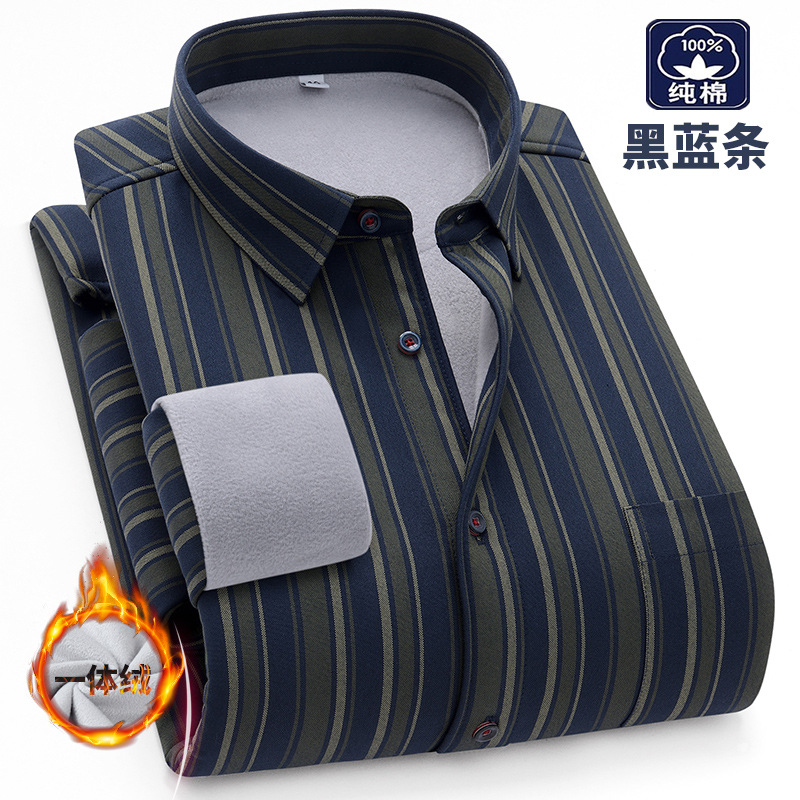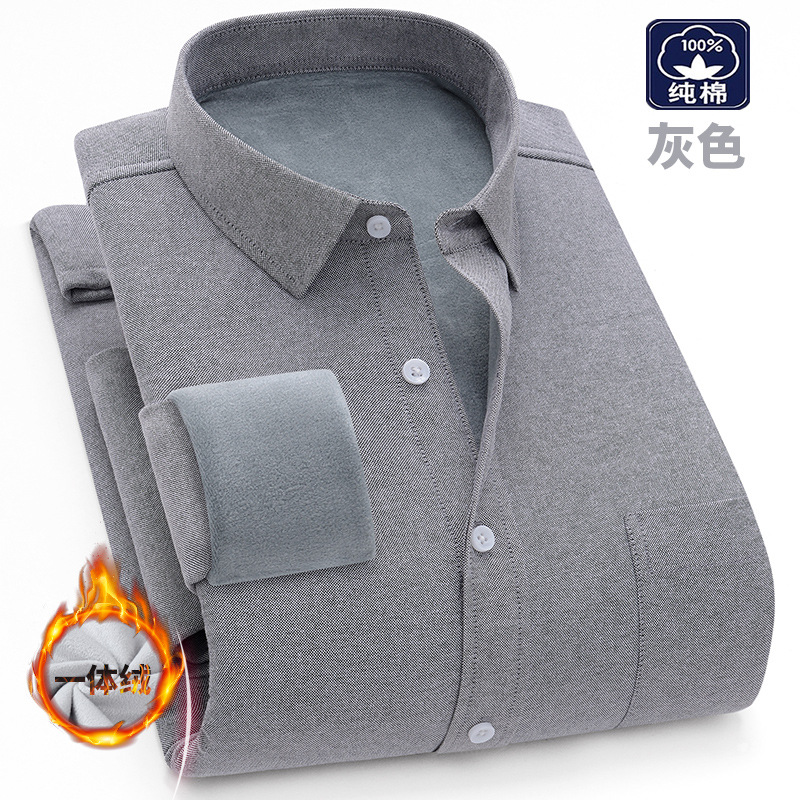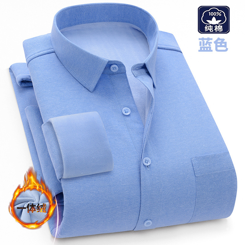 겨울 원피스 벨벳 면 기모 두꺼운 옥스포드 섬유 따뜻한 셔츠 남자의 중년 및 노인 플러스 사이즈 캐주얼 비즈니스 셔츠스토어 가기