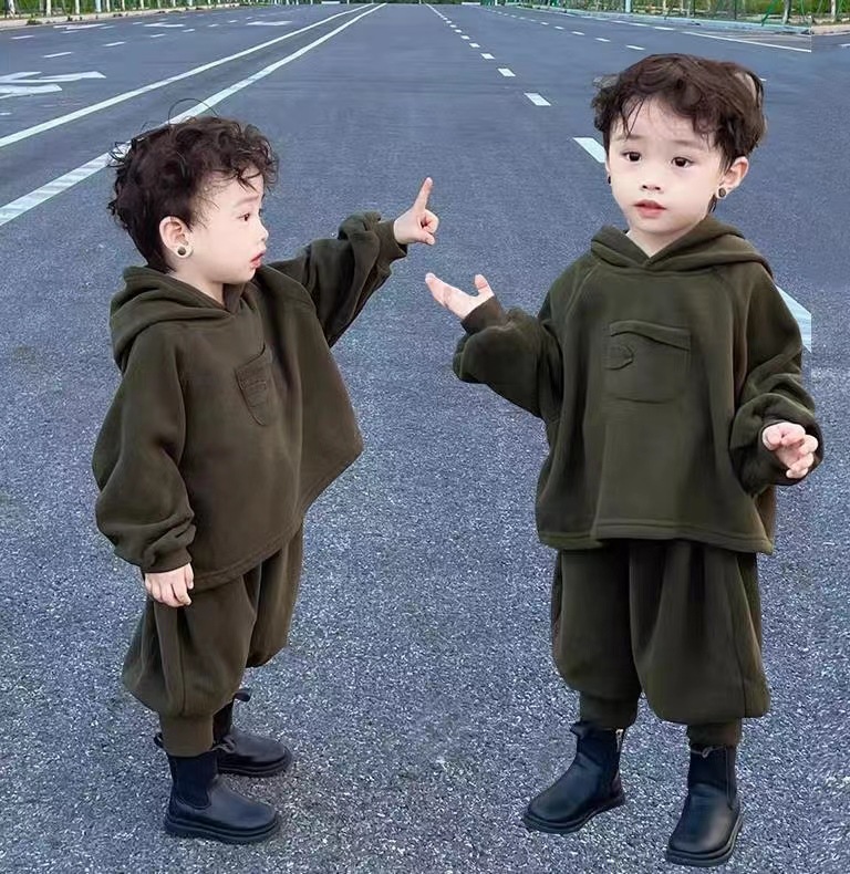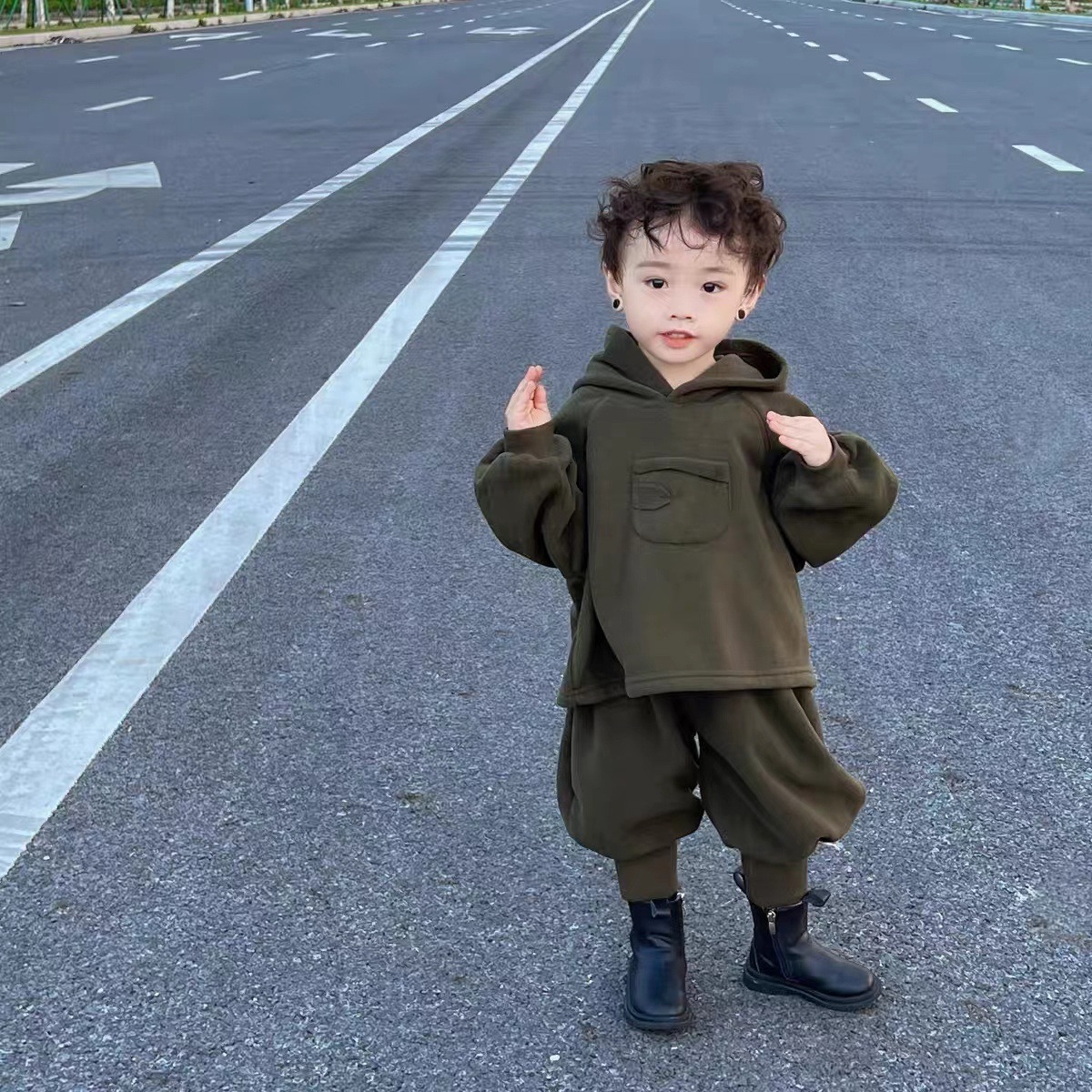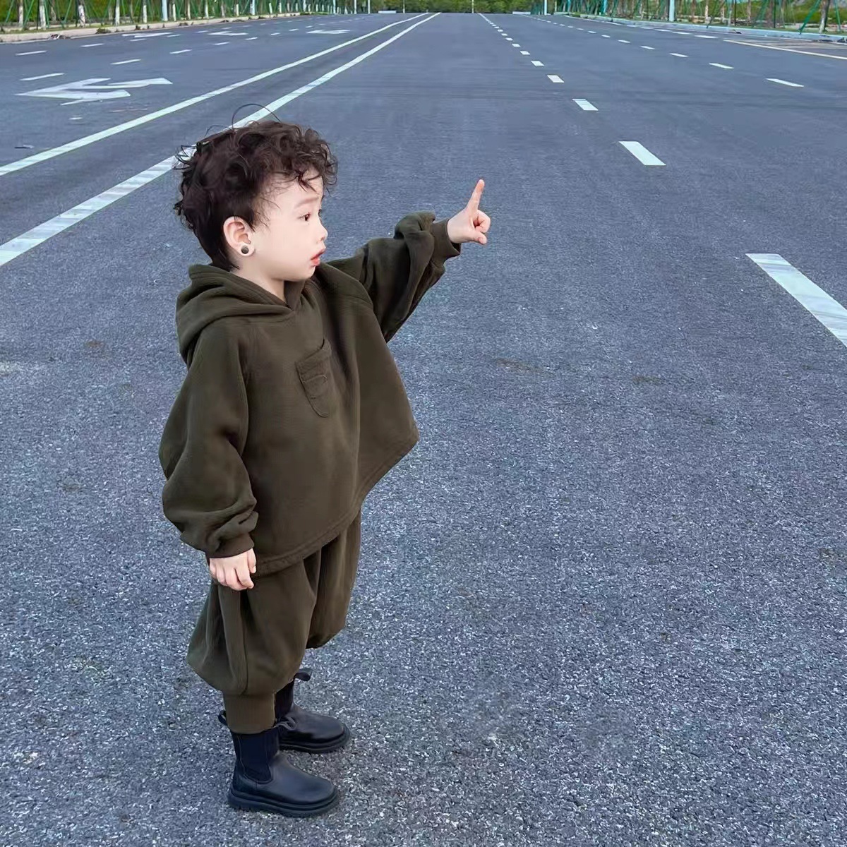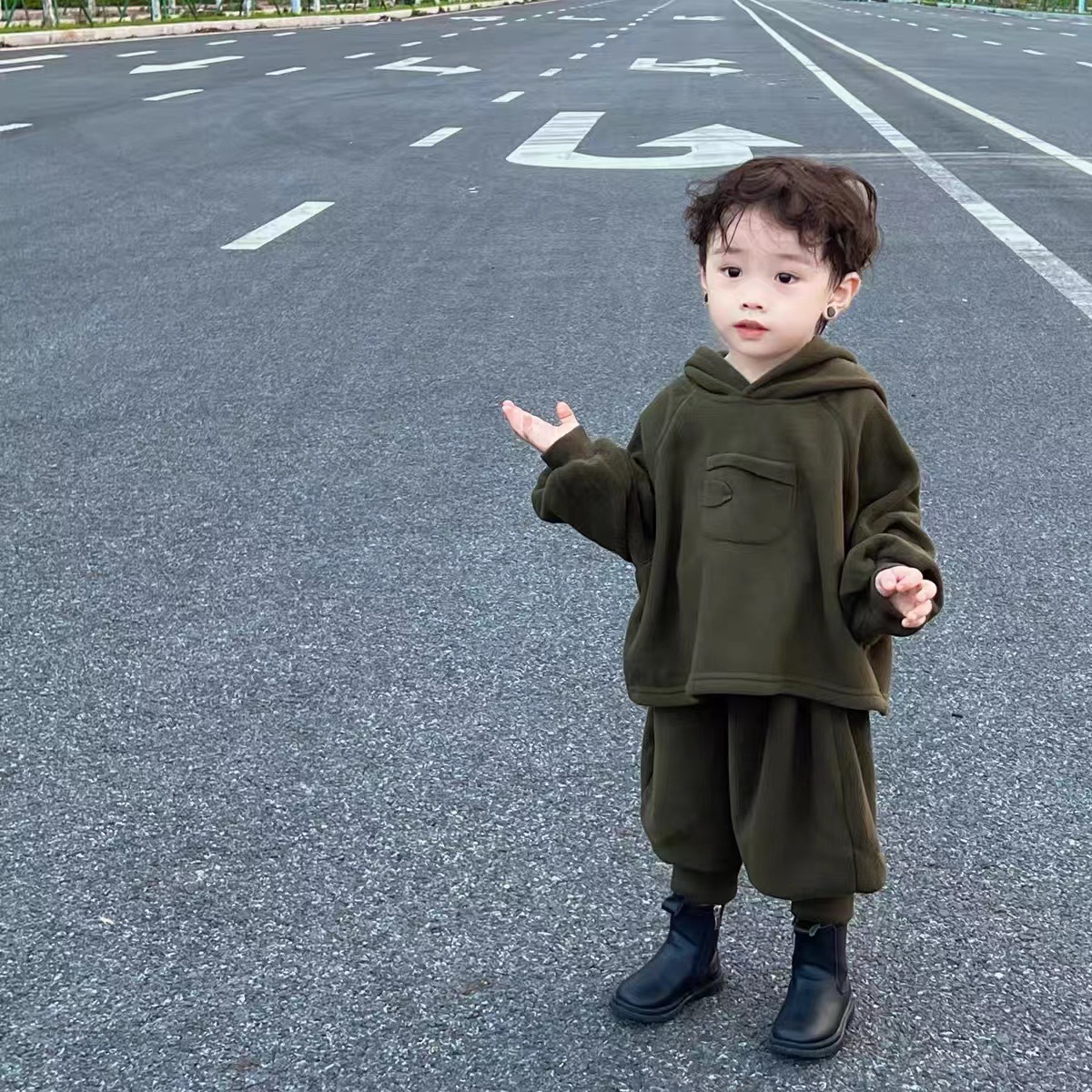 소년 기모 세트 2023 새로운 서양식 어린이 시원한 잘 생긴 가을과 겨울 옷 극지 양털 투피스 아기 옷스토어 가기