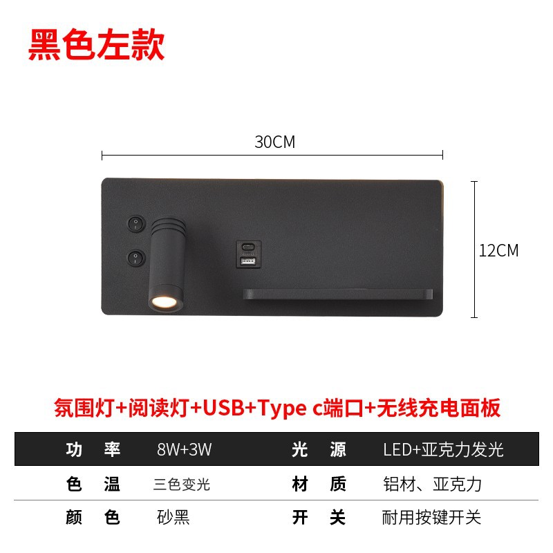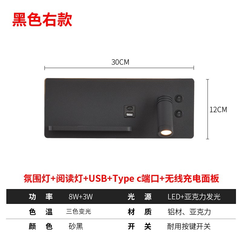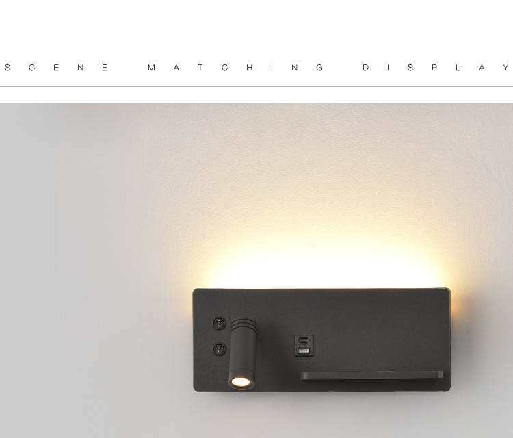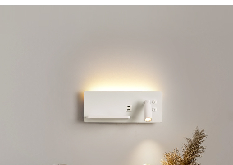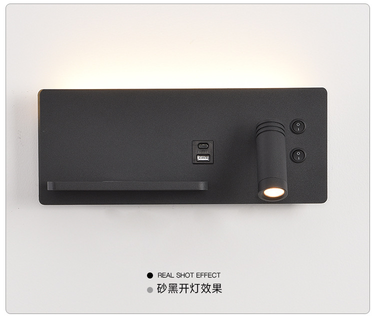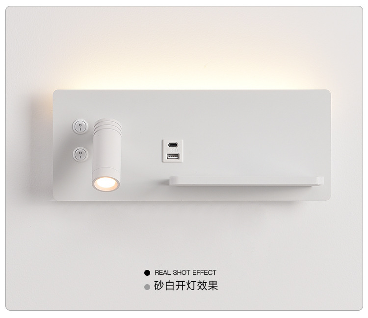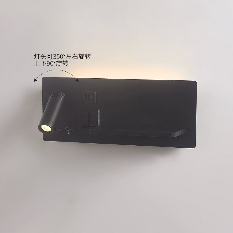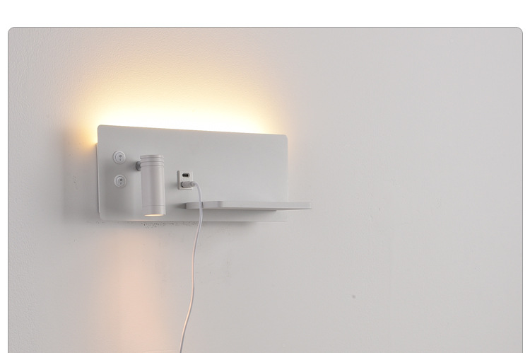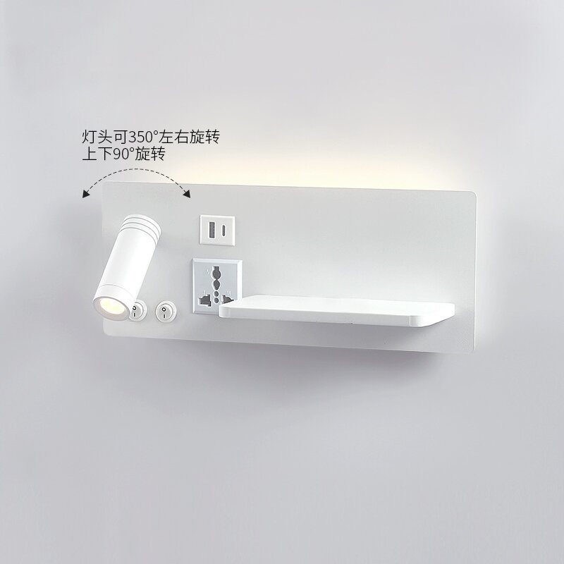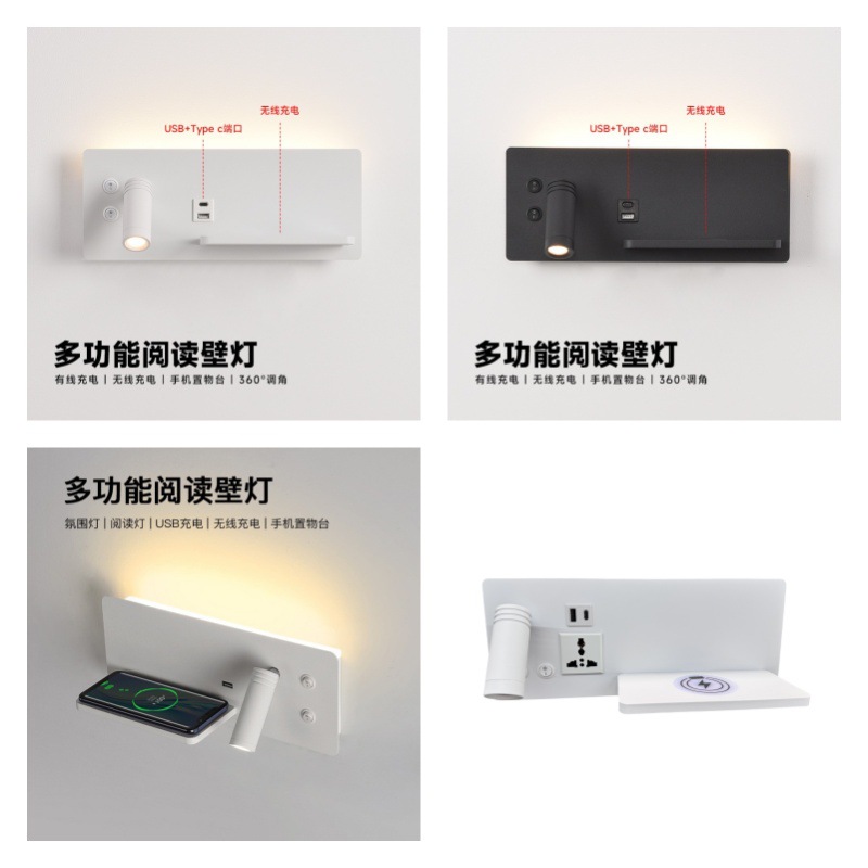 새로운 현대 미니멀 무선 충전 독서 침대 옆 램프 다기능 소켓 침실 선반 호텔 LED 벽 램프