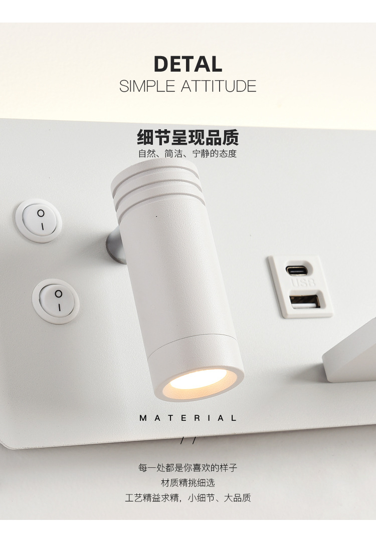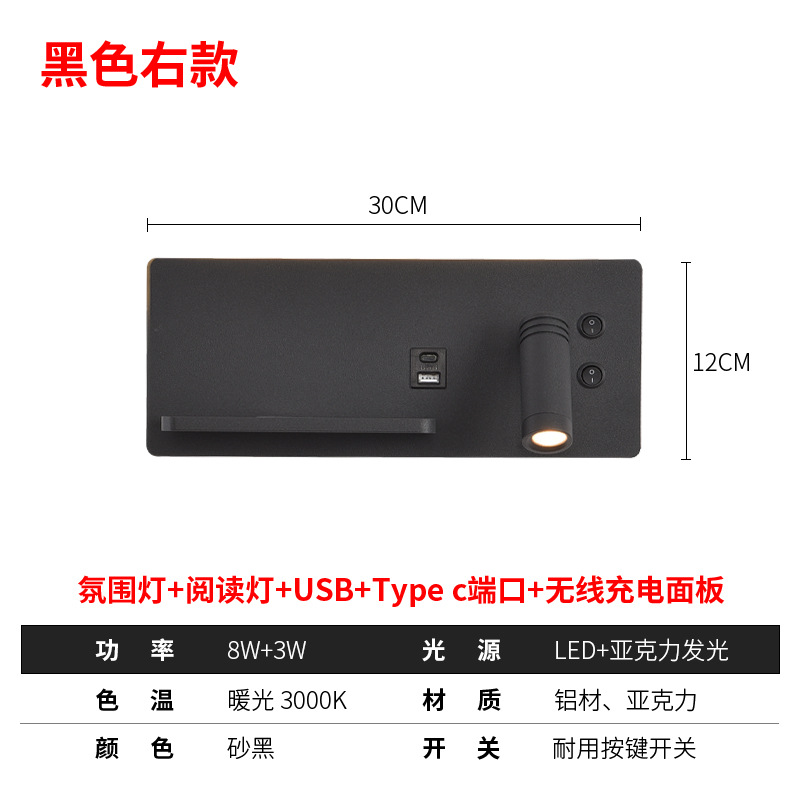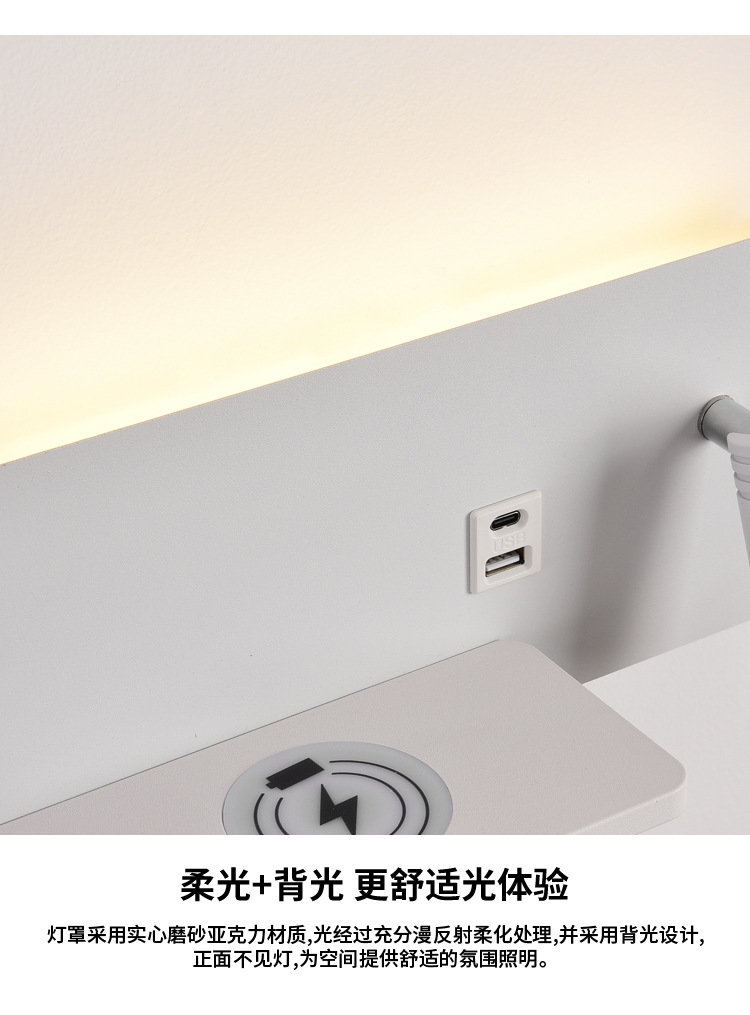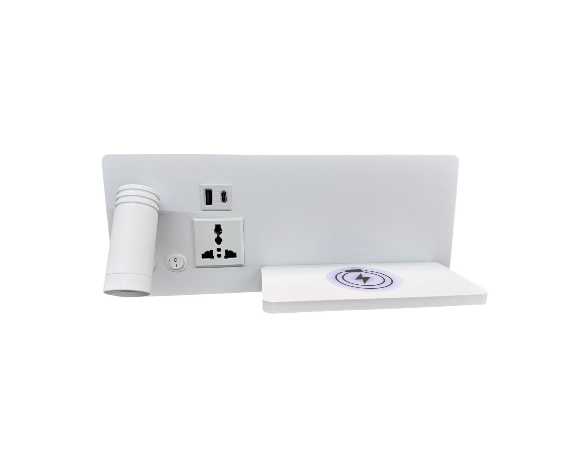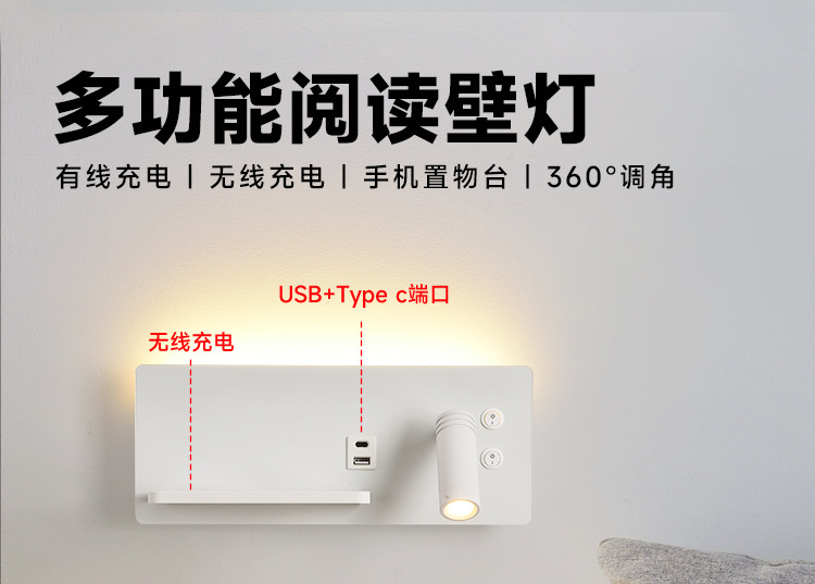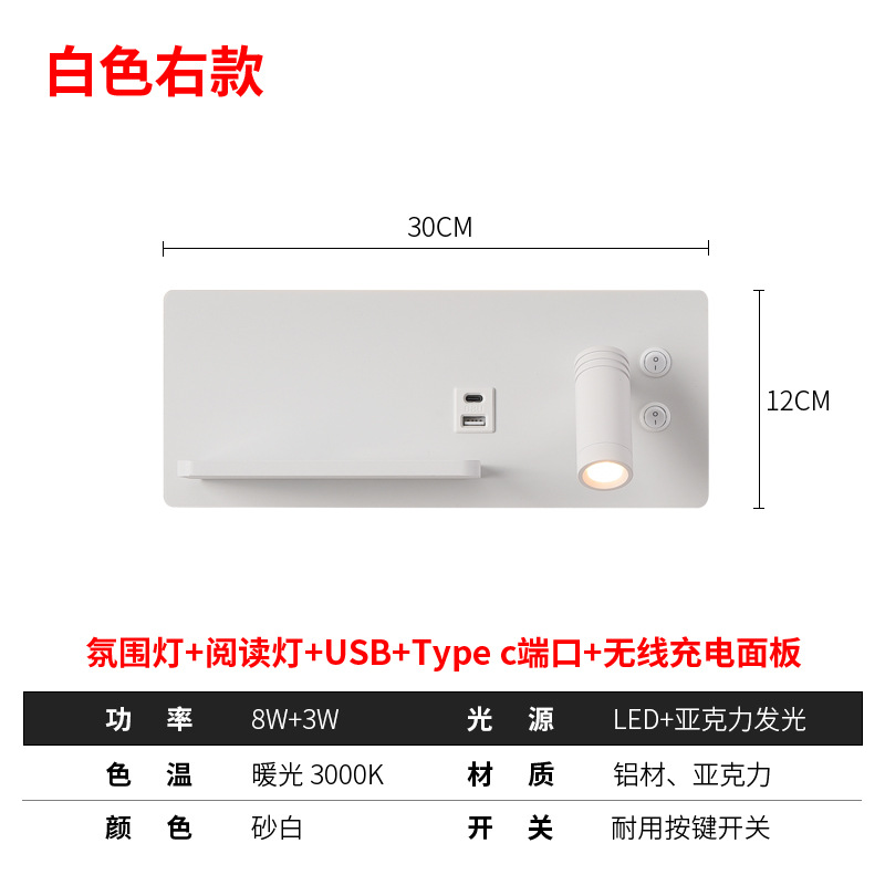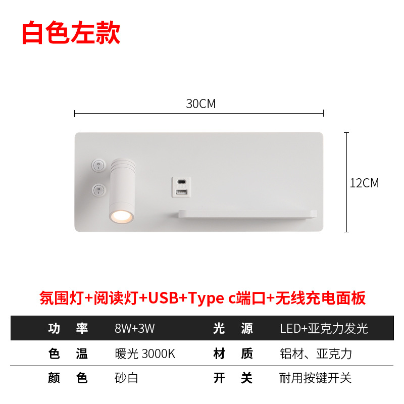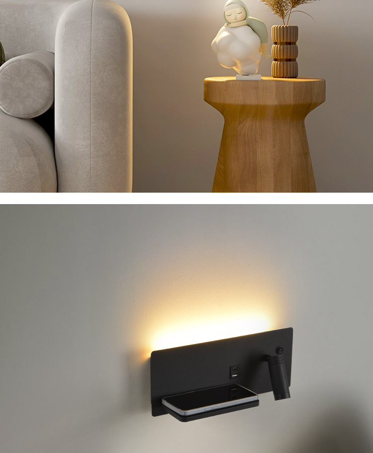 새로운 현대 미니멀 무선 충전 독서 침대 옆 램프 다기능 소켓 침실 선반 호텔 LED 벽 램프