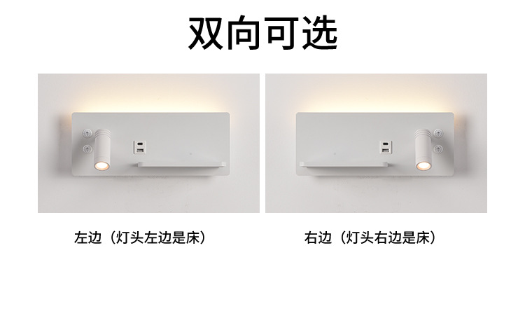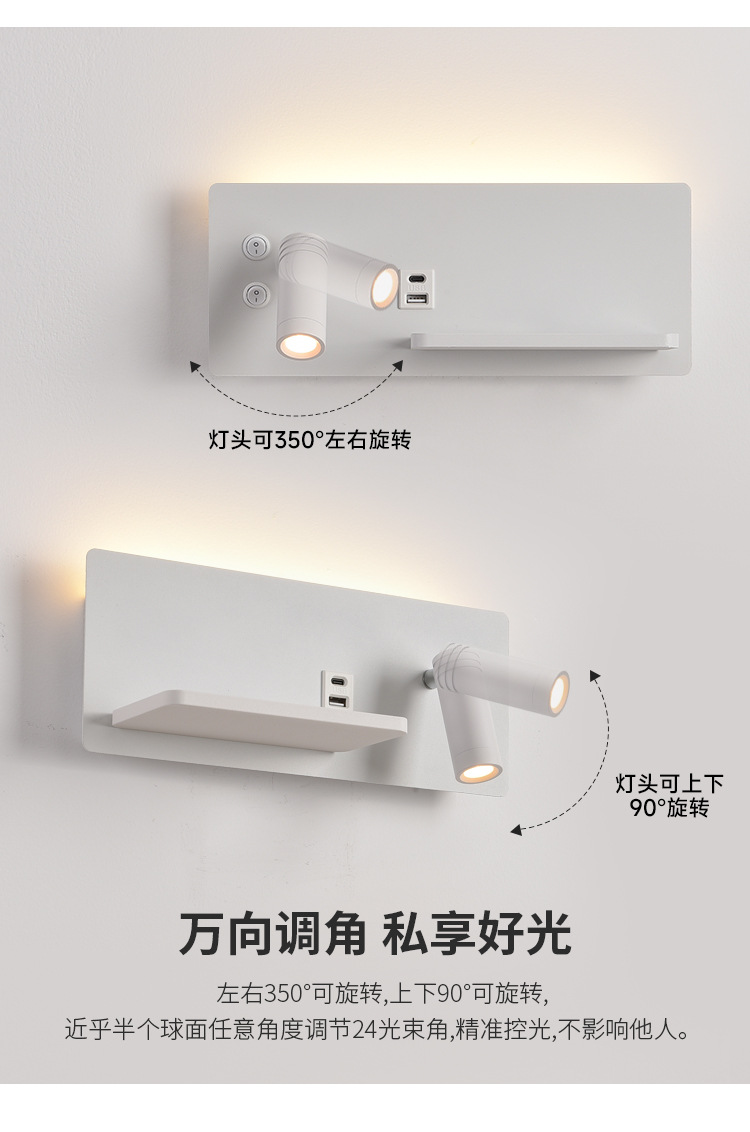 새로운 현대 미니멀 무선 충전 독서 침대 옆 램프 다기능 소켓 침실 선반 호텔 LED 벽 램프스토어 가기