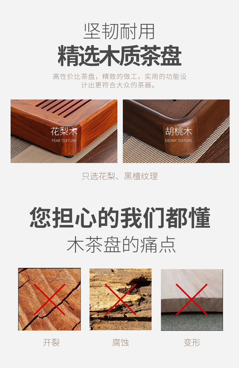 새로운 중국식 흑단 호두 단단한 나무 물 티 트레이 스몰 사이즈 가정용 사무실 물 저장 트레이 말린 배 티 테이블 트레이