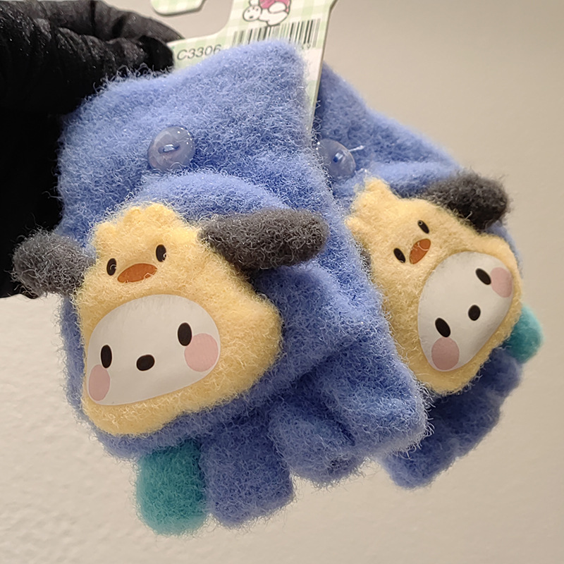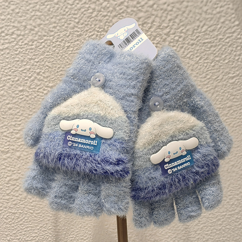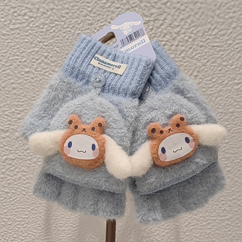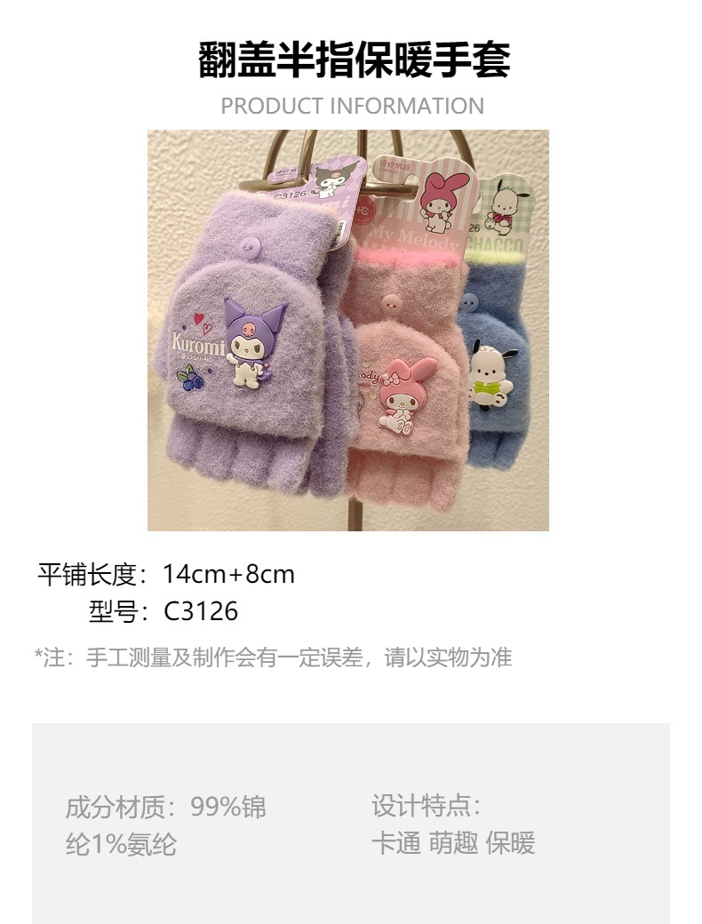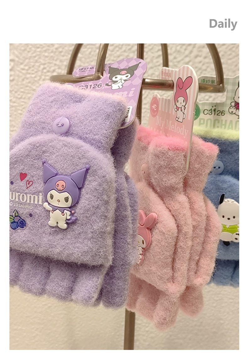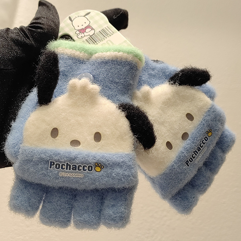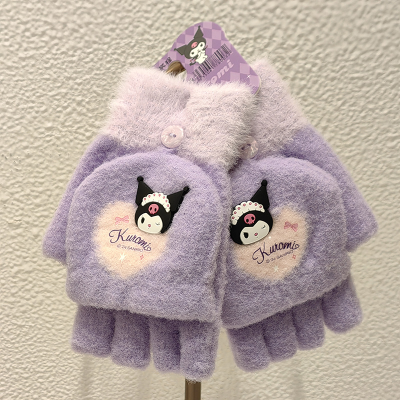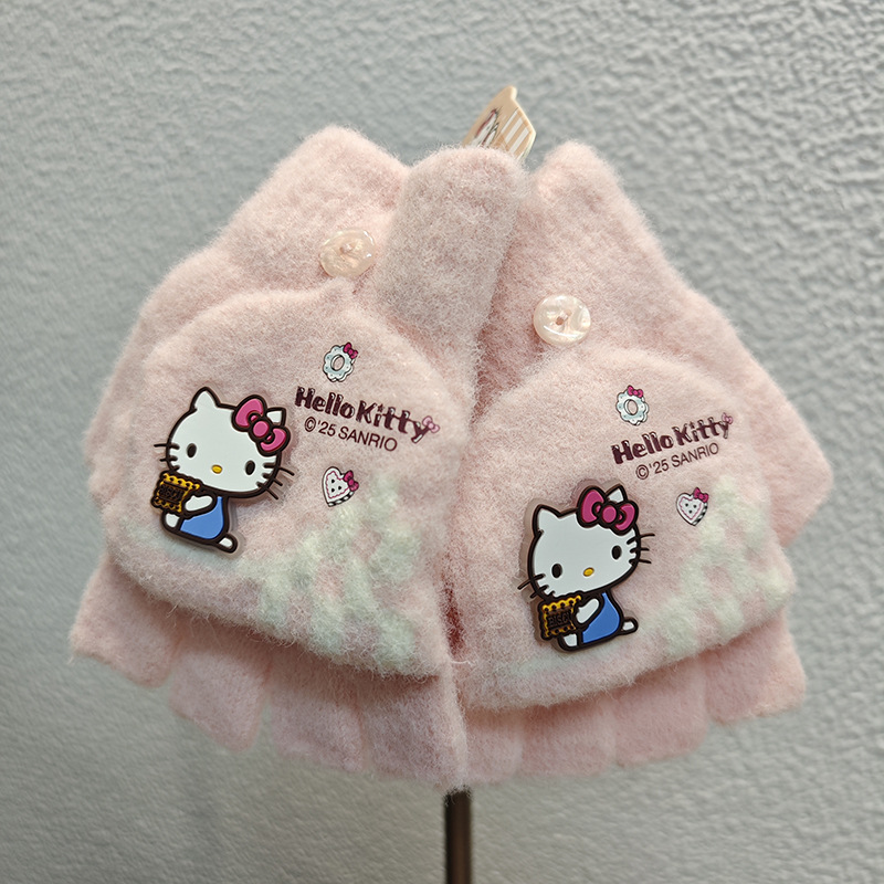Sanrio 정품 공인 어린이 장갑 소녀를위한 겨울 반 손가락 플립 장갑 만화 초등 학생 쓰기 장갑