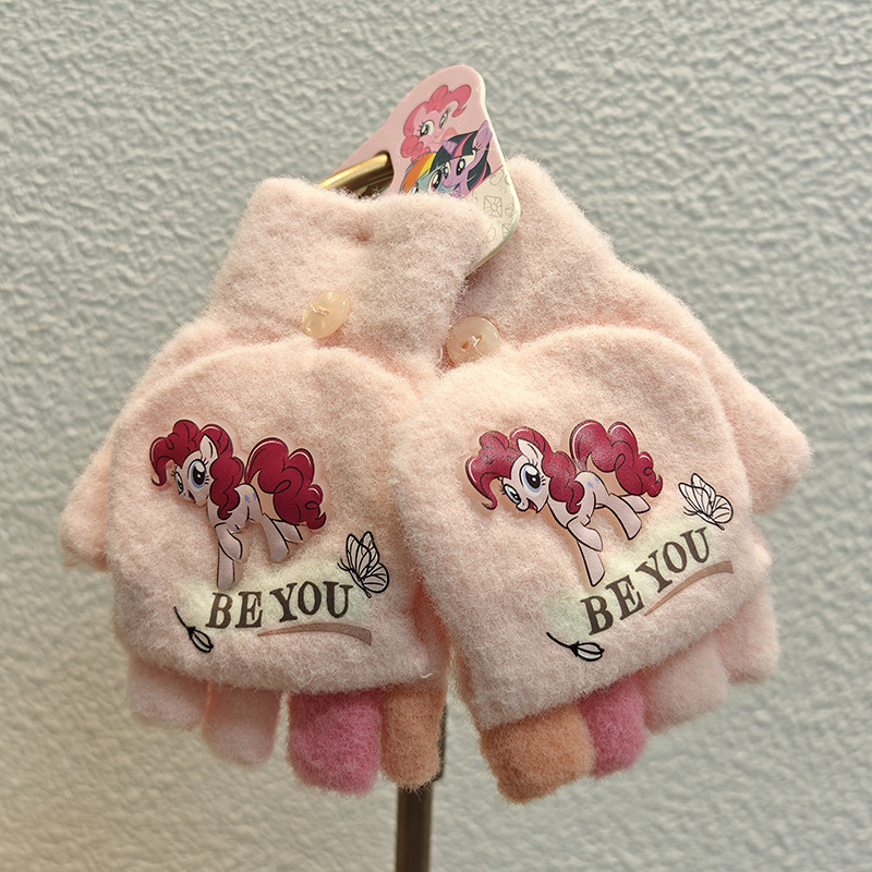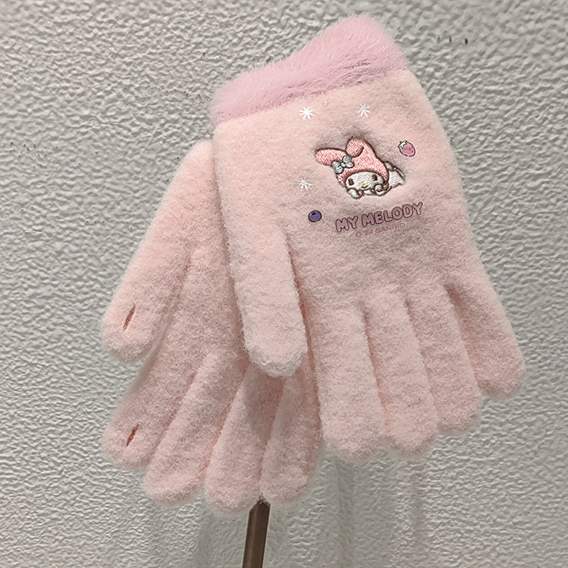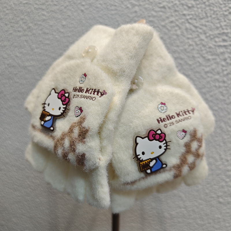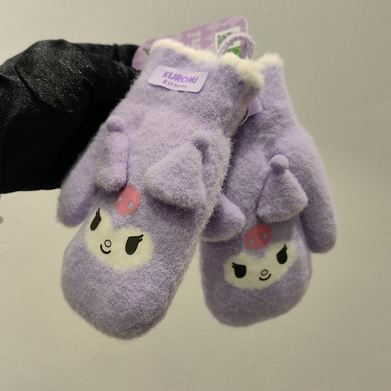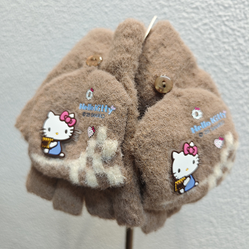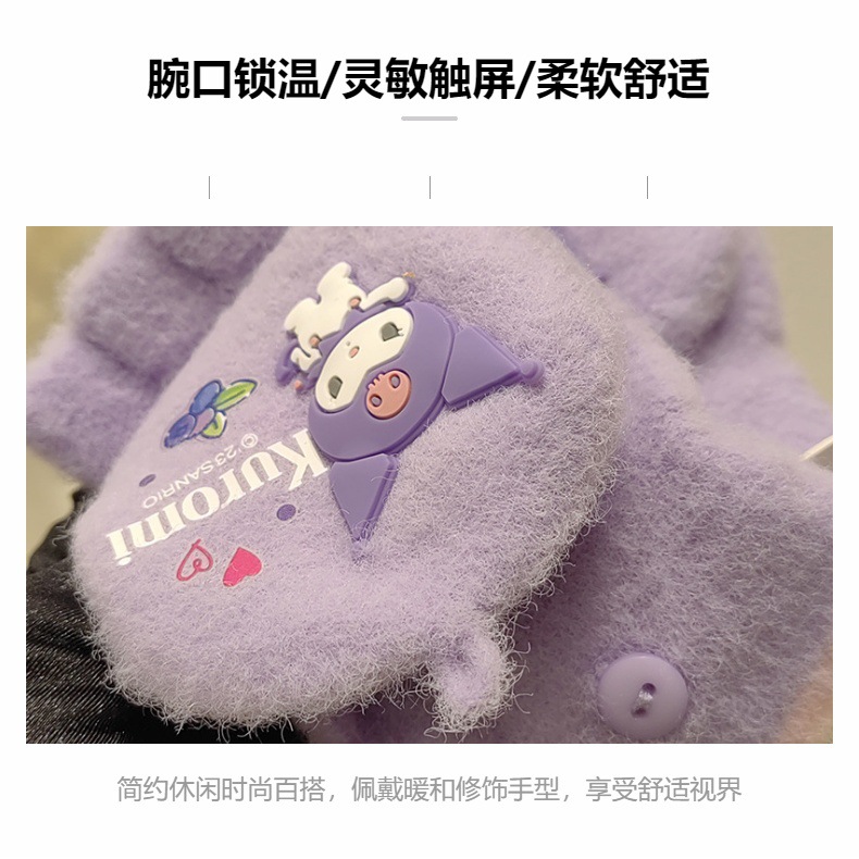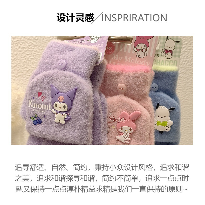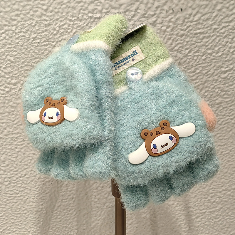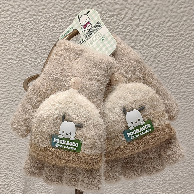 Sanrio 정품 공인 어린이 장갑 소녀를위한 겨울 반 손가락 플립 장갑 만화 초등 학생 쓰기 장갑