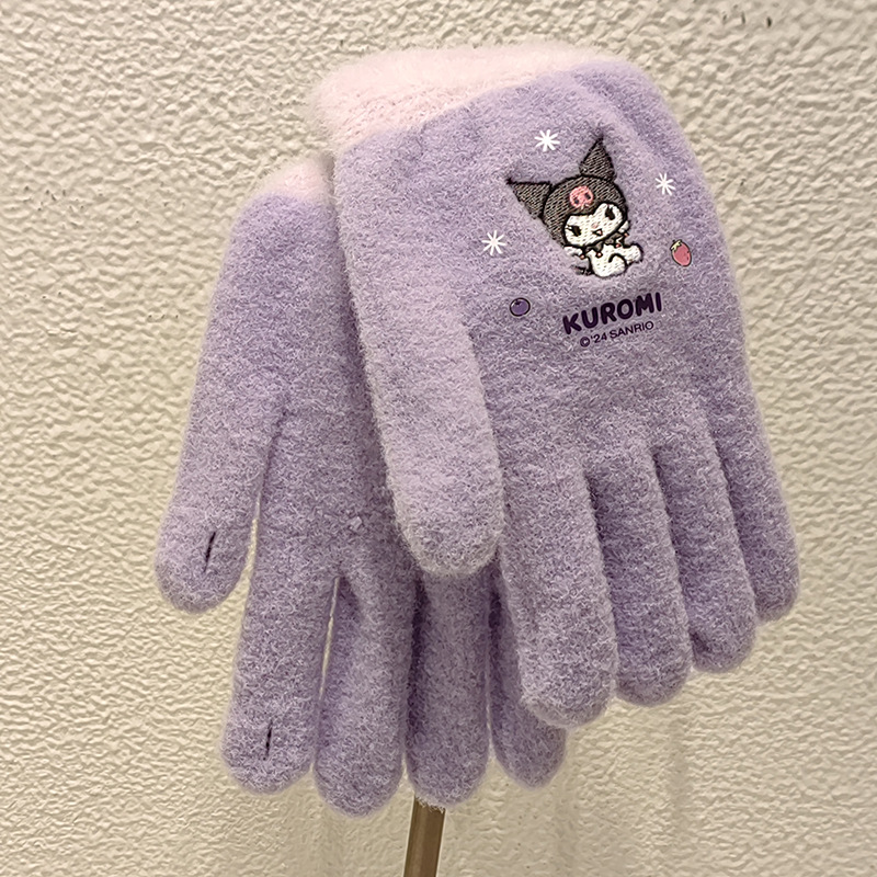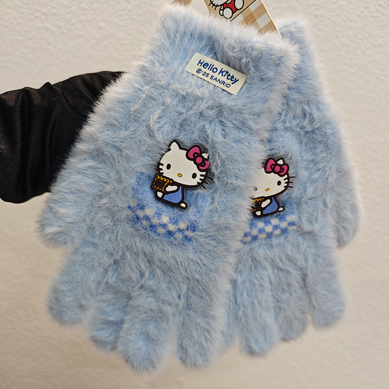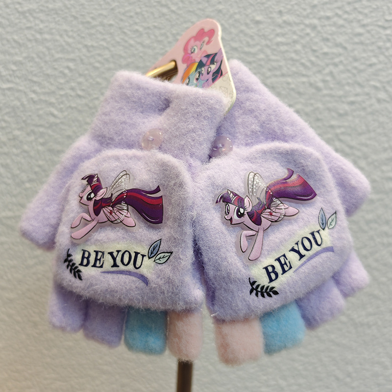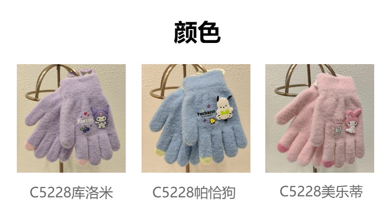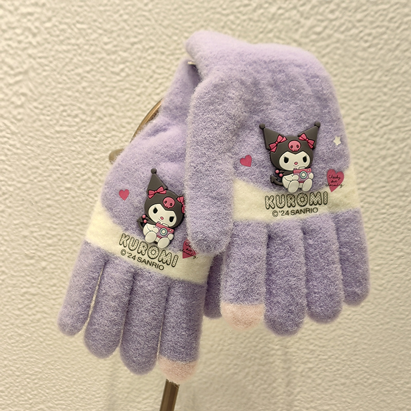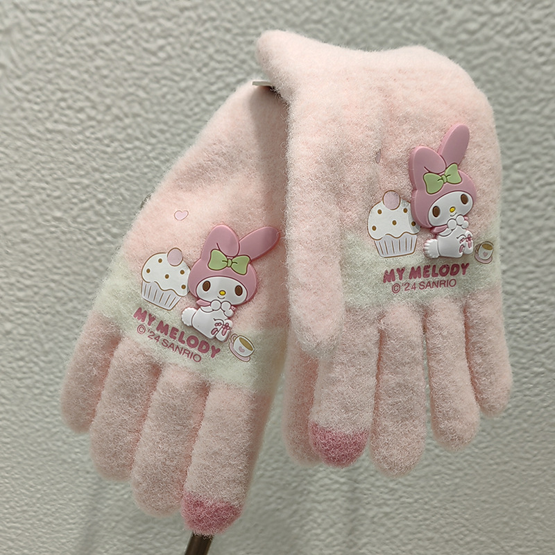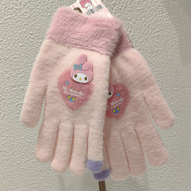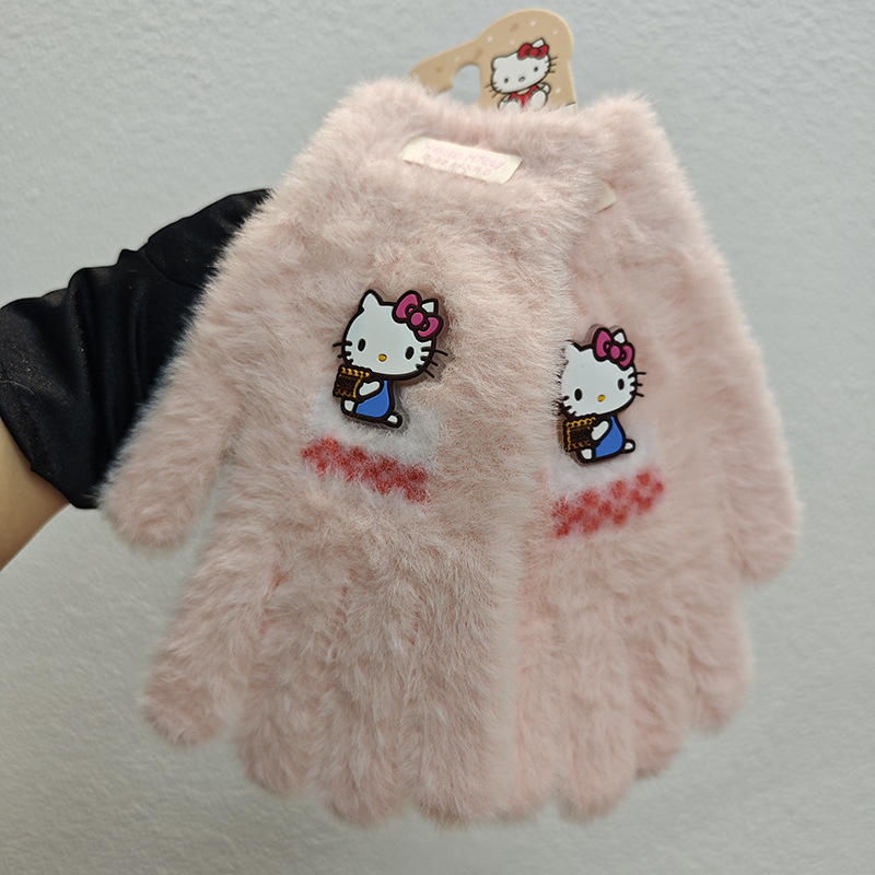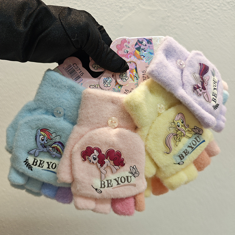 Sanrio 정품 공인 어린이 장갑 소녀를위한 겨울 반 손가락 플립 장갑 만화 초등 학생 쓰기 장갑