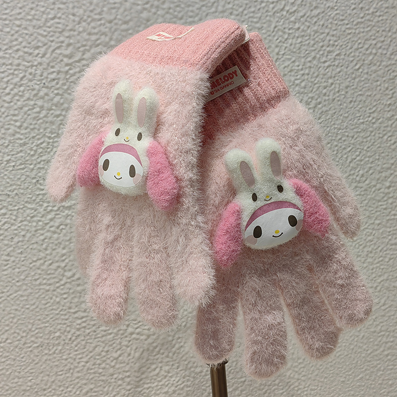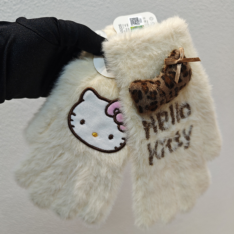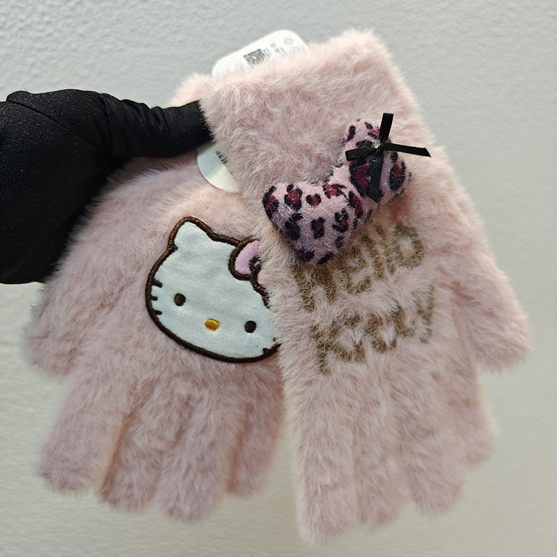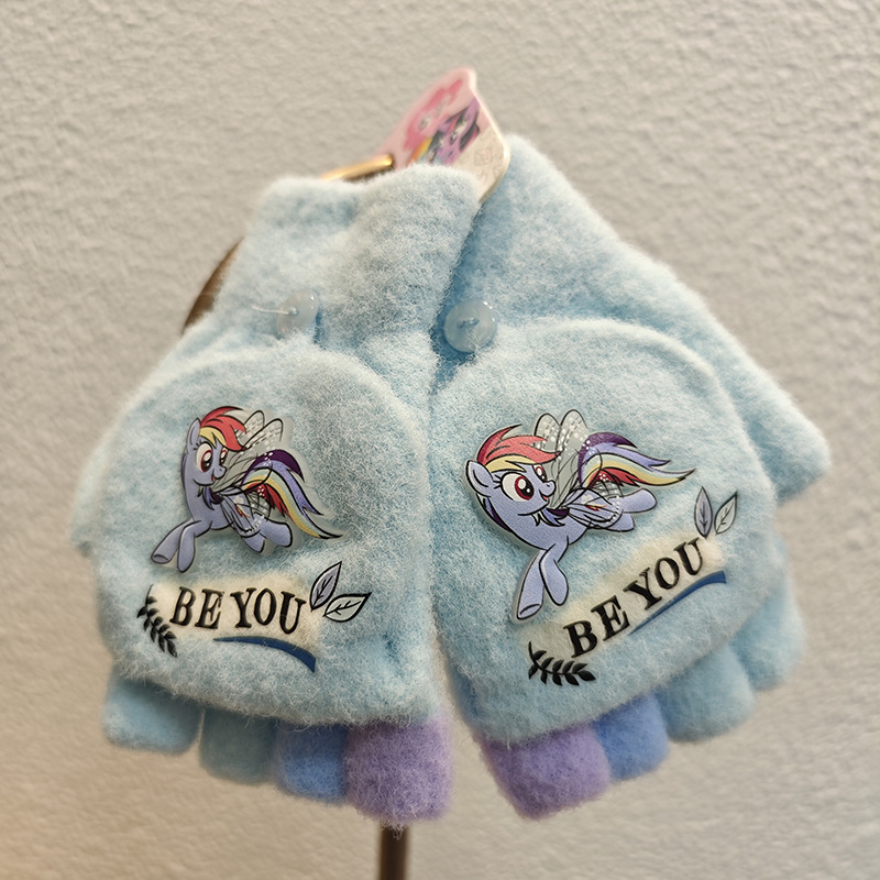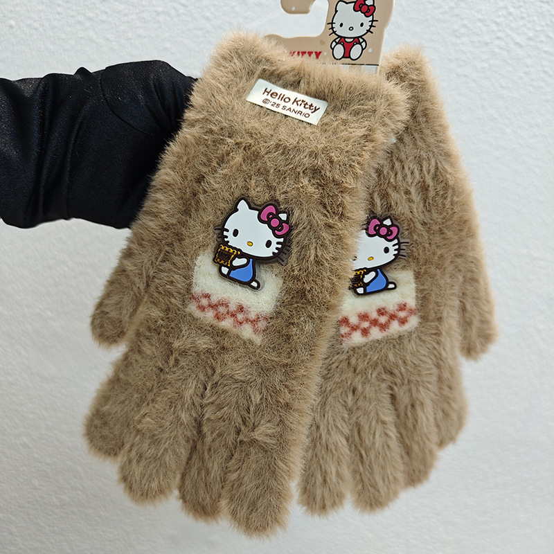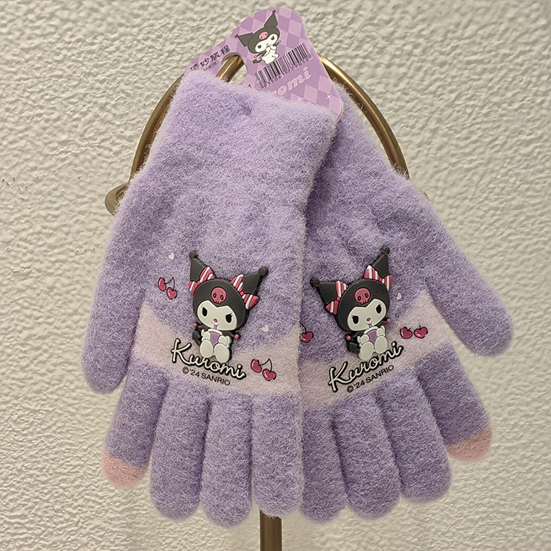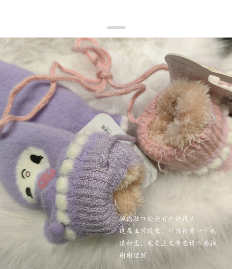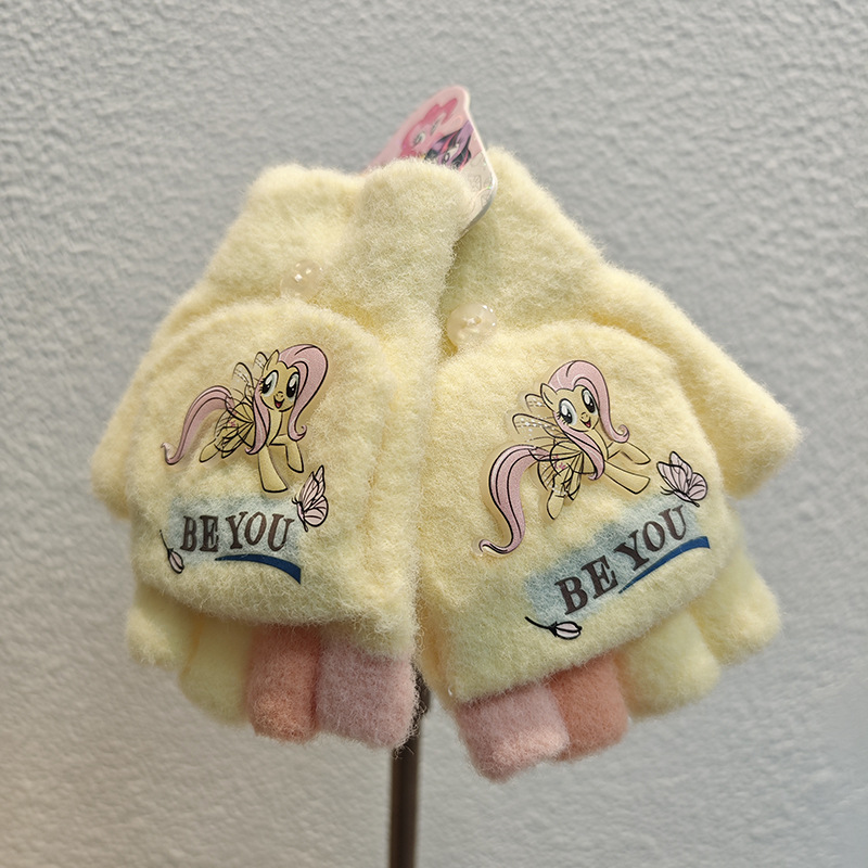 Sanrio 정품 공인 어린이 장갑 소녀를위한 겨울 반 손가락 플립 장갑 만화 초등 학생 쓰기 장갑