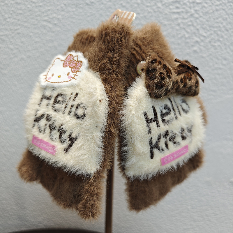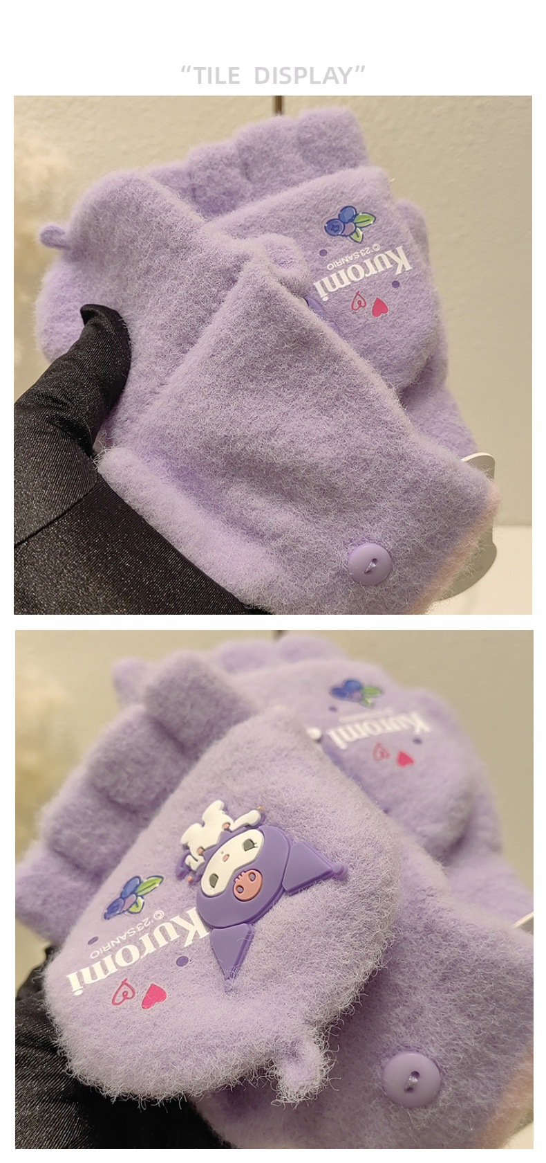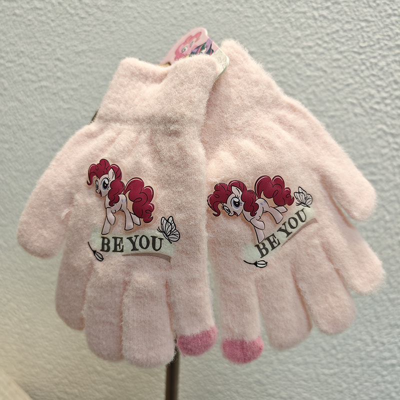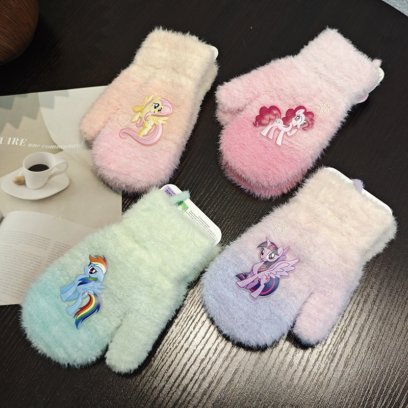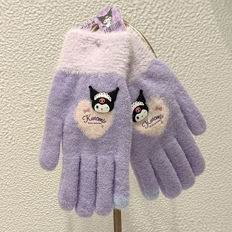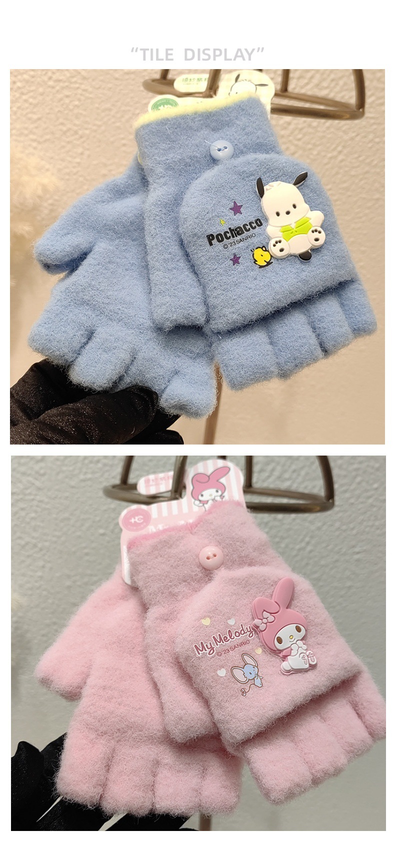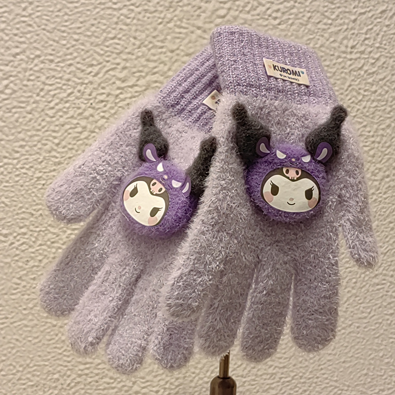 Sanrio 정품 공인 어린이 장갑 소녀를위한 겨울 반 손가락 플립 장갑 만화 초등 학생 쓰기 장갑