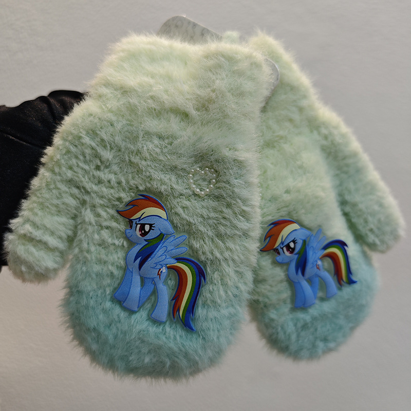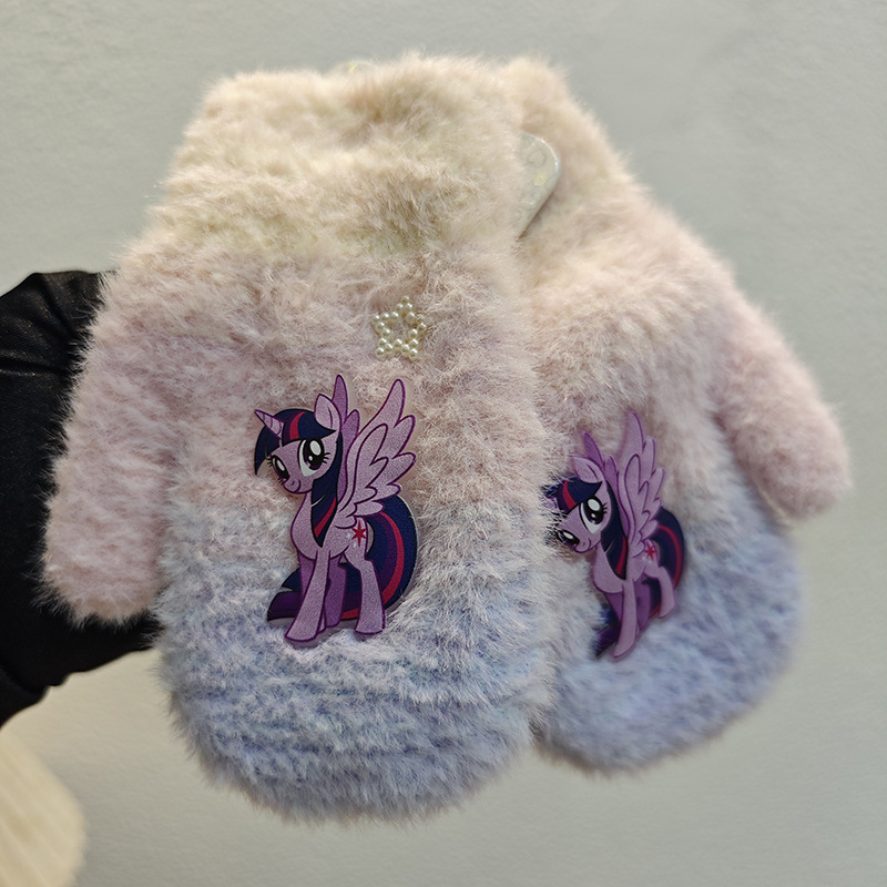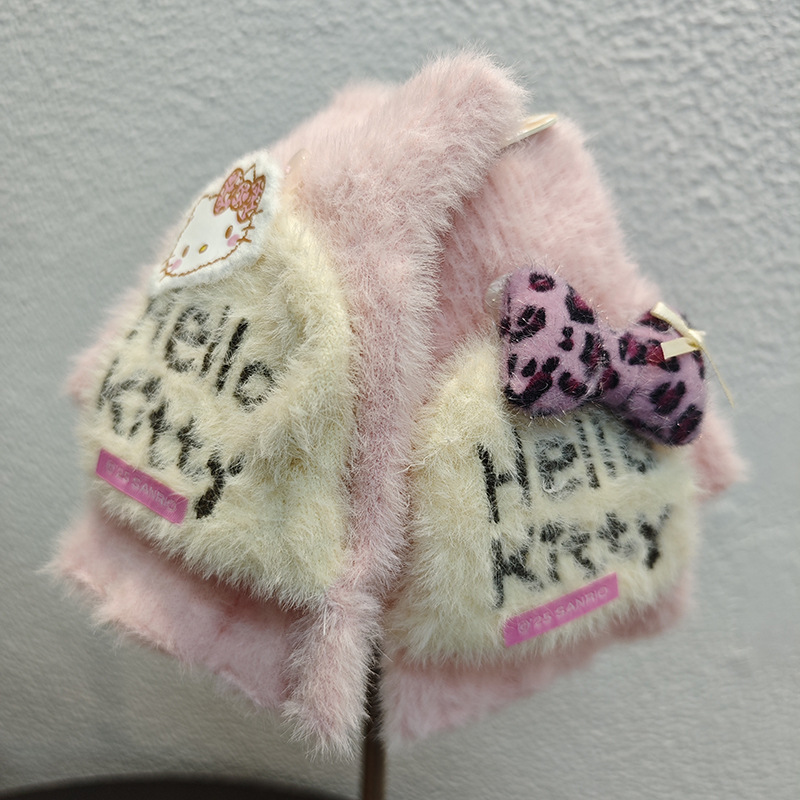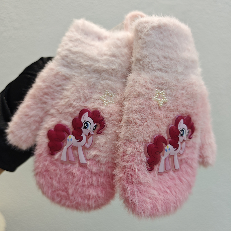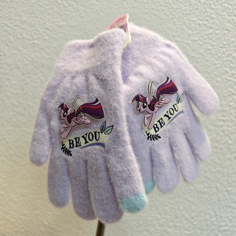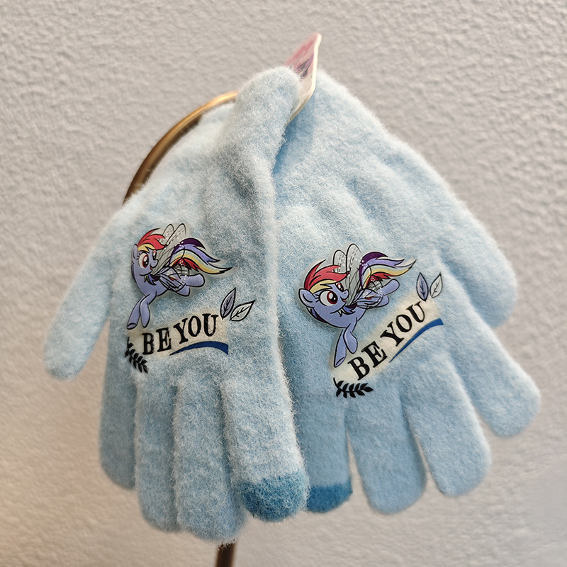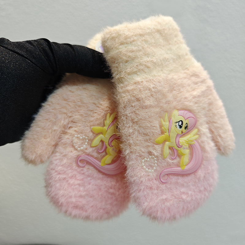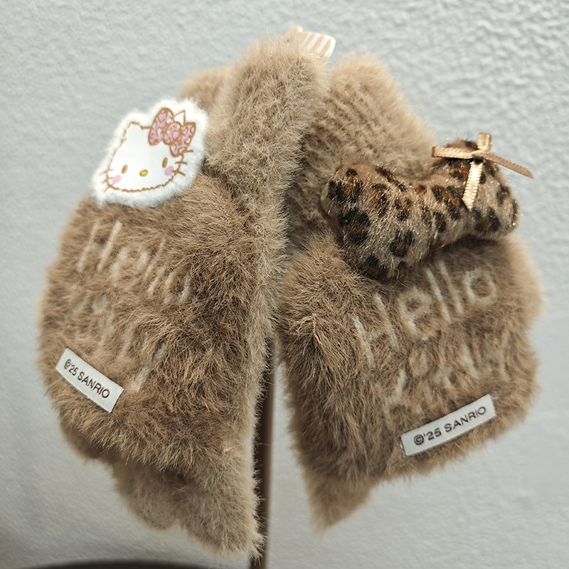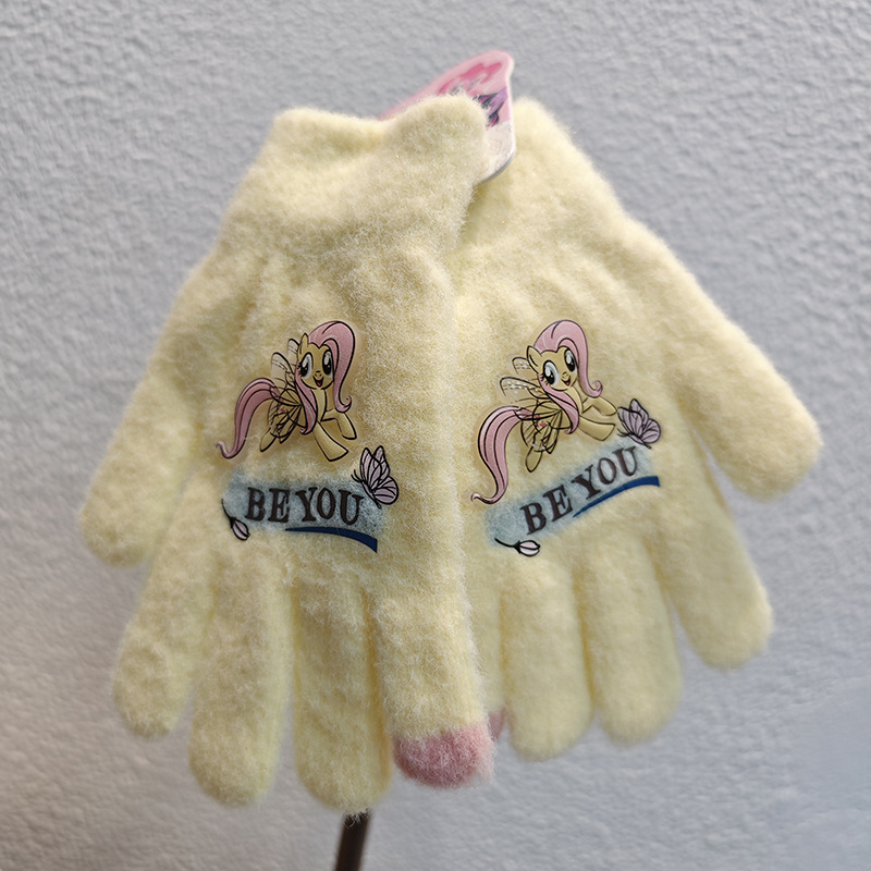 Sanrio 정품 공인 어린이 장갑 소녀를위한 겨울 반 손가락 플립 장갑 만화 초등 학생 쓰기 장갑