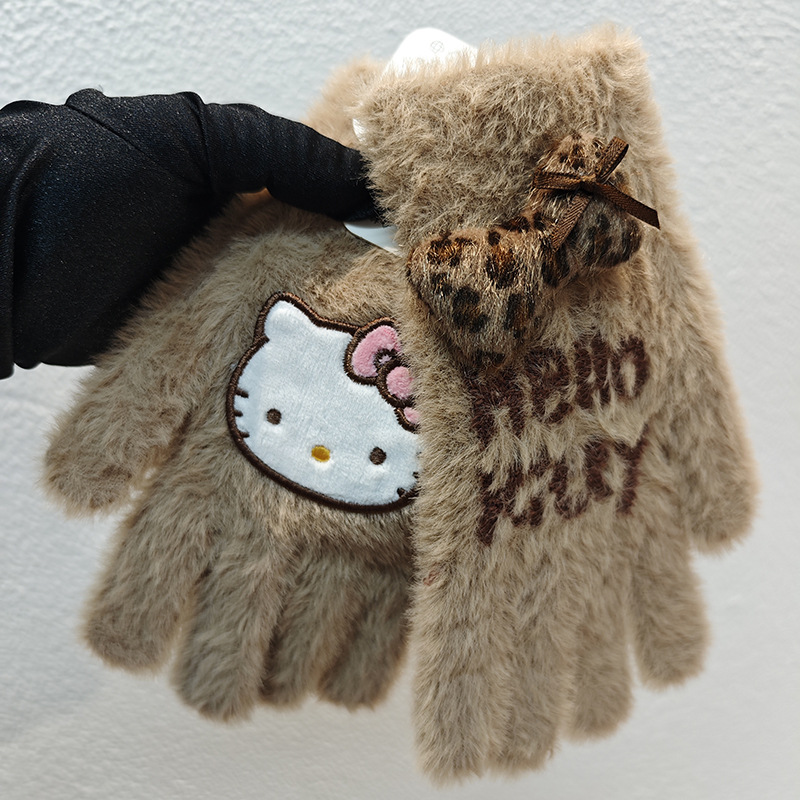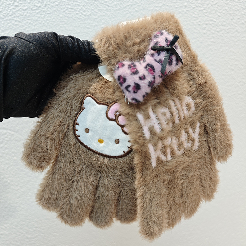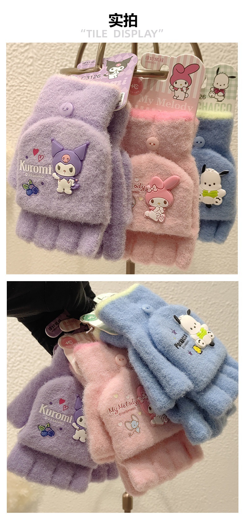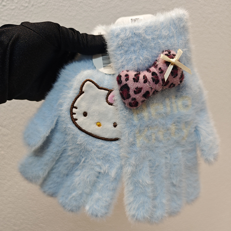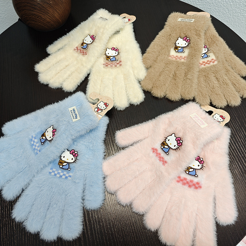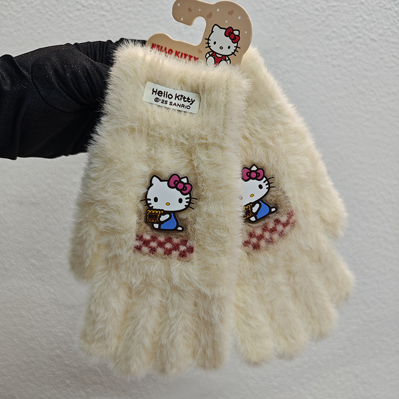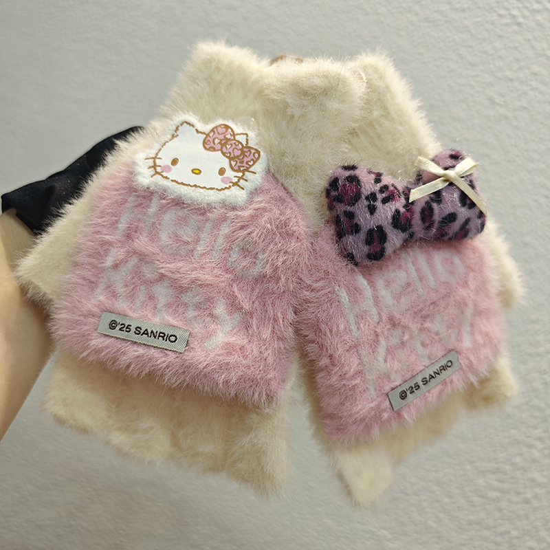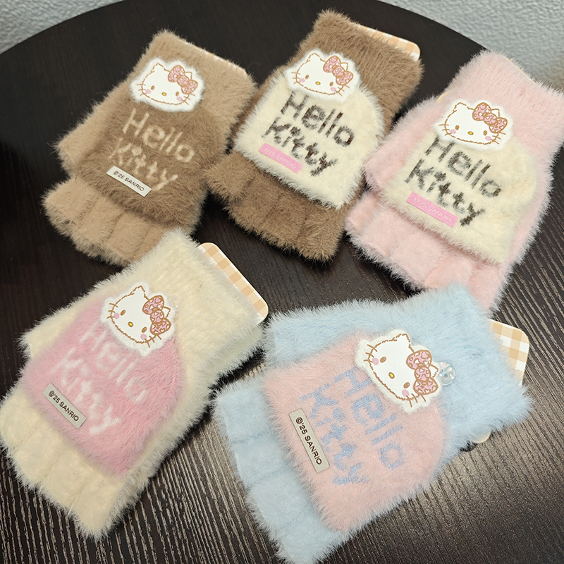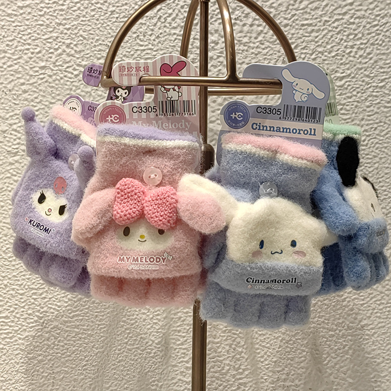 Sanrio 정품 공인 어린이 장갑 소녀를위한 겨울 반 손가락 플립 장갑 만화 초등 학생 쓰기 장갑스토어 가기