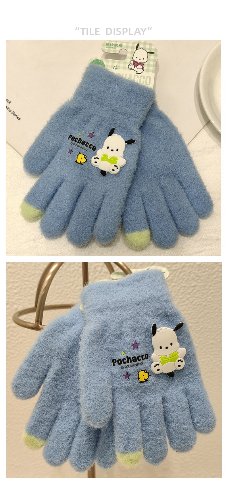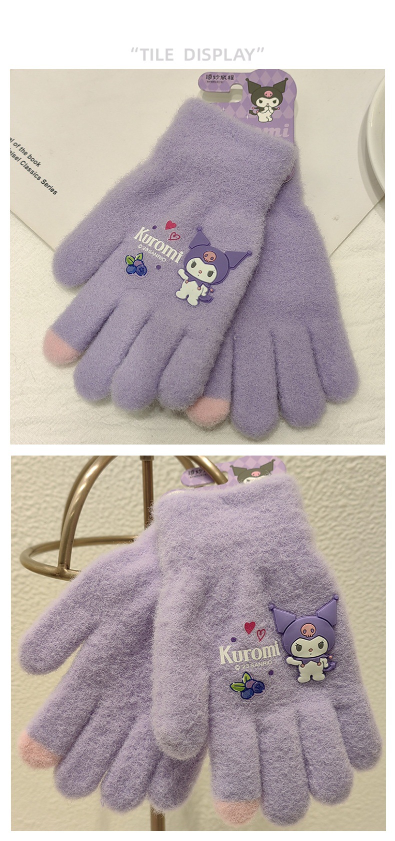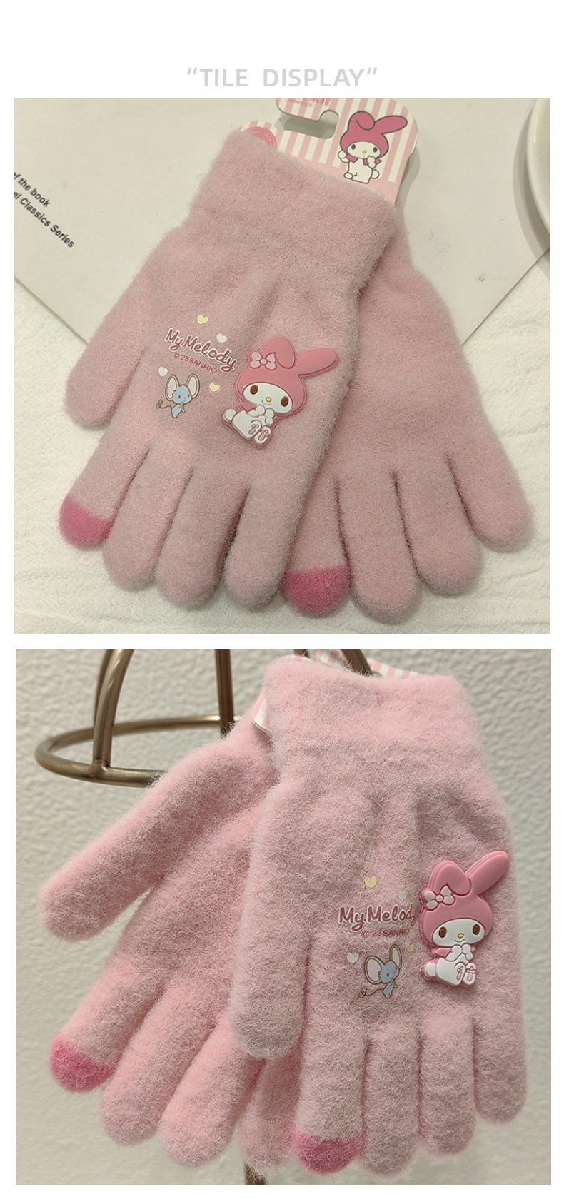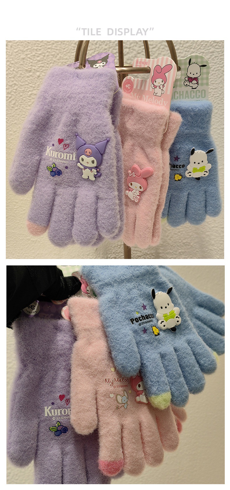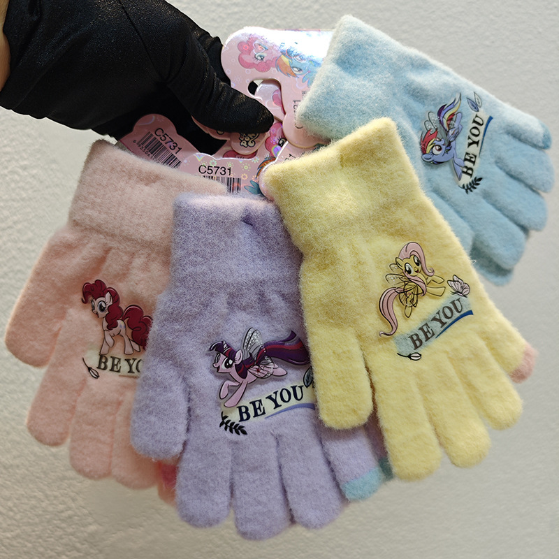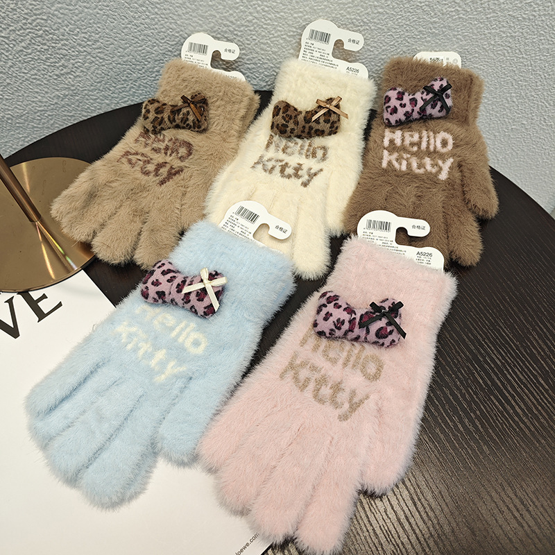 Sanrio 정품 공인 어린이 장갑 소녀를위한 겨울 반 손가락 플립 장갑 만화 초등 학생 쓰기 장갑스토어 가기