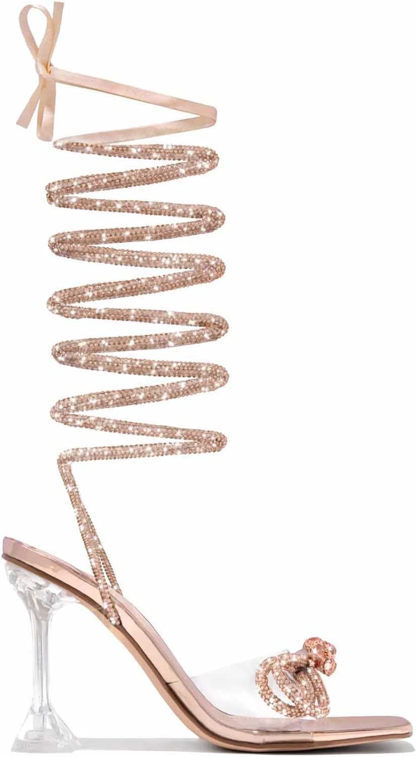 투명 하이힐 샌들 발목 라인 석 타이 힐 스퀘어 힐 아마존 9cm 활 투명 얇은 굽 여성 신발스토어 가기