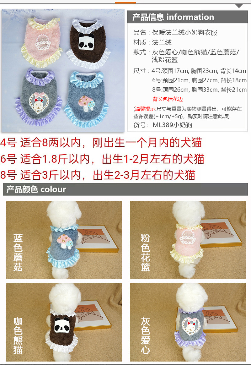 새로운 플란넬 우유 개 의류 찻잔 개 태어난 아기 우유 개 고양이 애완 동물 의류 조끼 만화스토어 가기