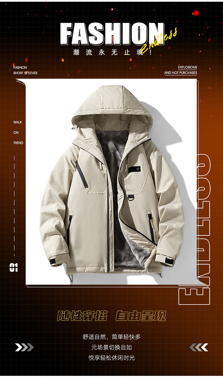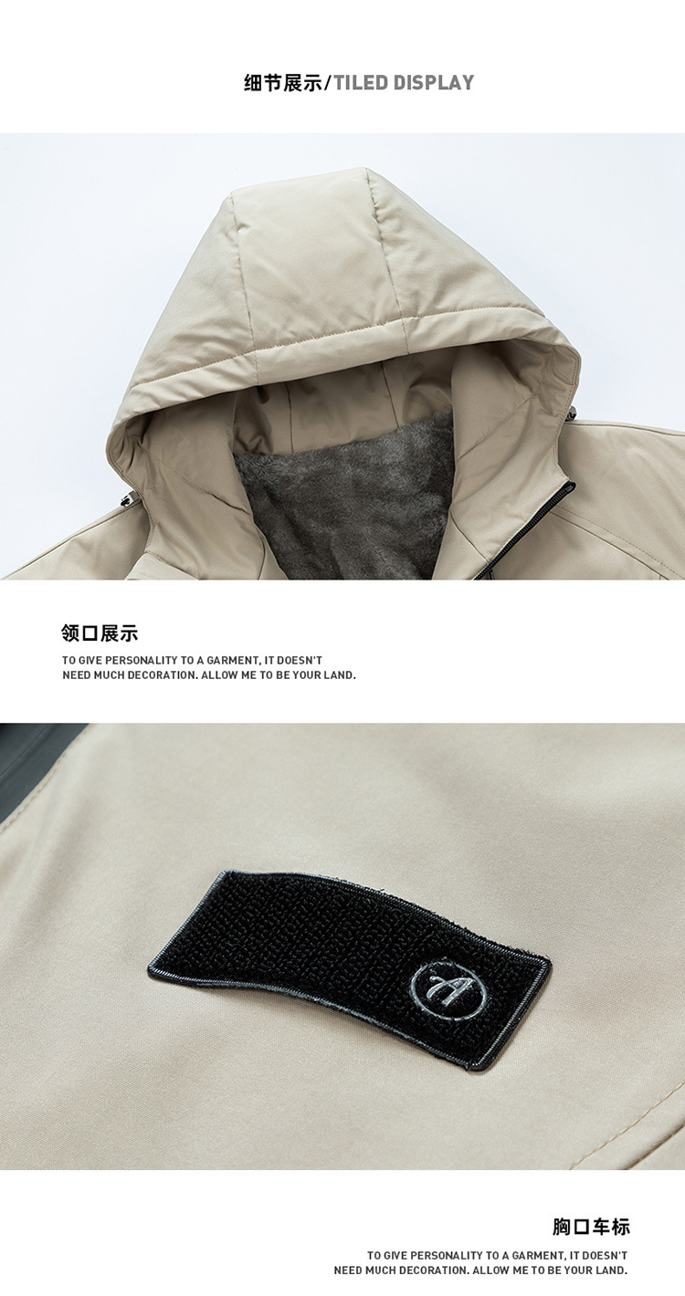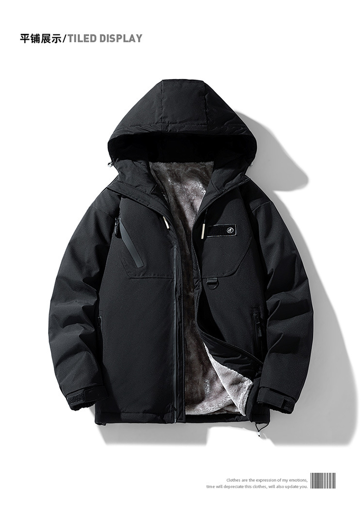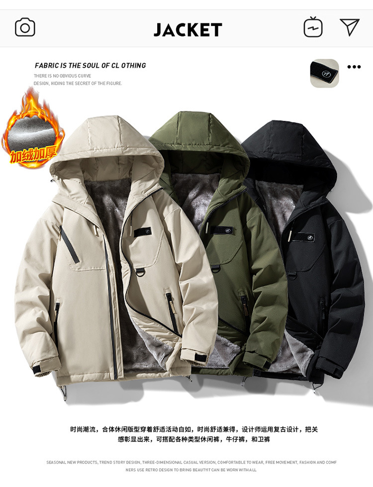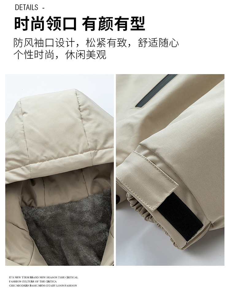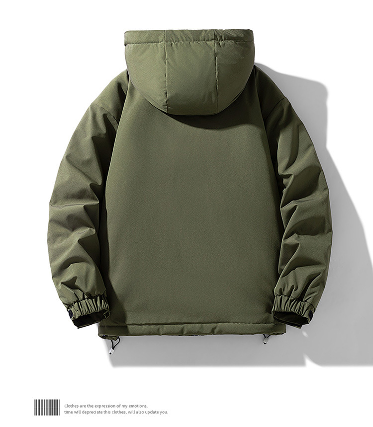 러쉬 옷 스탠드 칼라 후드 방풍 두꺼운 따뜻한 코트 연인 단색 간단한 코트 가을과 겨울 기모 재킷