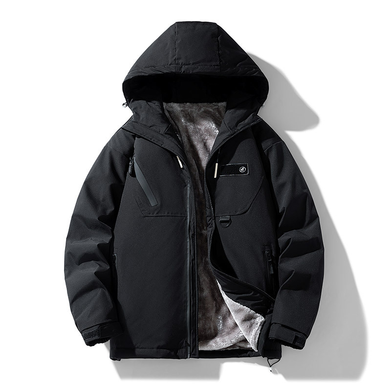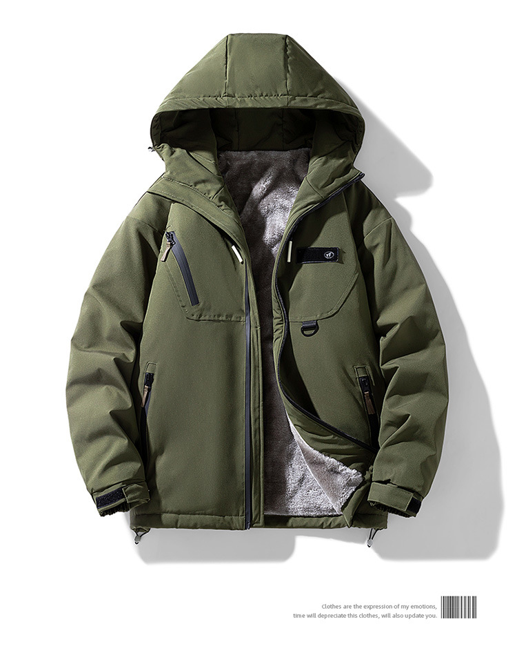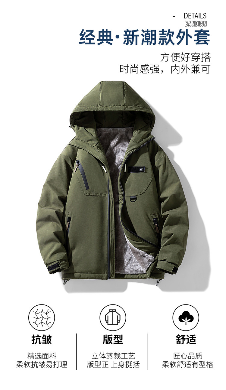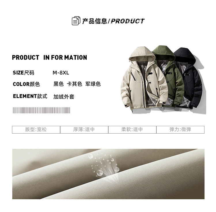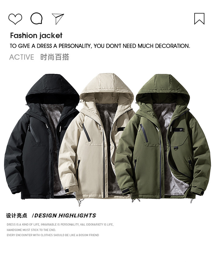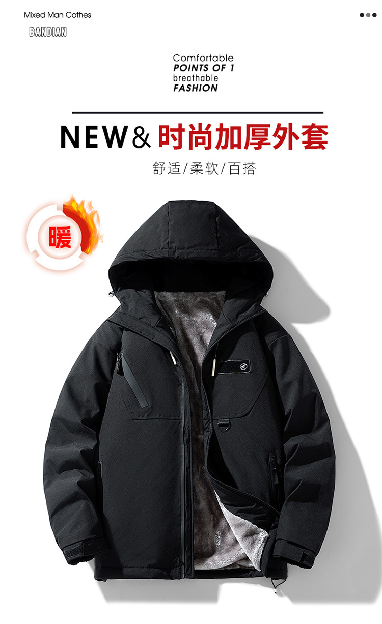 러쉬 옷 스탠드 칼라 후드 방풍 두꺼운 따뜻한 코트 연인 단색 간단한 코트 가을과 겨울 기모 재킷