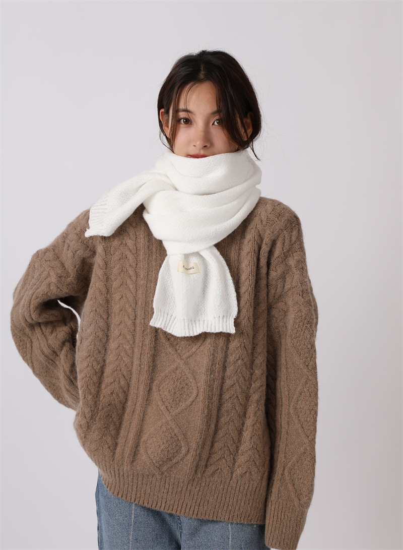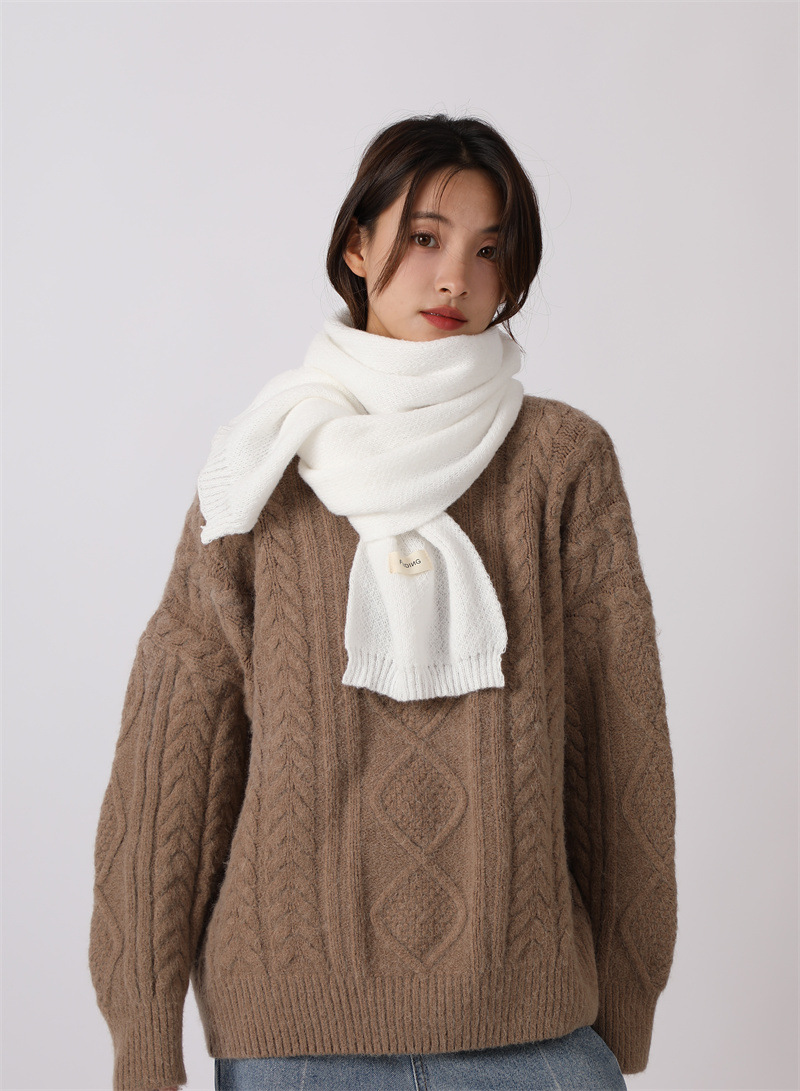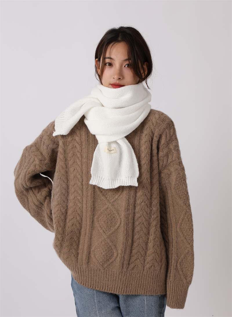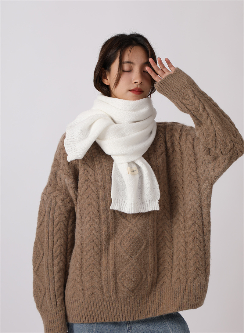 2024년 신상 단색 스카프 여성용 겨울 두꺼운 사슴털 플러시 숄 겸용 커플 니트 보온 목도리 다용도