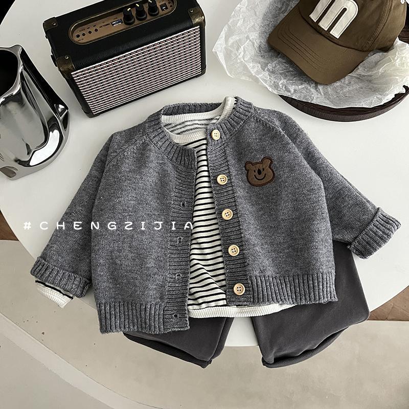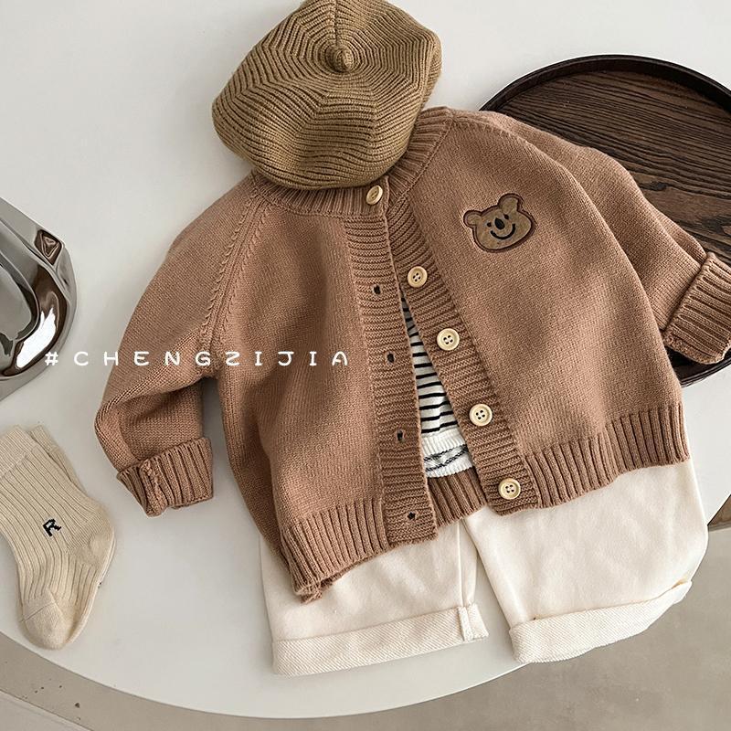 어린이 한국식 니트 가디건 코트 봄과 가을 유아와 어린이를위한 긴팔 탑 소년과 소녀를위한 가을 스웨터 복장