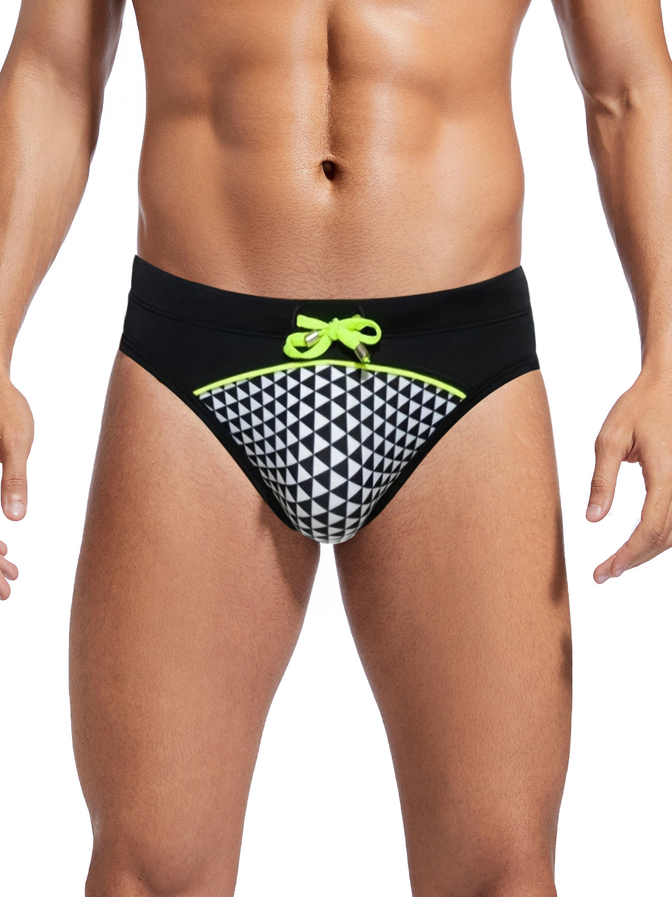 2024 크로스 국경 대외 무역 새로운 색상 일치 톱 이빨 남자의 삼각형 수영 트렁크 패션 섹시 안티 라이트 재고 도매